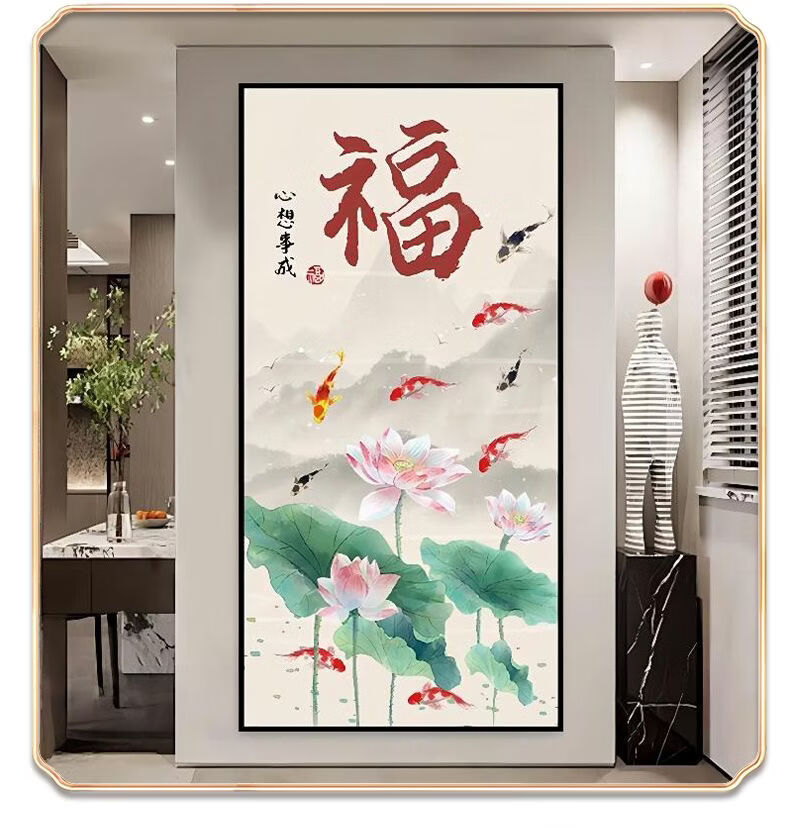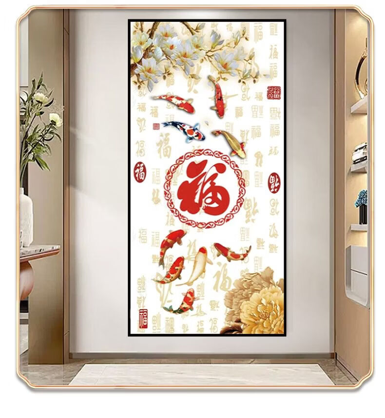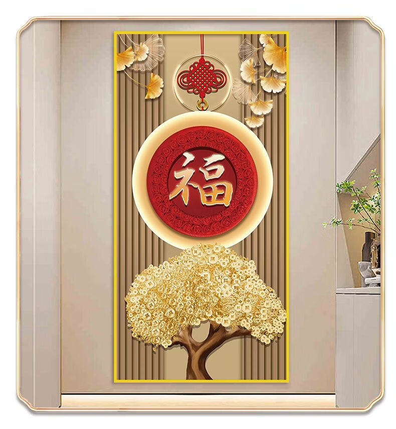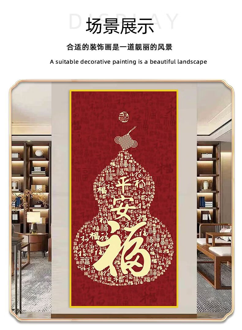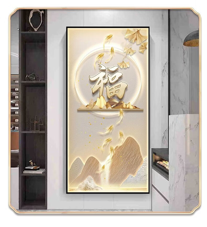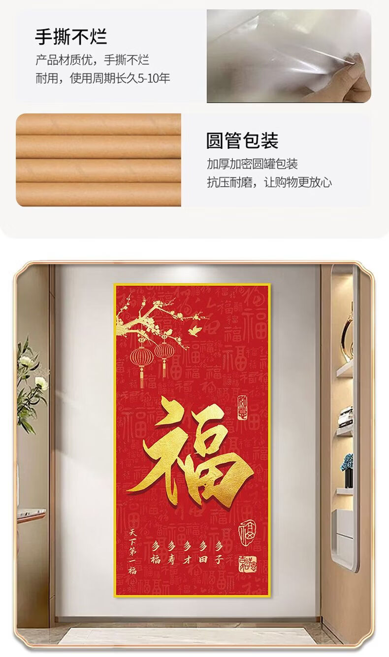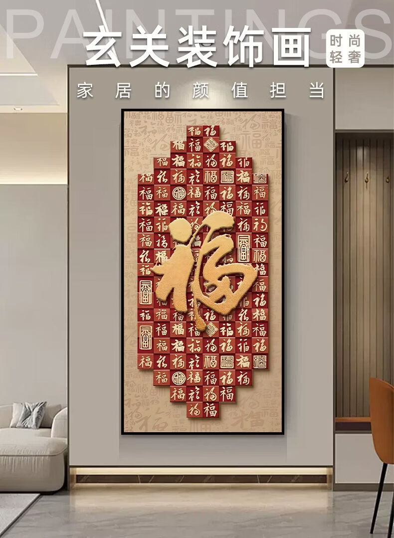 2026年新款福字入户玄关装饰画正对门自粘贴画高端客厅走廊墙壁画 百福图 宽120cm-高240cm 打印边框