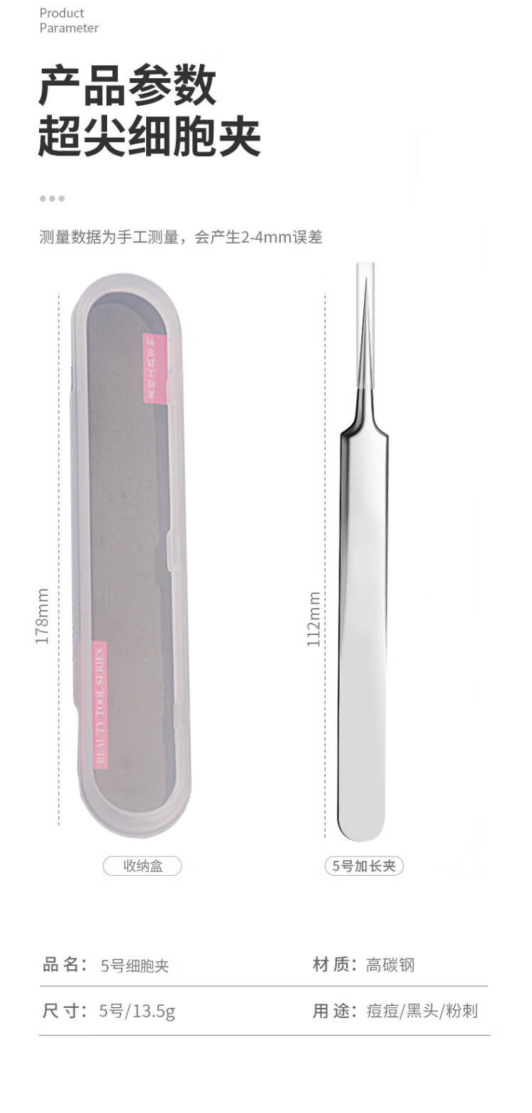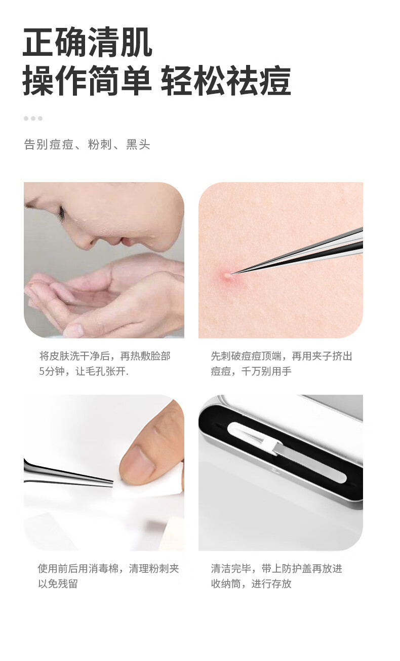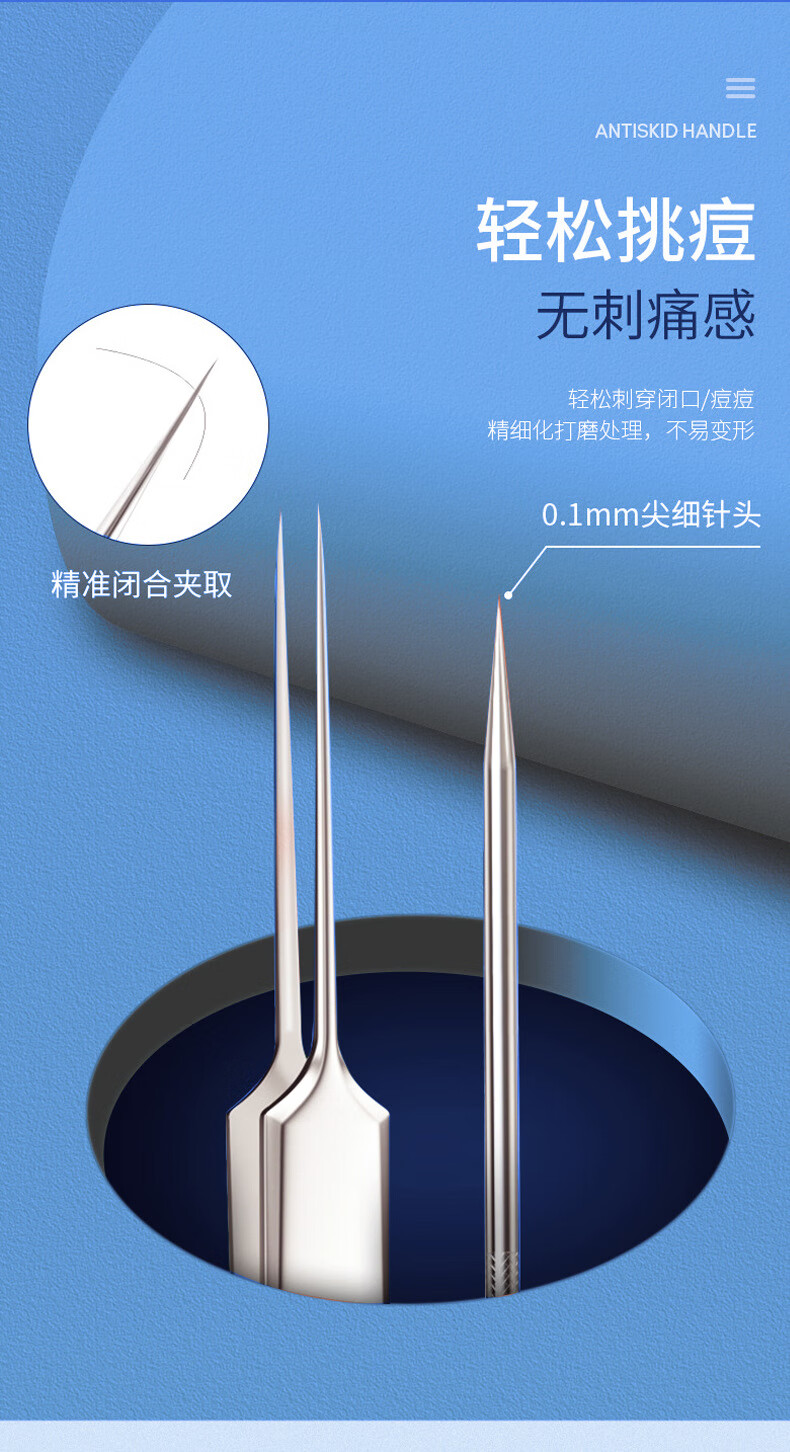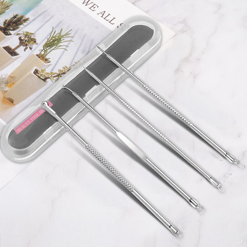 YAHLIGS细胞夹子镊子粉刺针去黑头全套挤痘痘美容院专用黑头暗疮针 粉刺针 4支 +细胞夹3件套