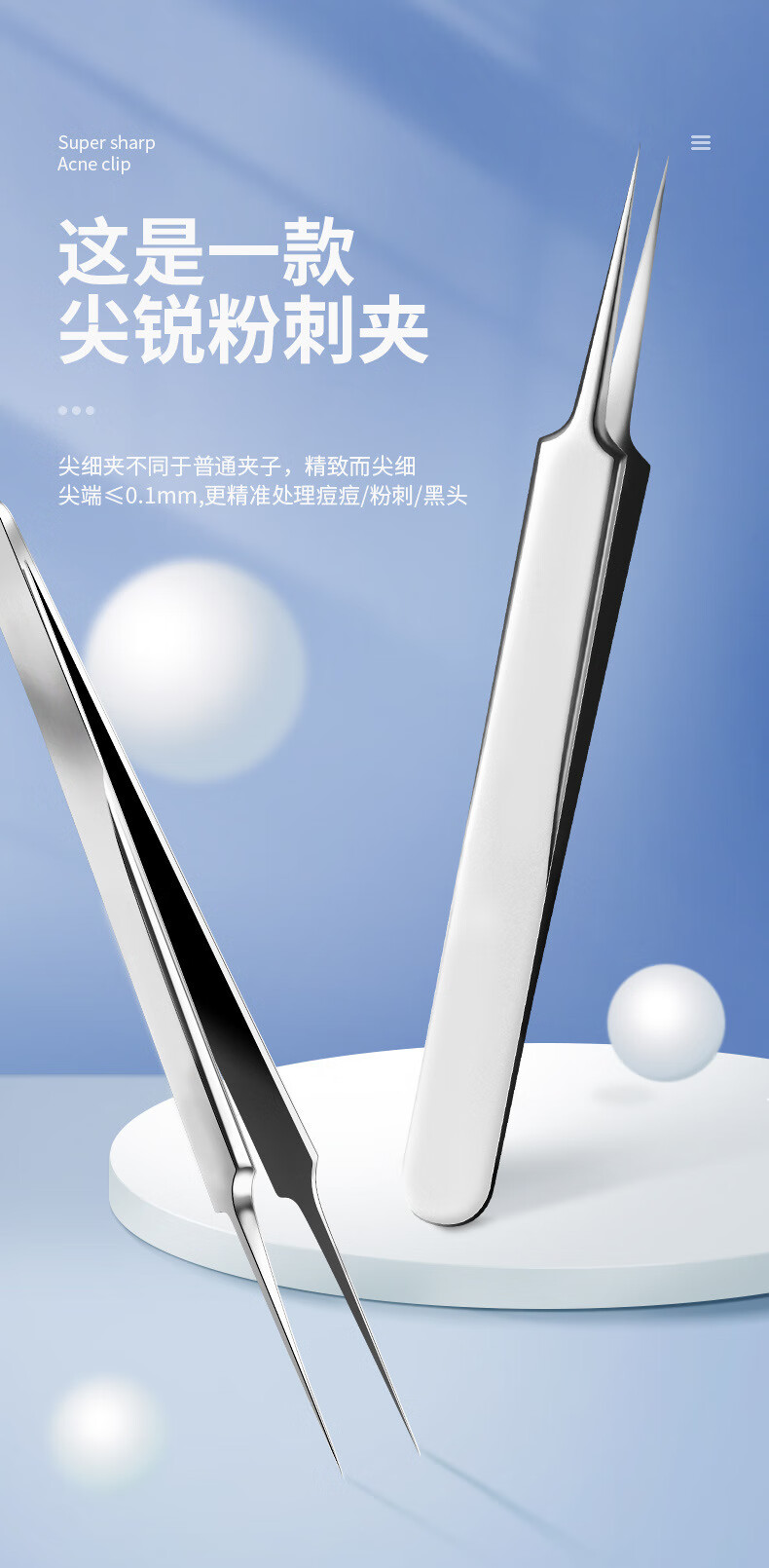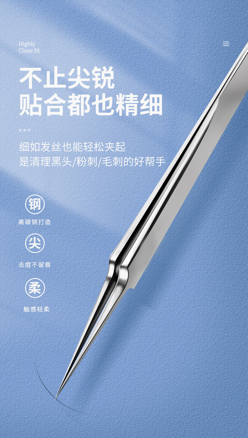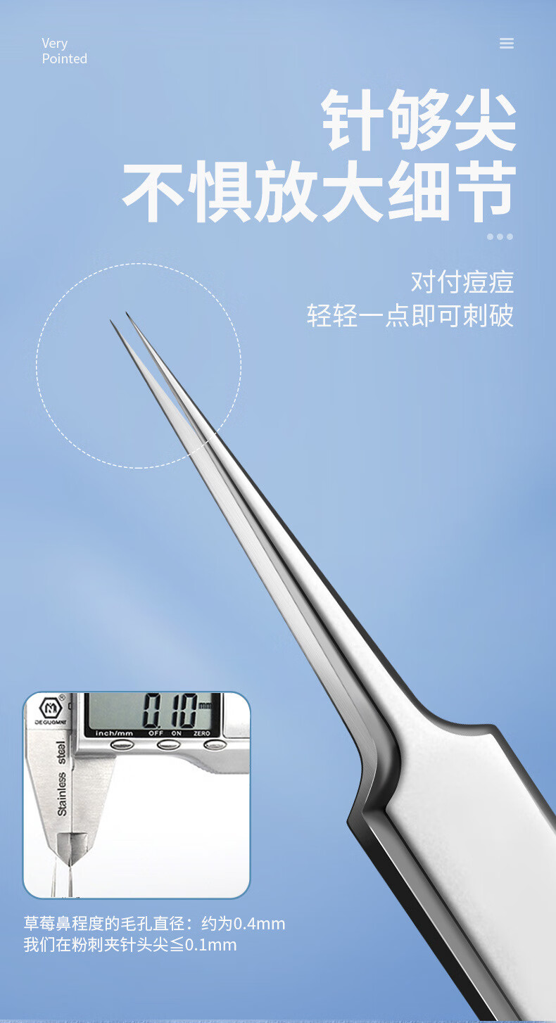 YAHLIGS细胞夹子镊子粉刺针去黑头全套挤痘痘美容院专用黑头暗疮针 粉刺针 4支 +细胞夹3件套