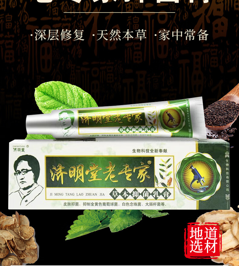 济明堂【官方正品】老专家抑菌乳膏皮肤外用草本乳膏正宗老牌子药店同售 【实发3盒】等于买2送1