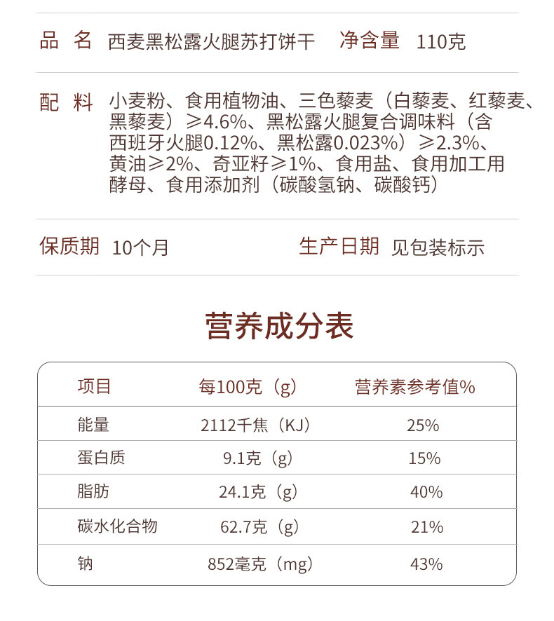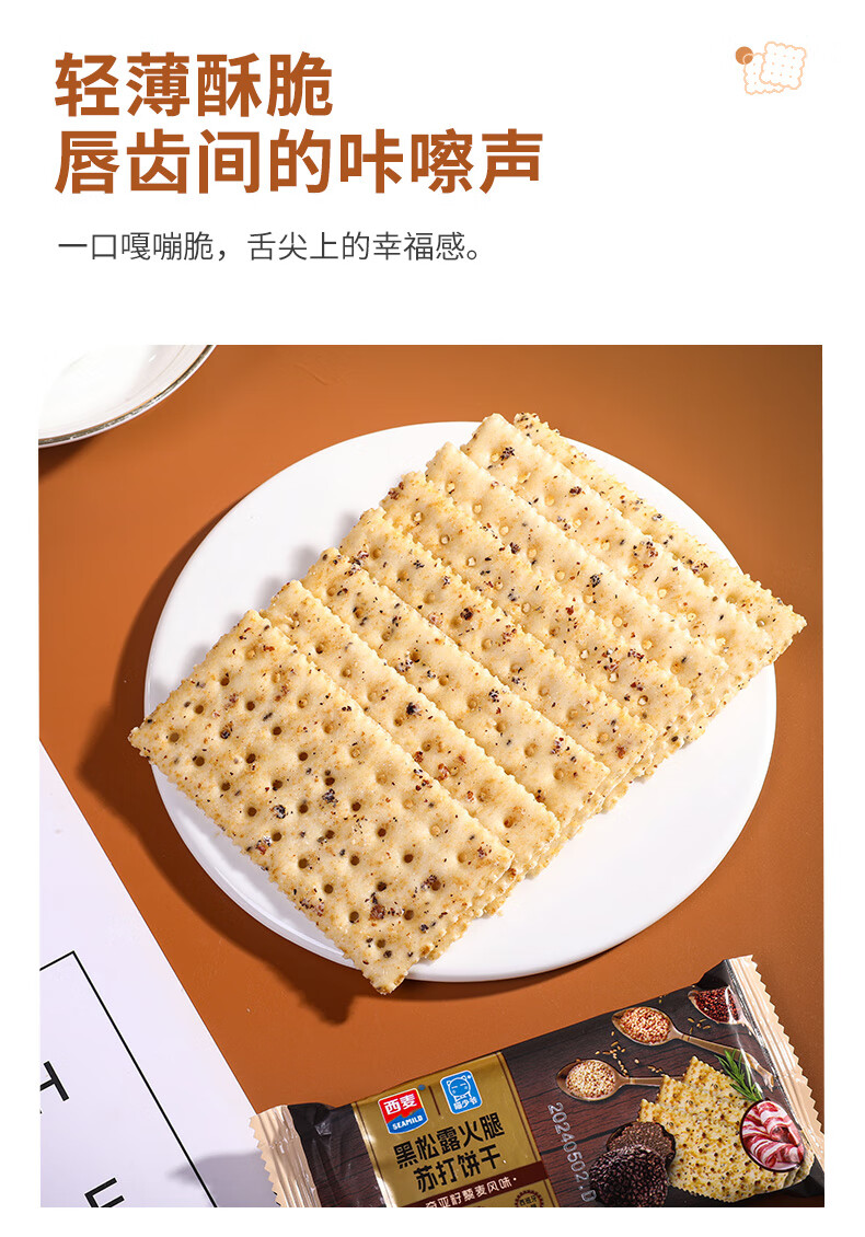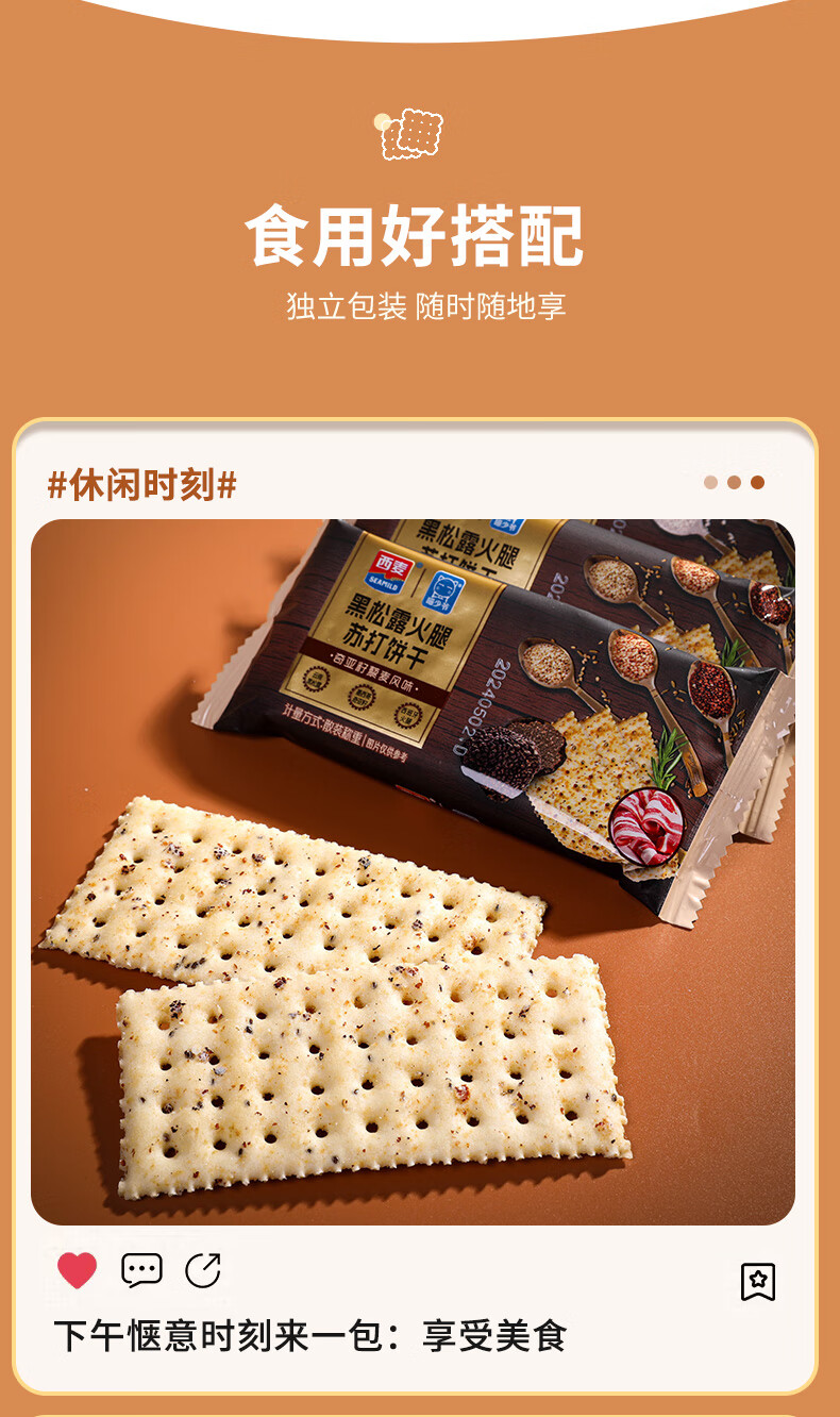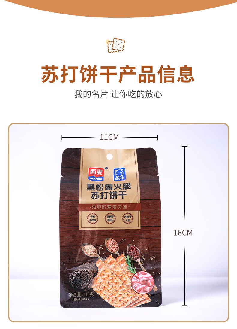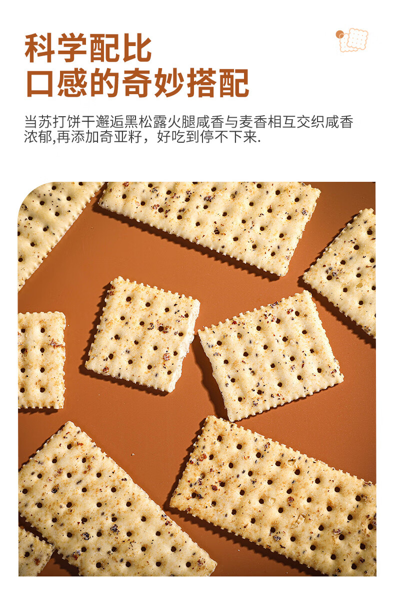 喵少爷西麦黑松露火腿苏打饼干奇亚籽藜麦风味办公室早餐零食营养健康 三盒990g