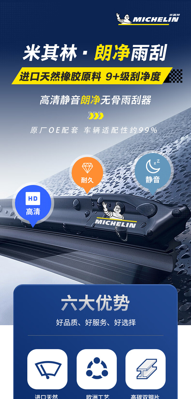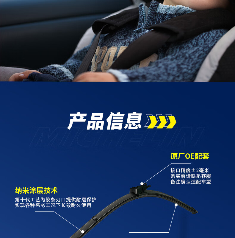 米其林(MICHELIN)无骨雨刮器朗净系列雨刷器雨刮片通用原装升级适用 马自达【拍下备注车型+年份】