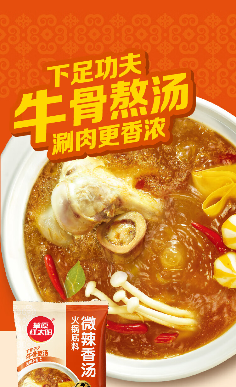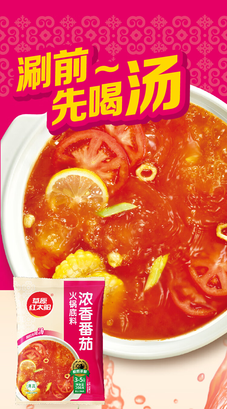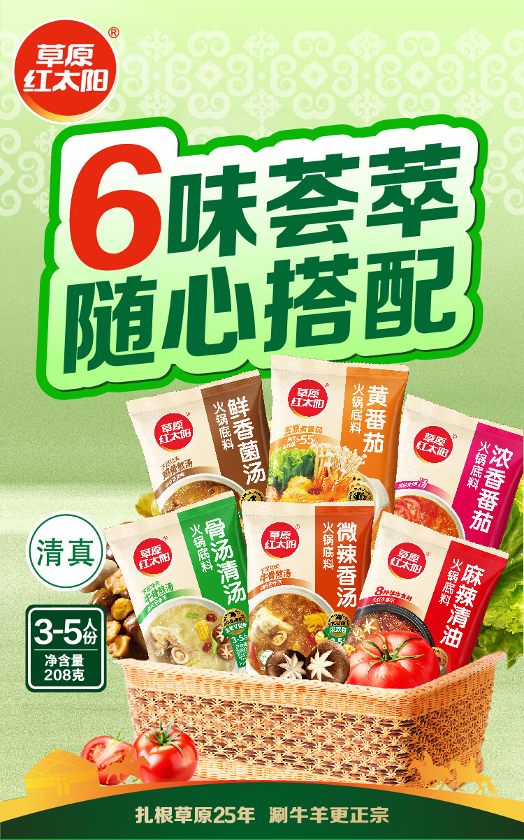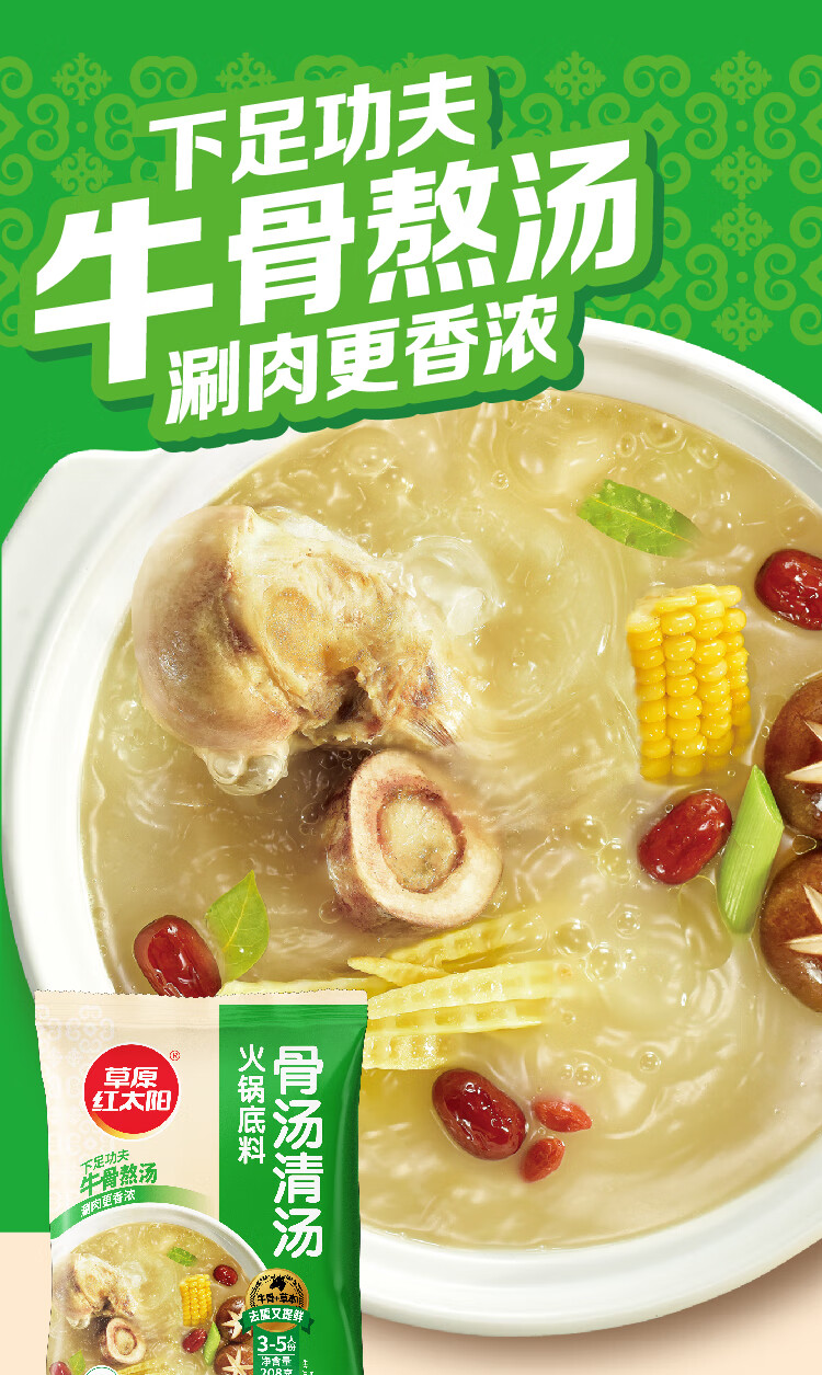 草原红太阳火锅底料208g麻辣清油火锅料黄番茄骨汤菌汤微辣火锅底料 208g骨汤清汤*3袋