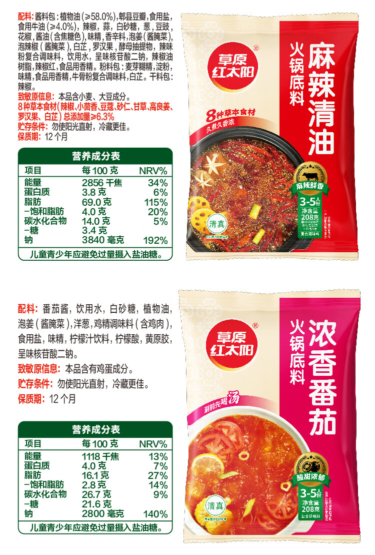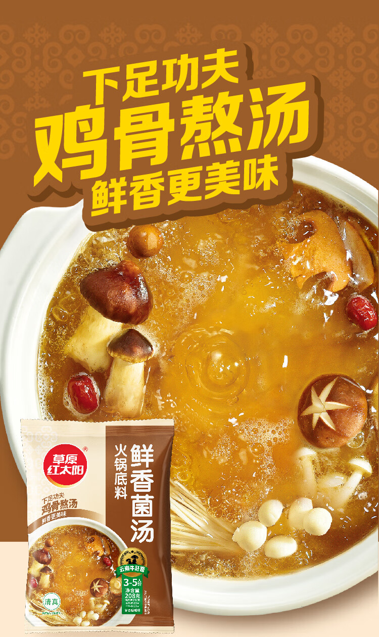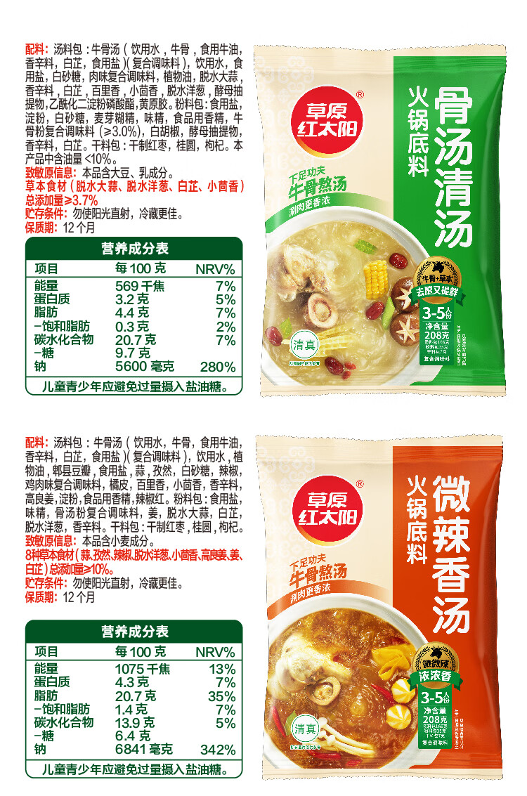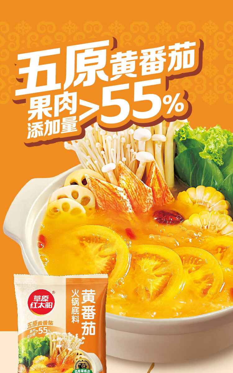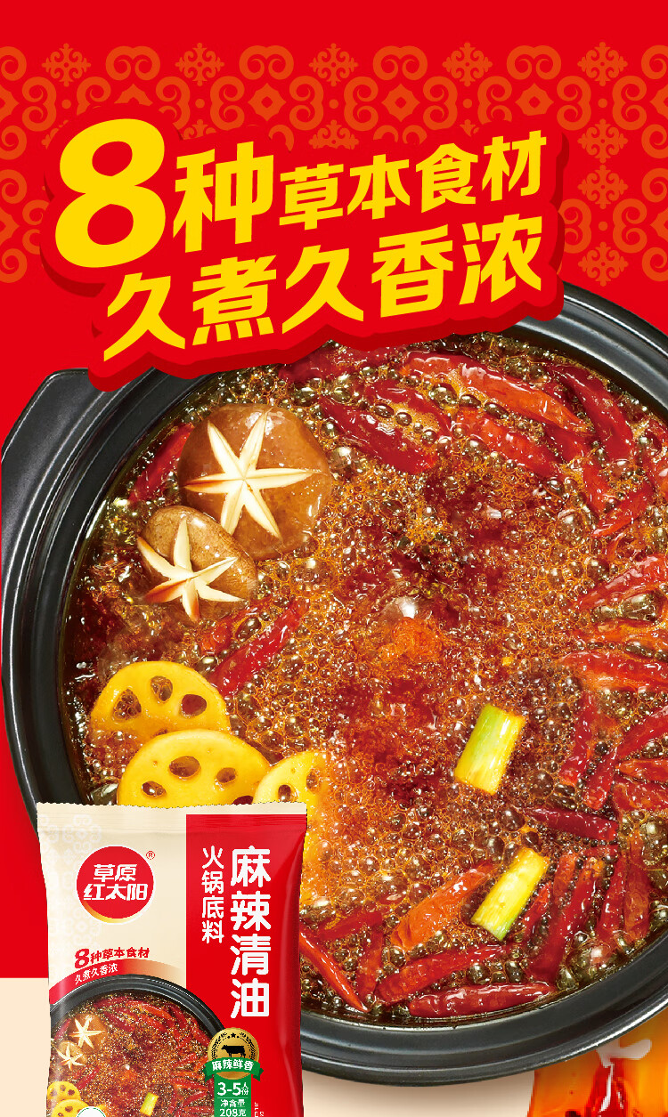 草原红太阳火锅底料208g麻辣清油火锅料黄番茄骨汤菌汤微辣火锅底料 208g骨汤清汤*3袋