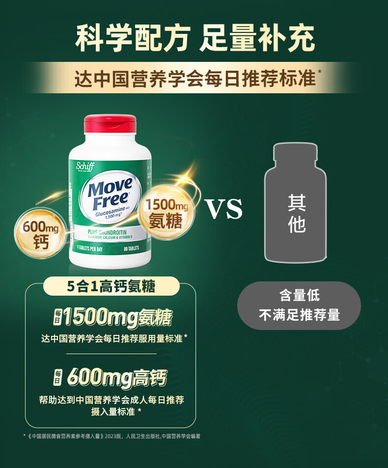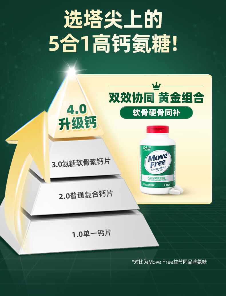 Move Free 益节高钙氨糖软骨素钙片80粒美国原装进口维骨力中老年成人补钙 【320粒】 80粒*4瓶 约3个月量