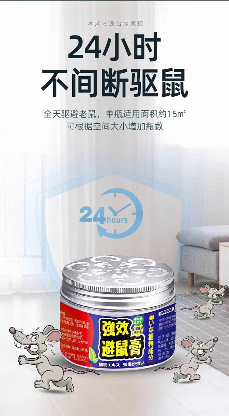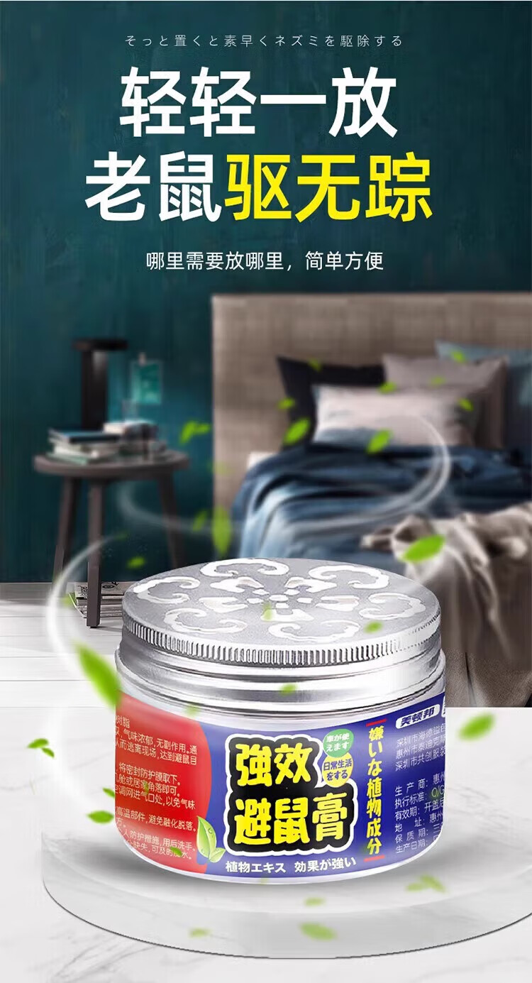 驱鼠神器老鼠驱赶神器避鼠膏驱鼠器捕非家用室内灭鼠防鼠克星强效 买5送4【用不见老鼠】
