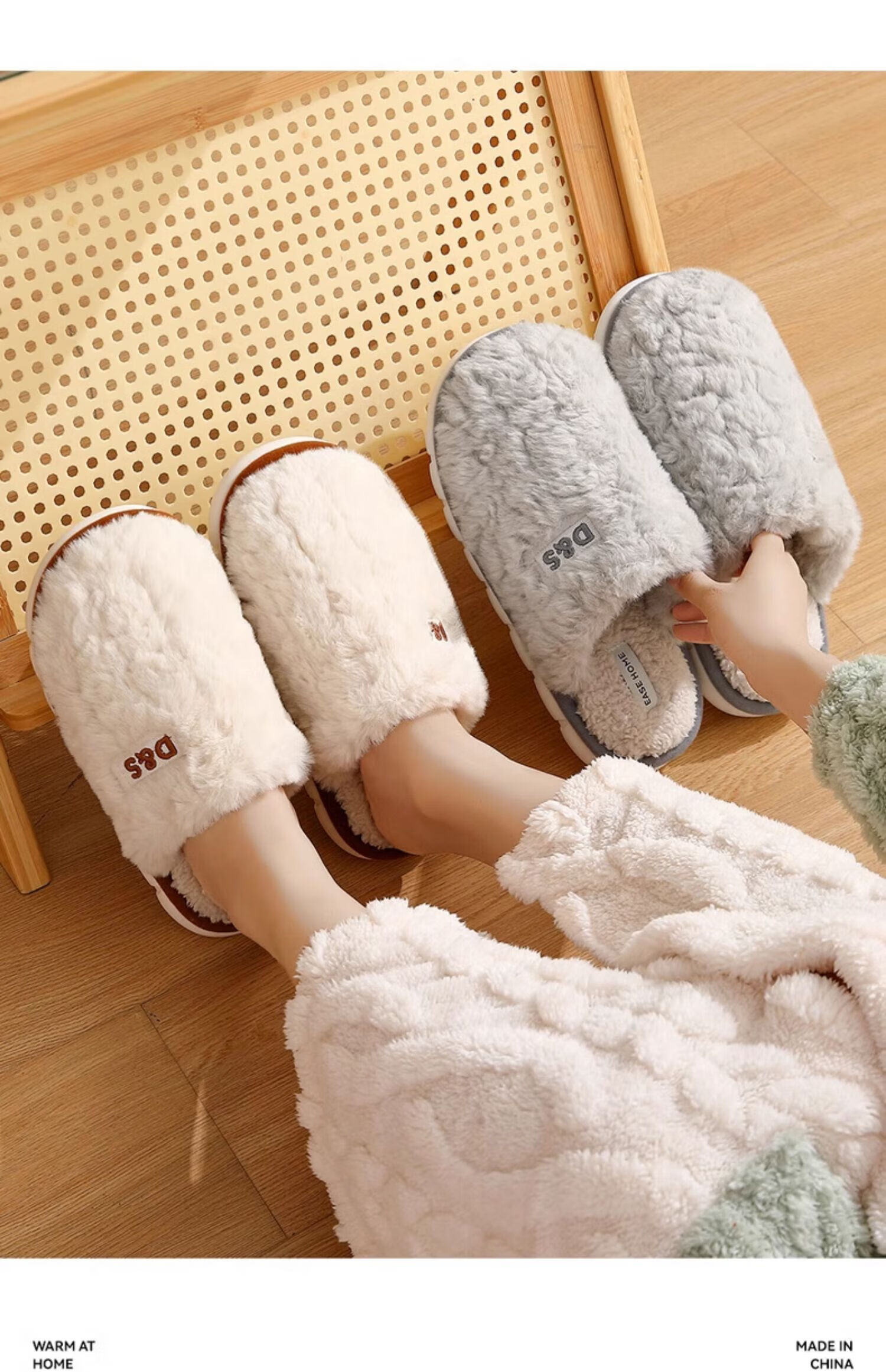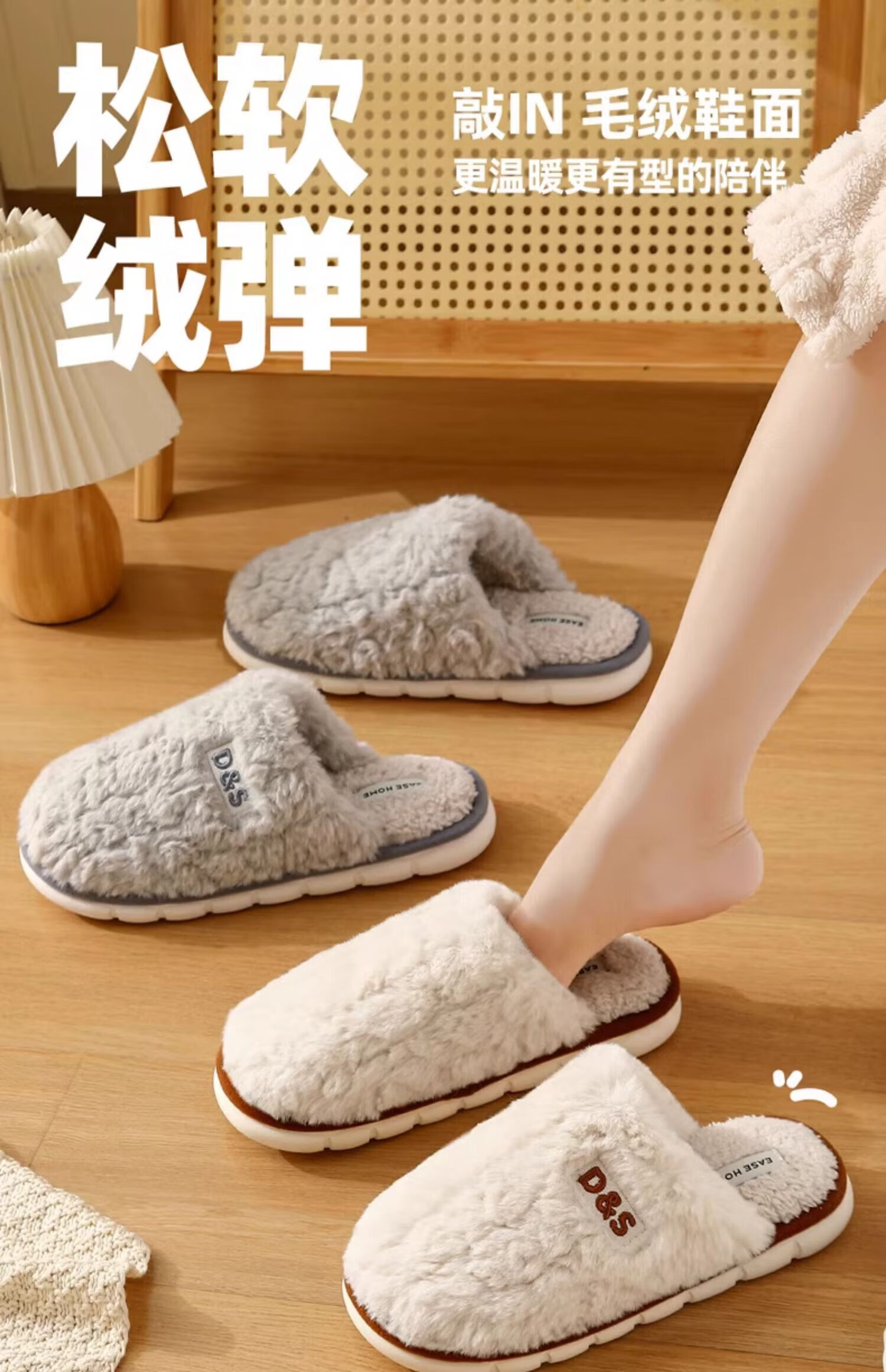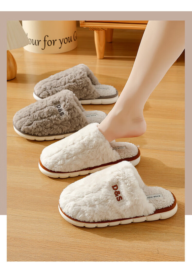 FZT可爱煤球棉拖鞋女款秋冬季新款室内居家无声防滑保暖毛绒拖鞋男士 白色【静音无声】 40-41 适合39-40【内长240MM】