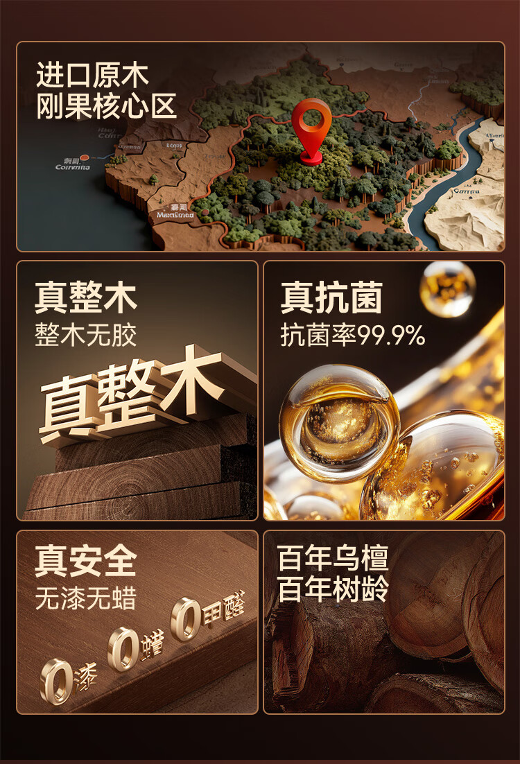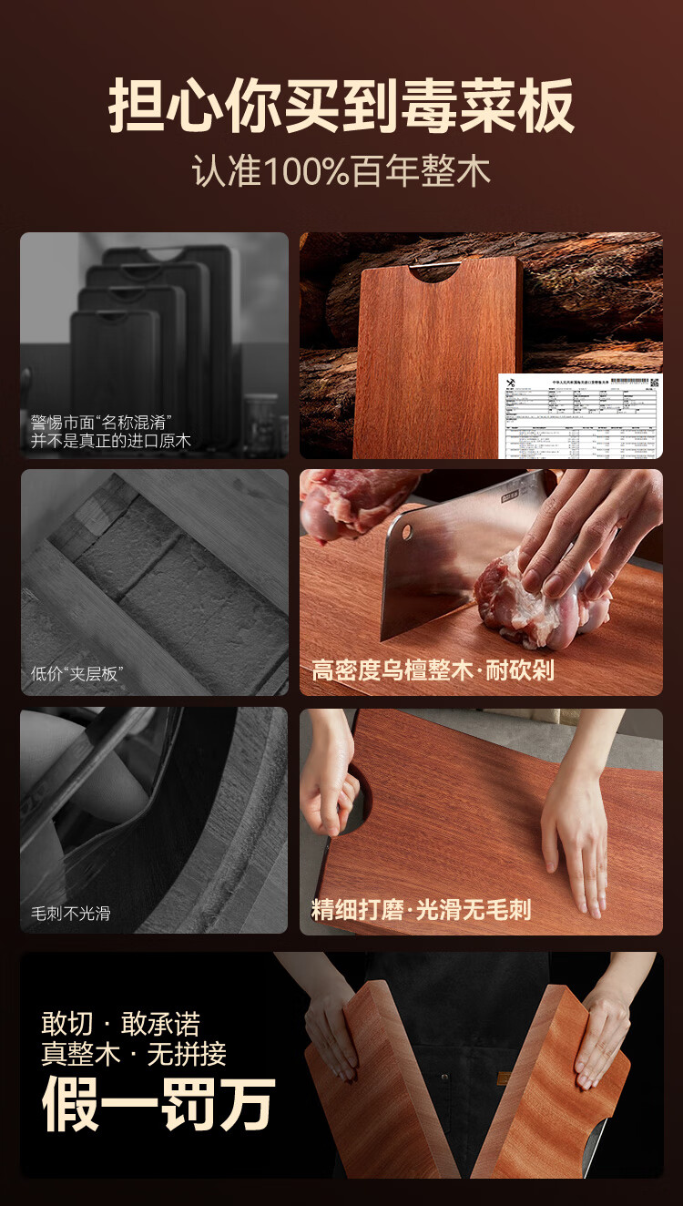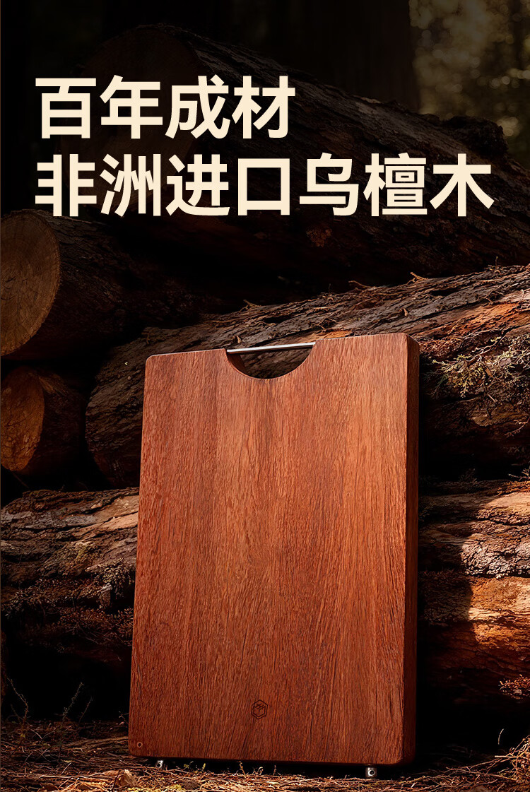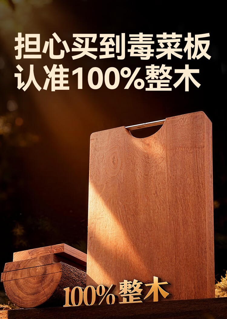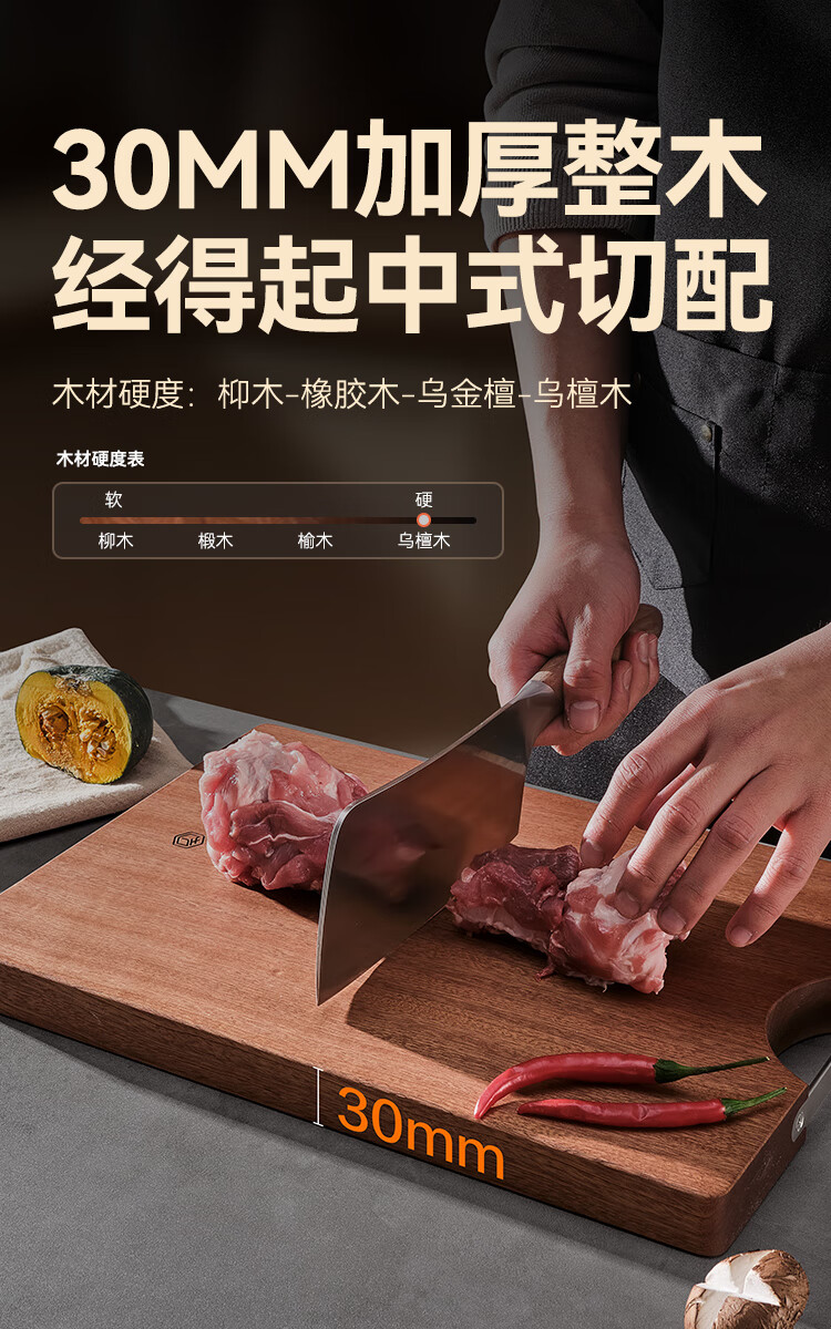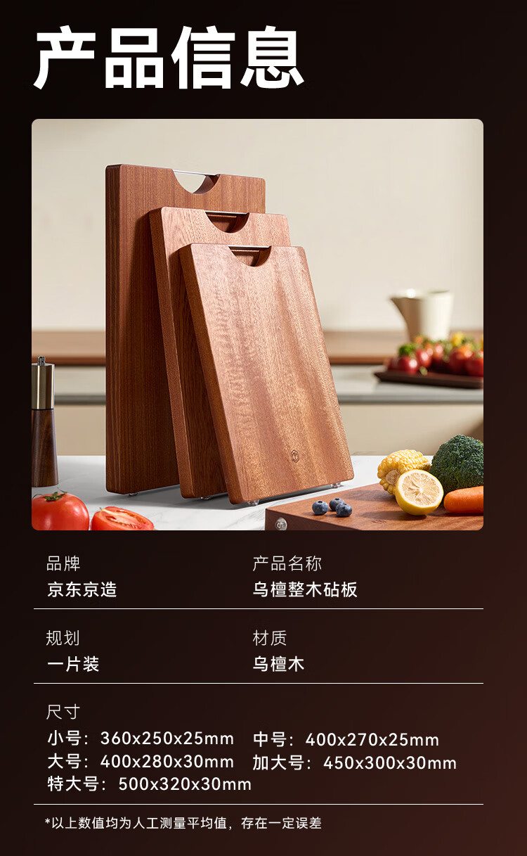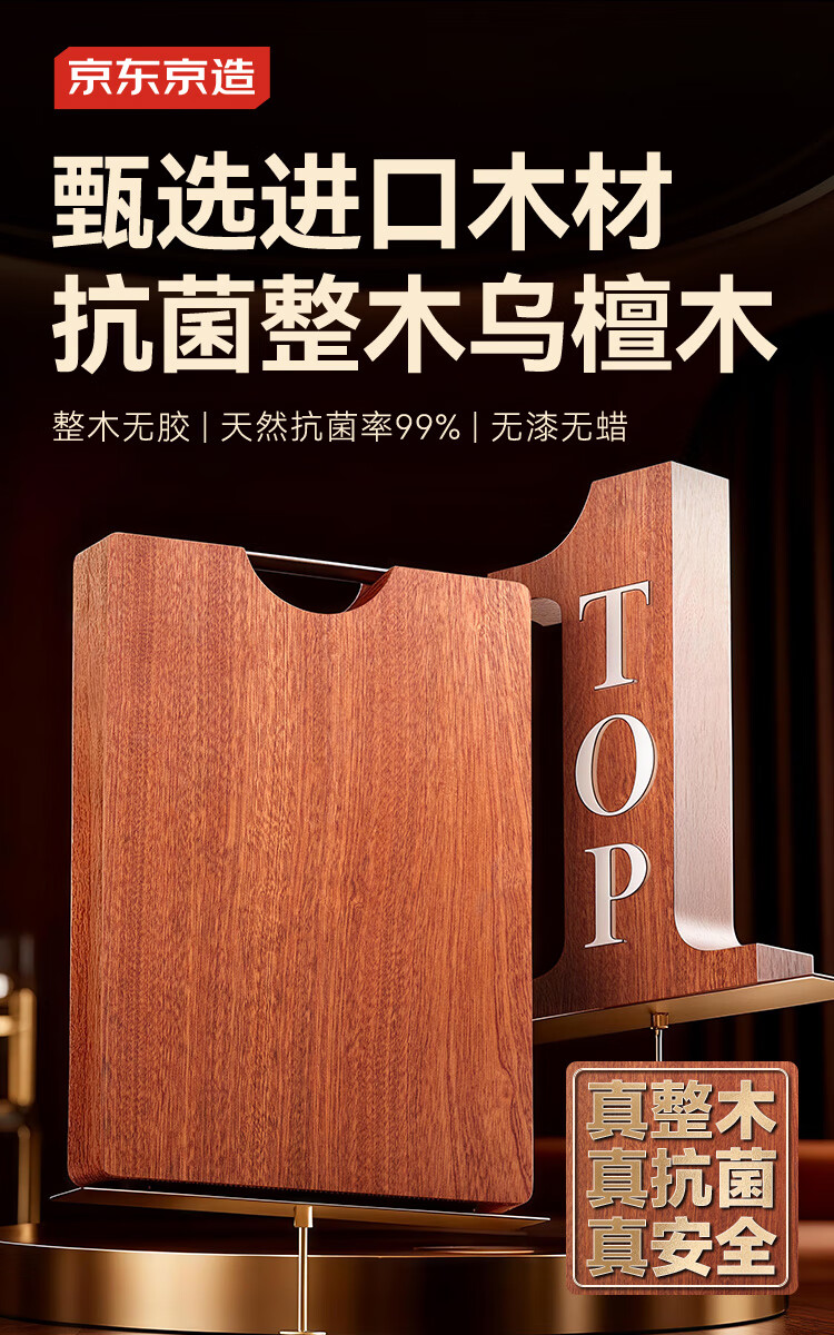 京东京造 菜板 砧案板切菜实木家用双面抗菌【乌檀整木】加厚 50*35*3cm
