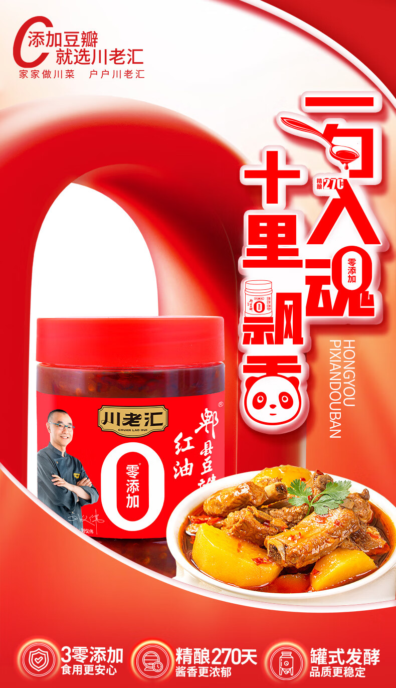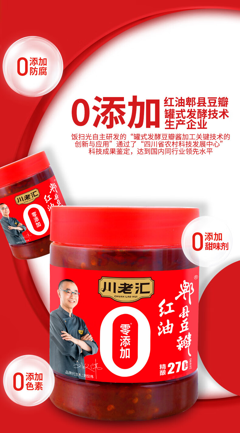 川老汇0添加红油郫县豆瓣酱500g 调味料辣椒酱