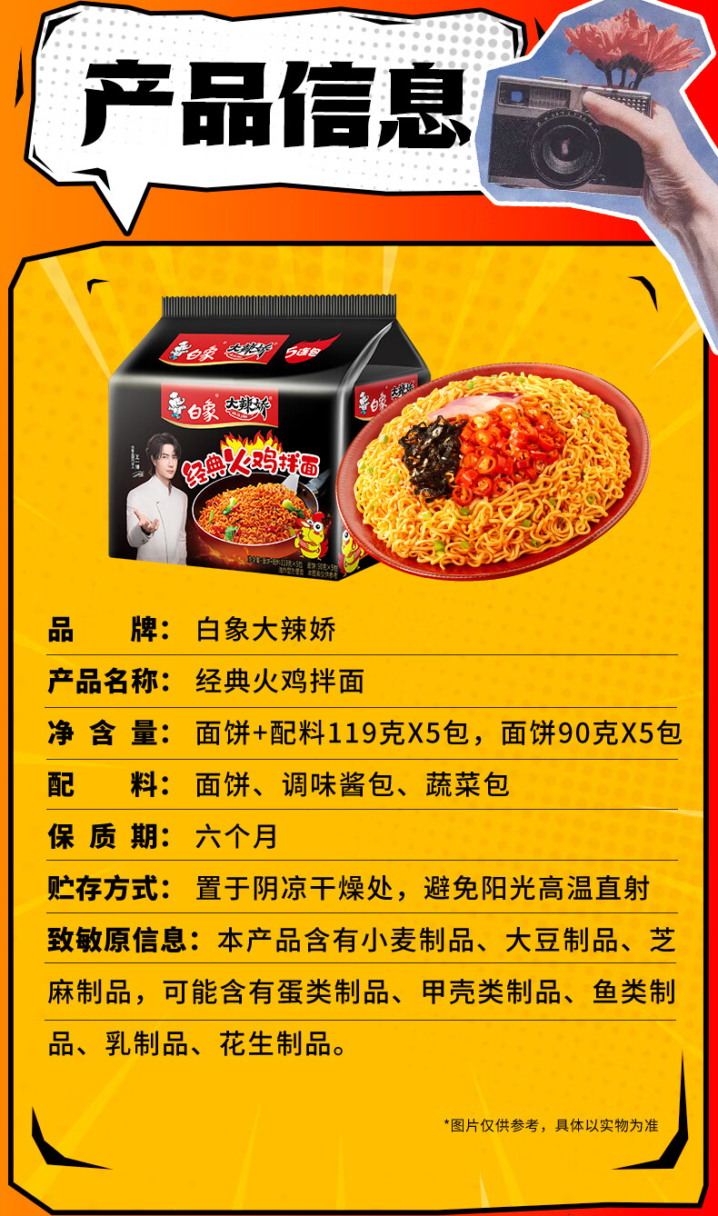 白象 方便面 拌面 经典火鸡拌面 五连包119g*5包经典火鸡面五连包