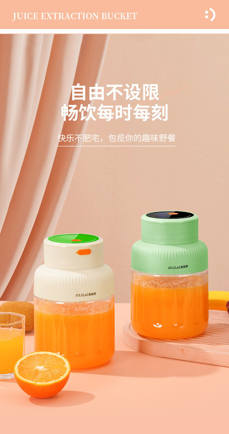 【超大容量】多功能无线便携榨汁机刀头补充维C榨汁直饮-WH 【绿色榨汁机】送吸管 直饮盖