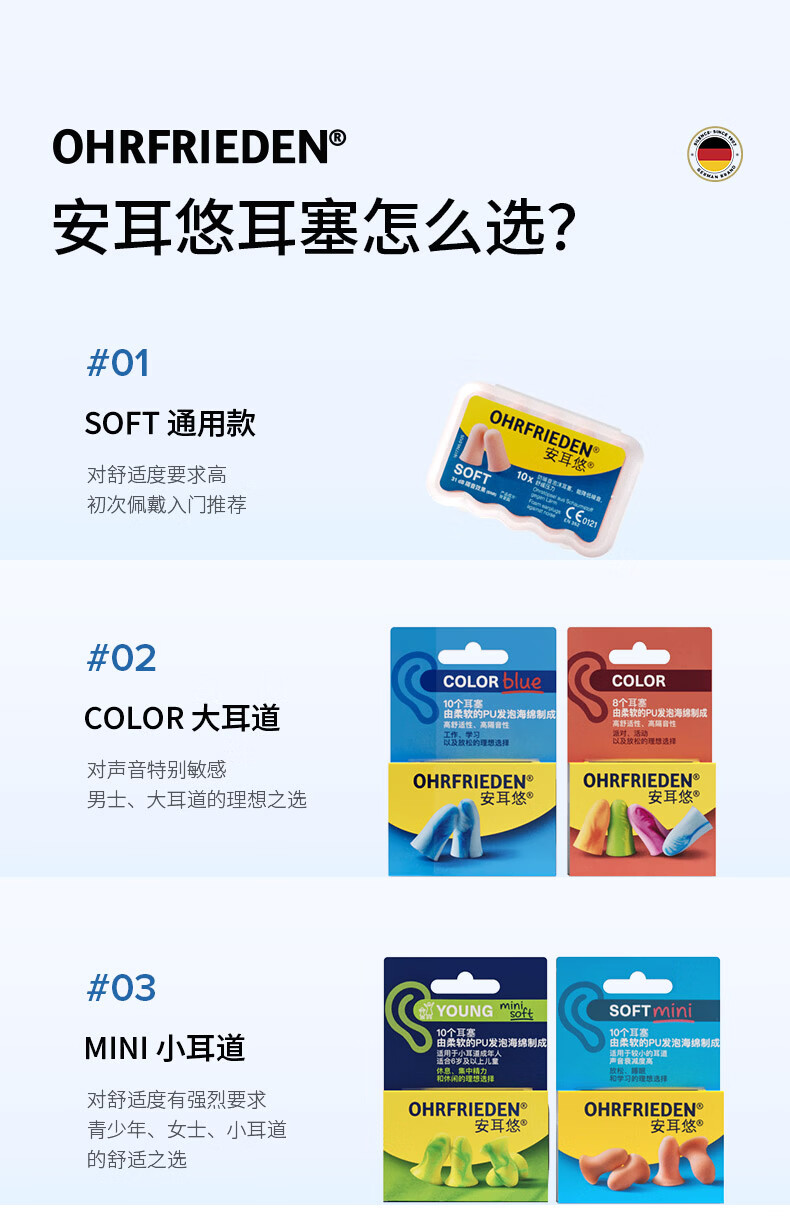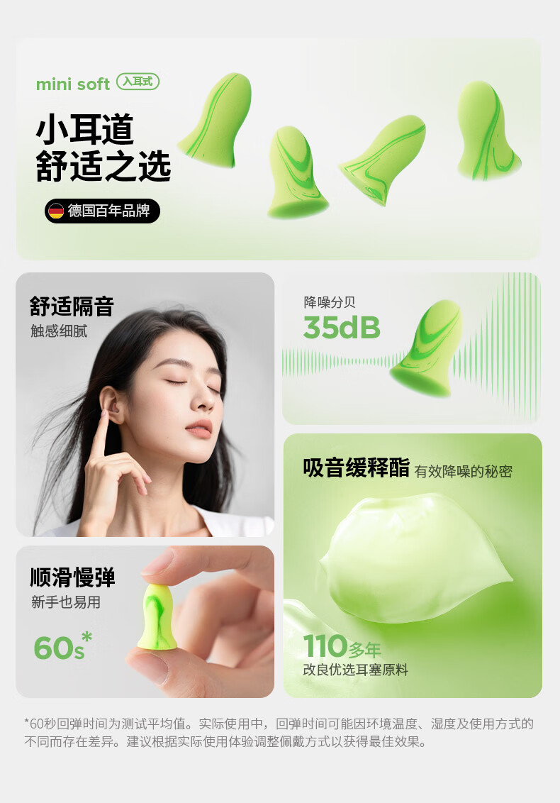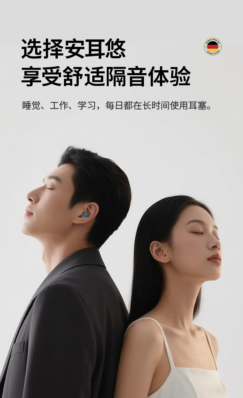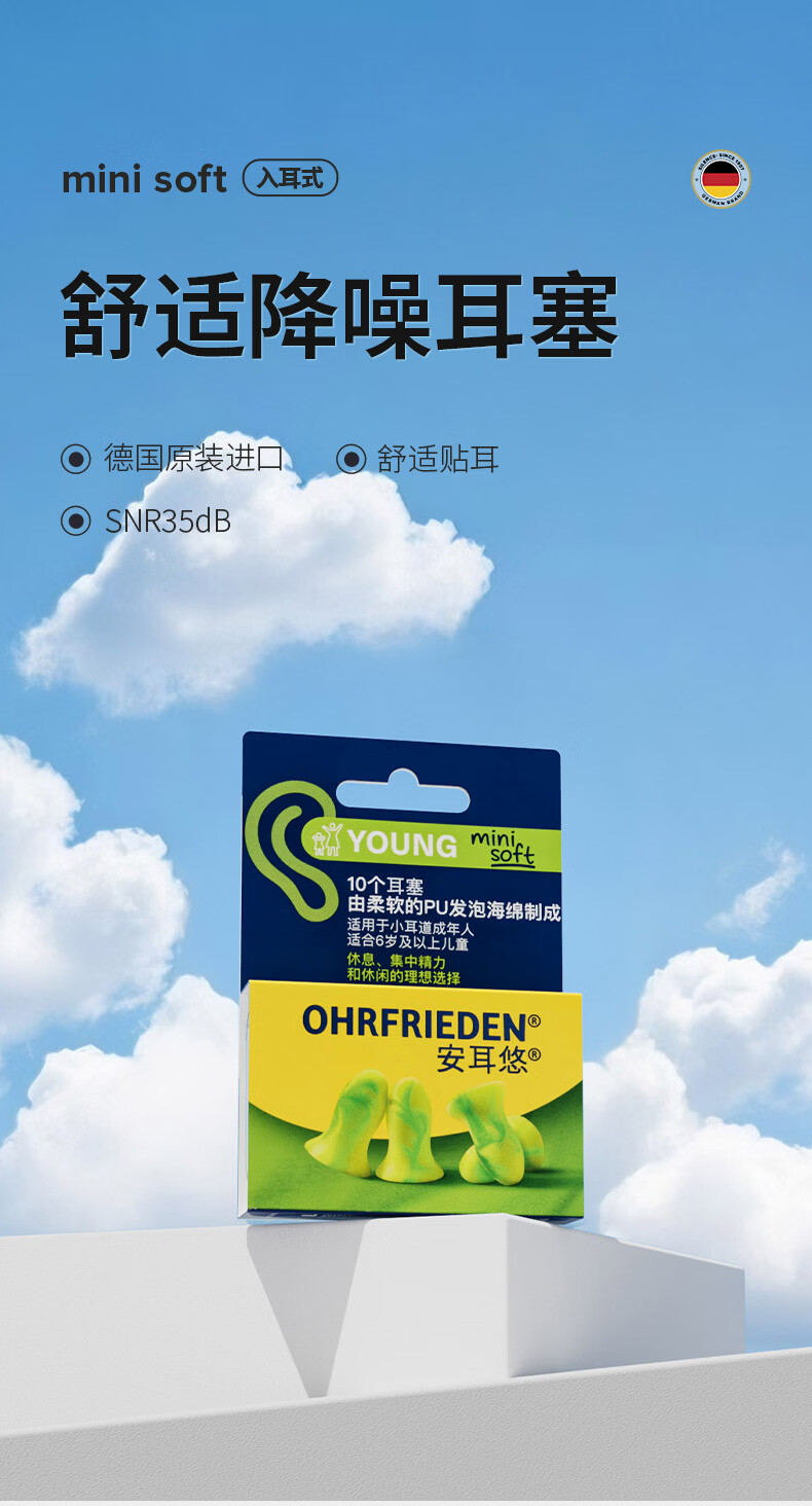 安耳悠 隔音耳塞德国进口睡眠防噪音年货鞭炮降噪女士小号款minisoft5副