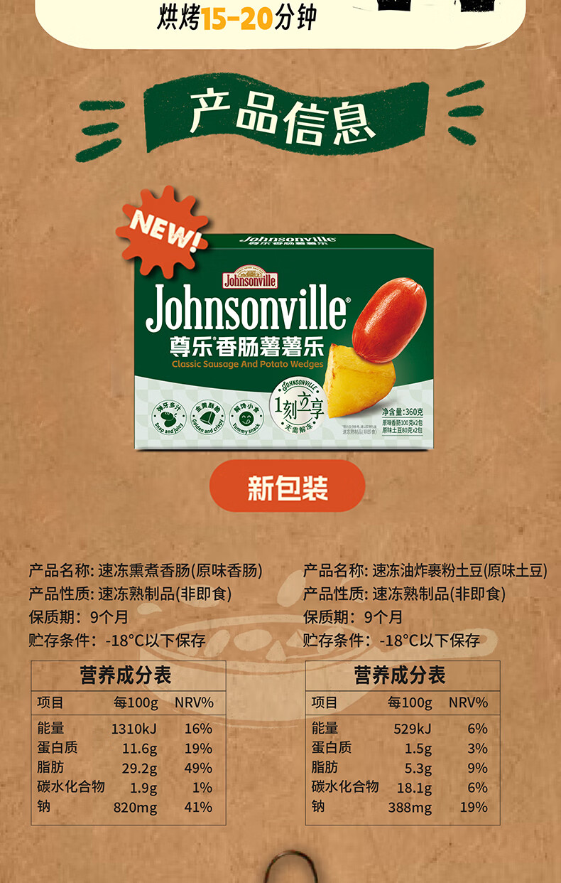 尊乐原味香肠薯薯乐360g(香肠200g+土豆160g) 烤肠香肠春节也送货
