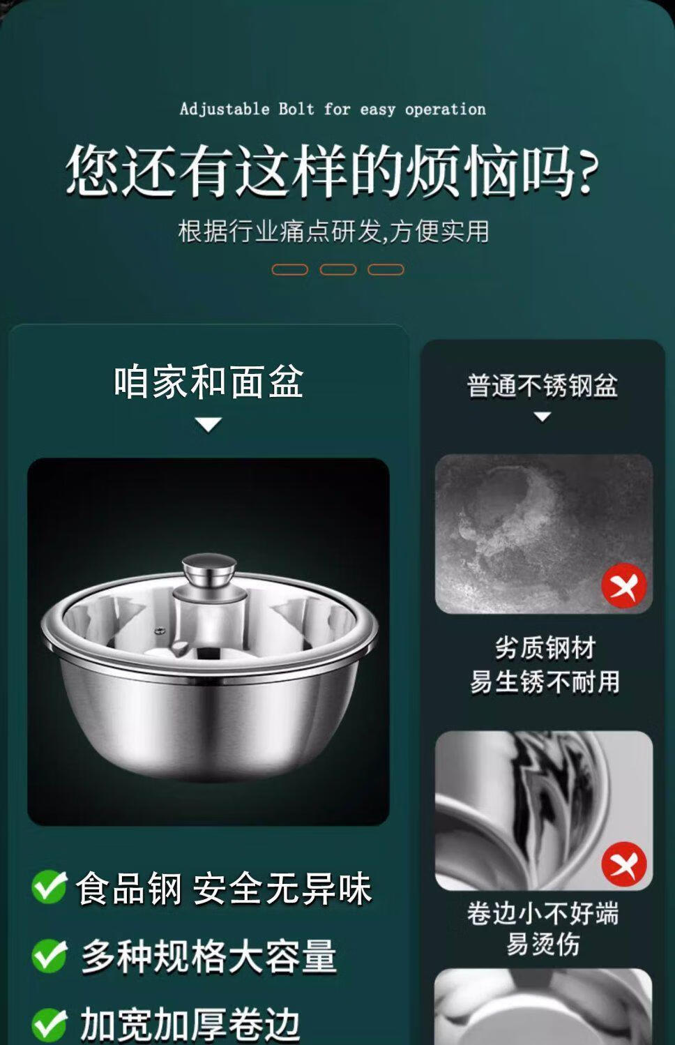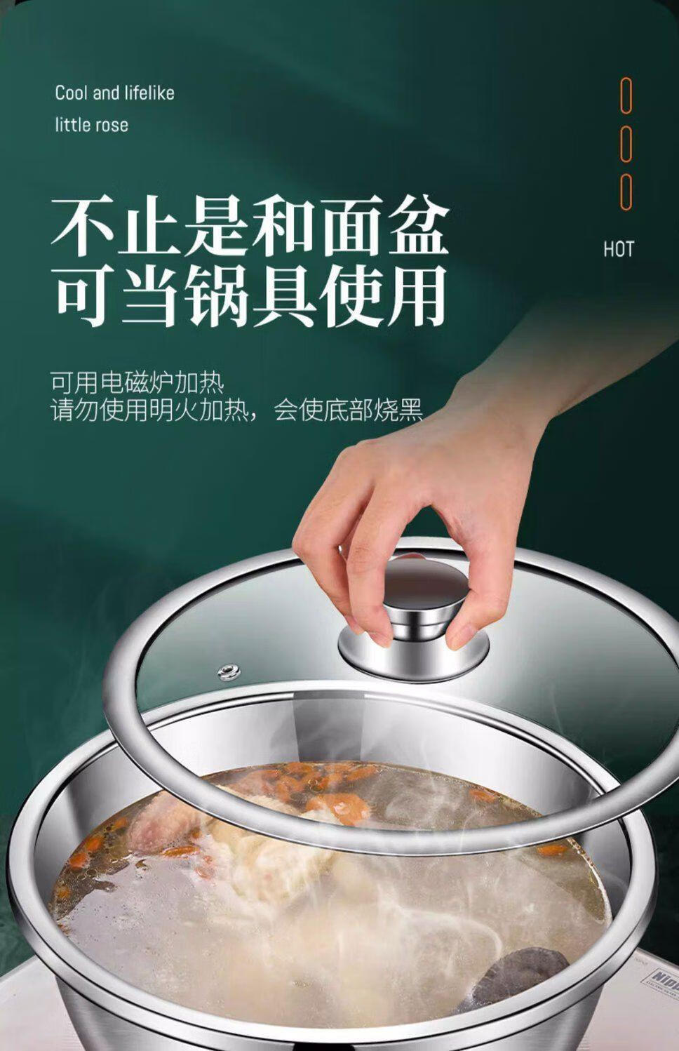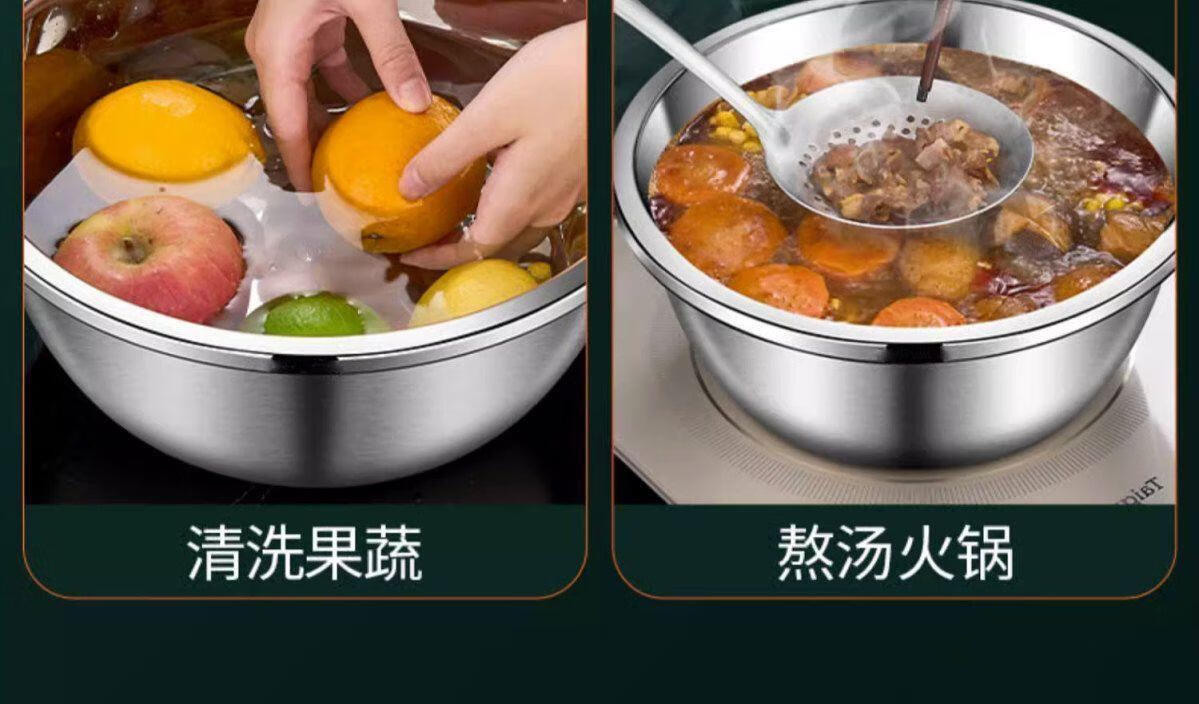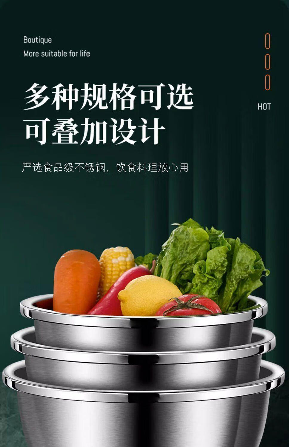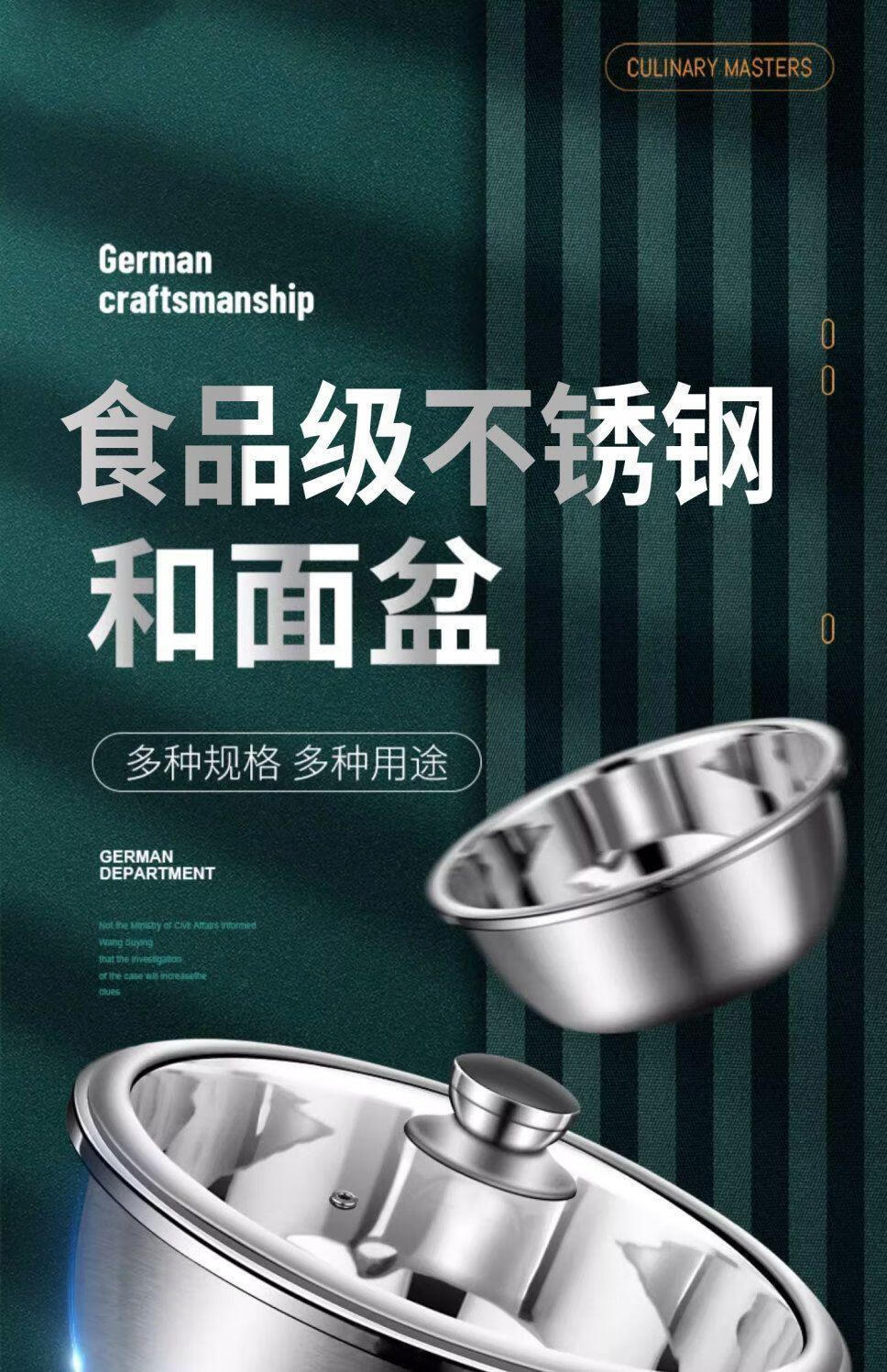 食品级不锈钢和面盆带盖加厚家用不锈钢盆烘焙打蛋厨房调料盆 无磁/耐用款 20cm特厚和面盆【无盖】