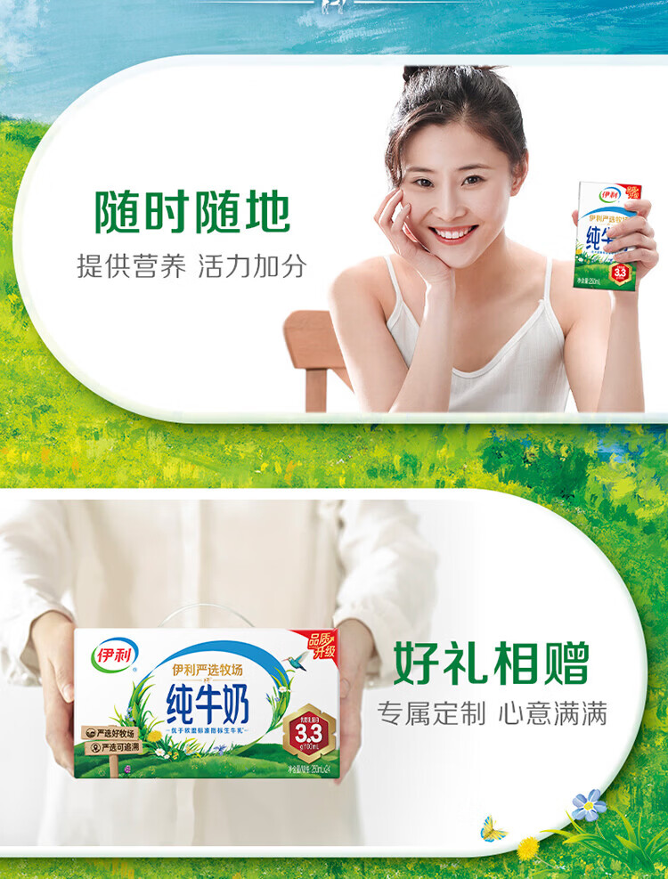伊利纯牛奶系列 全脂营养乳蛋白 营养细化 多种规格可选 年货礼盒 【更小规格】纯牛奶200ml*24盒