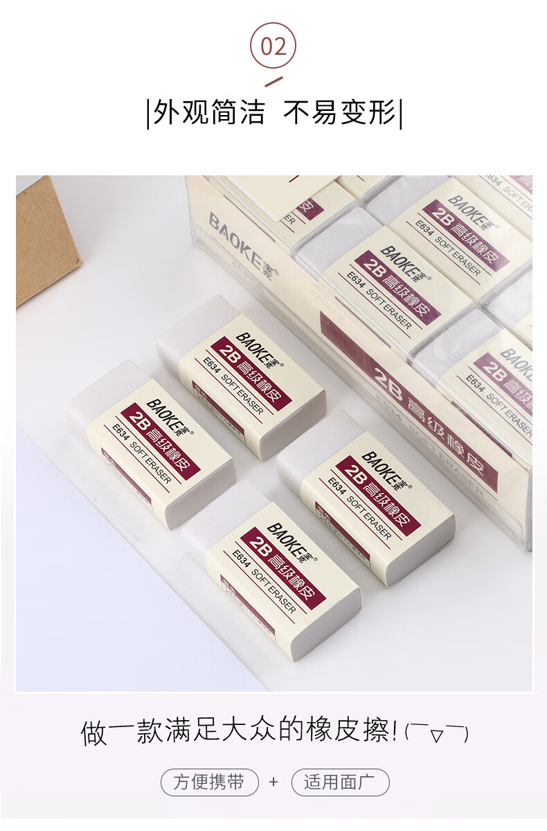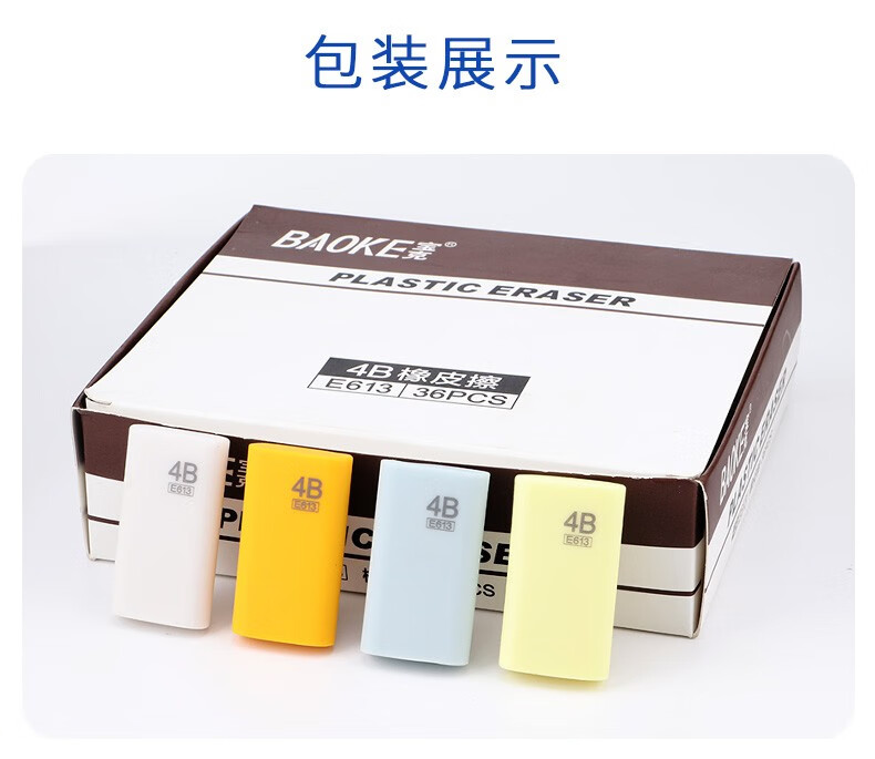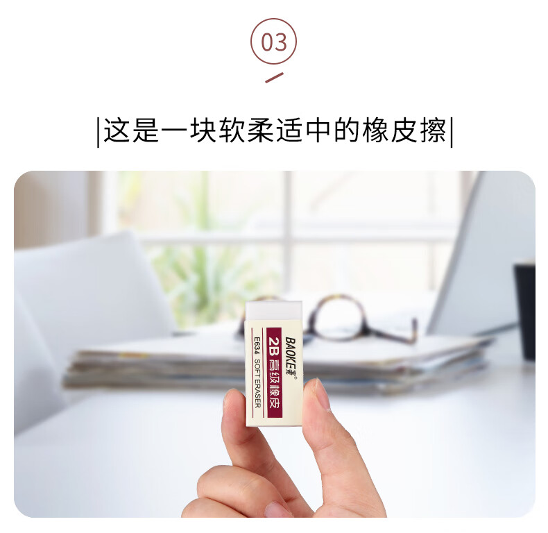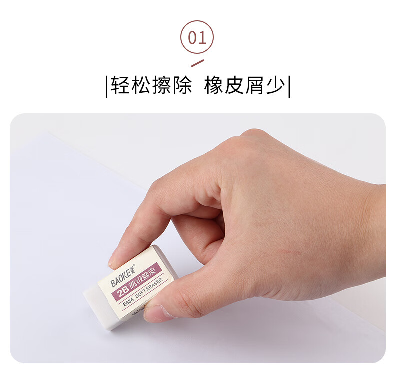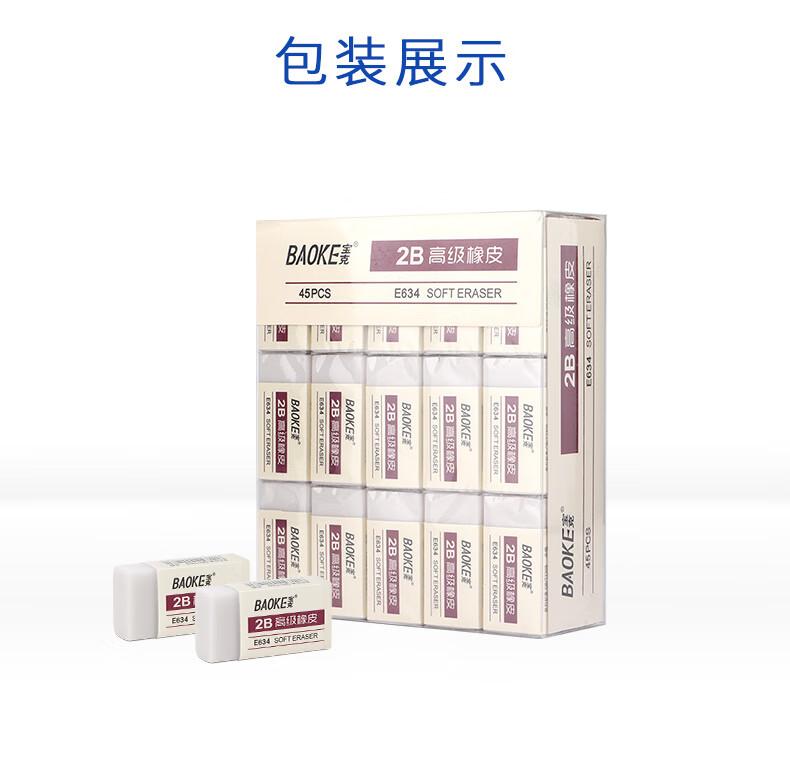 宝克(BAOKE)E634 橡皮擦 学生办公通用写字涂改美术素描橡皮 小学生学习文具用品 正姿洞洞铅笔+橡皮 小学生开学必备文具 单块独立包装 包邮
