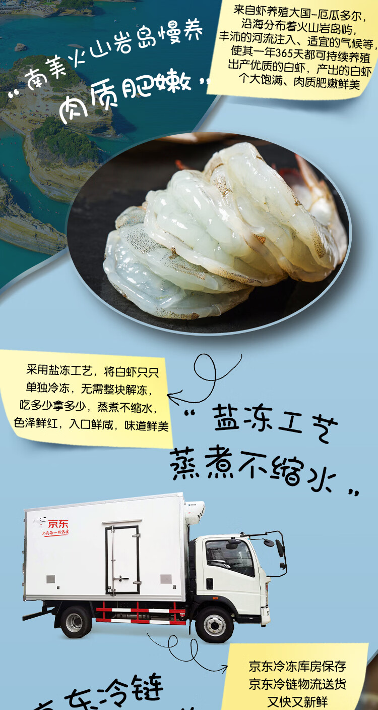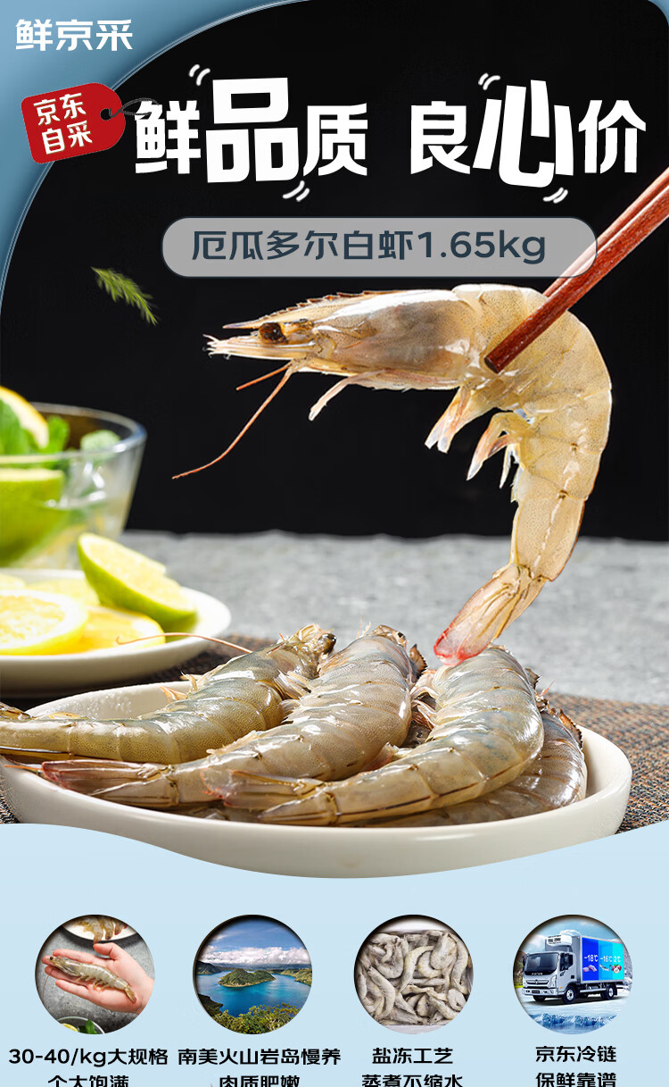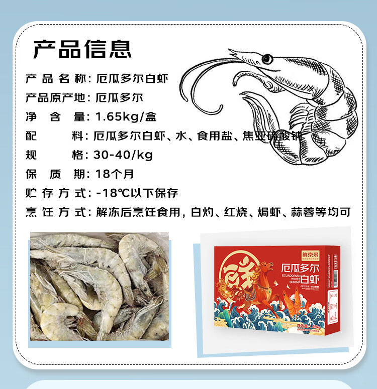 鲜京采 30/40厄瓜多尔白虾 去冰净重3.3斤 50-66只/盒 马年礼盒年货送礼