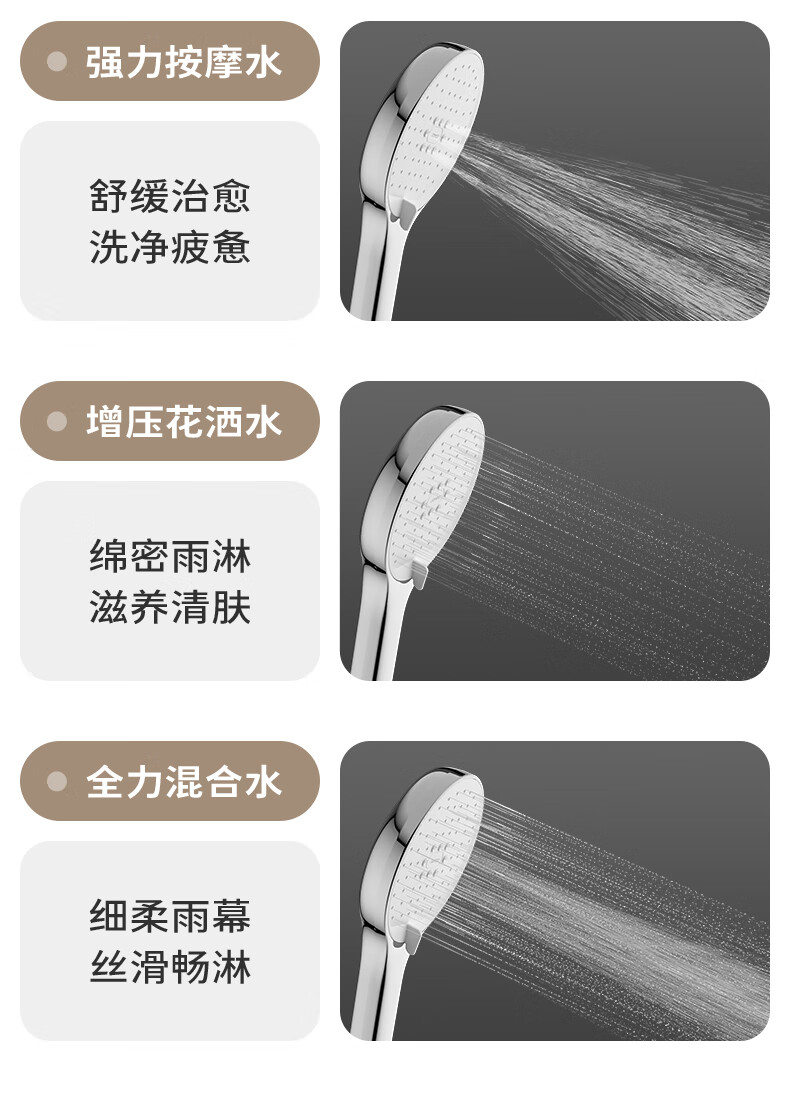【甄选百货】通用淋浴花洒喷头增压大出水淋雨套装家用洗澡手持花 增压花洒【十年质保】 无规格