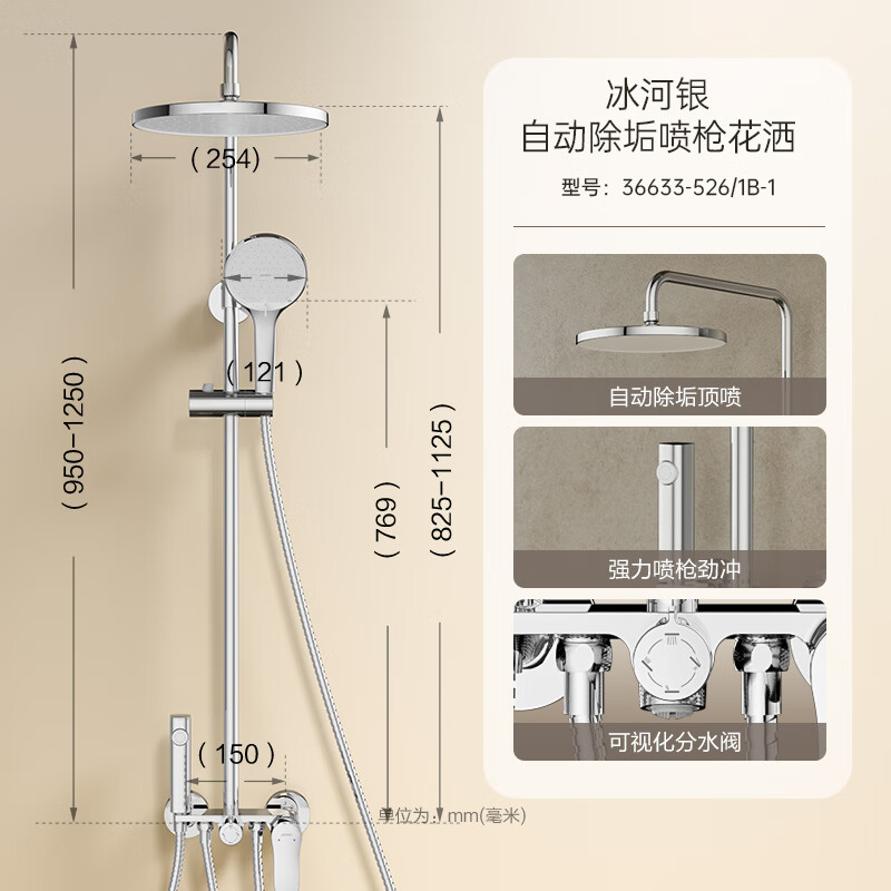九牧(JOMOO)淋浴花洒套装自动除垢喷枪淋浴器36633-526/1B-1