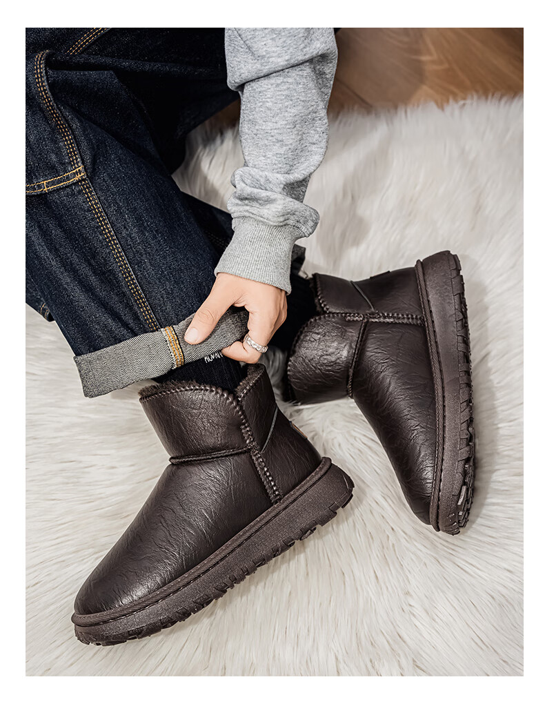 星期六厚底雪地靴女2025新款冬季加绒加厚面包鞋防滑短靴保暖棉鞋 咖啡色 【加绒保暖】 35