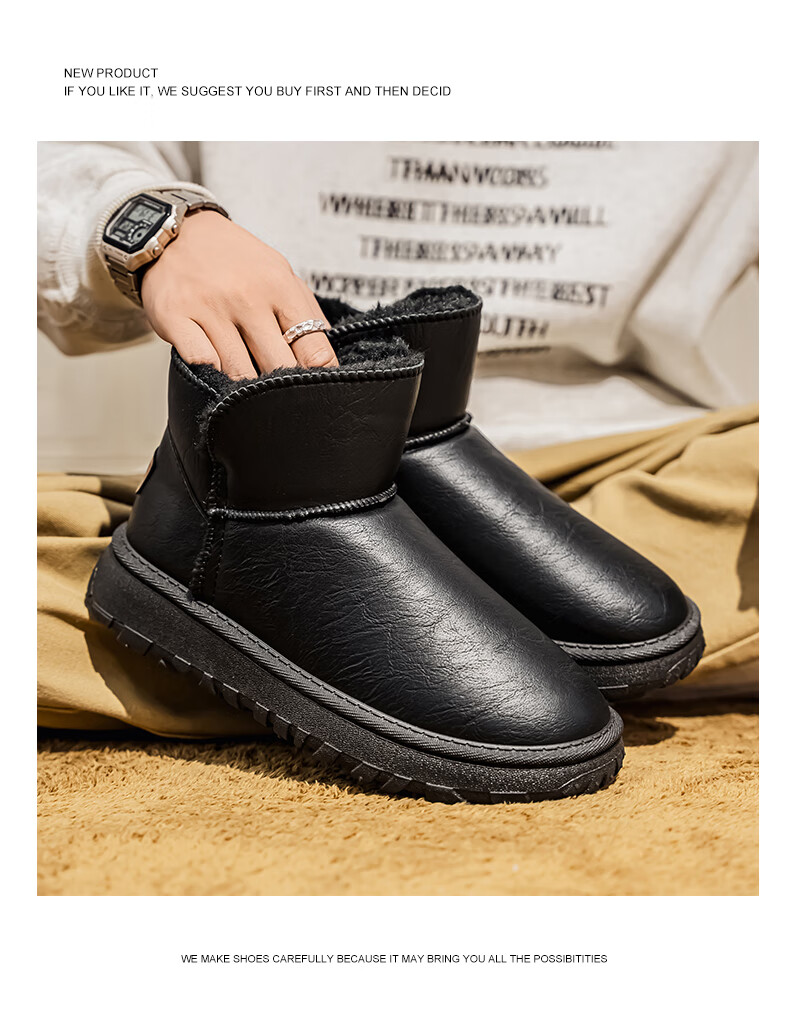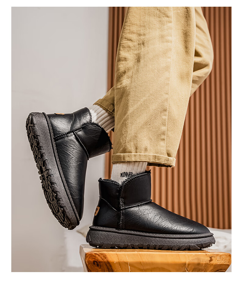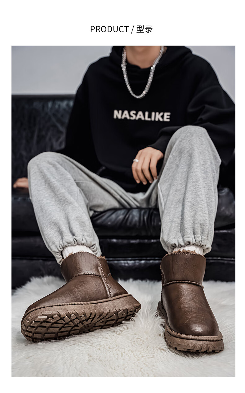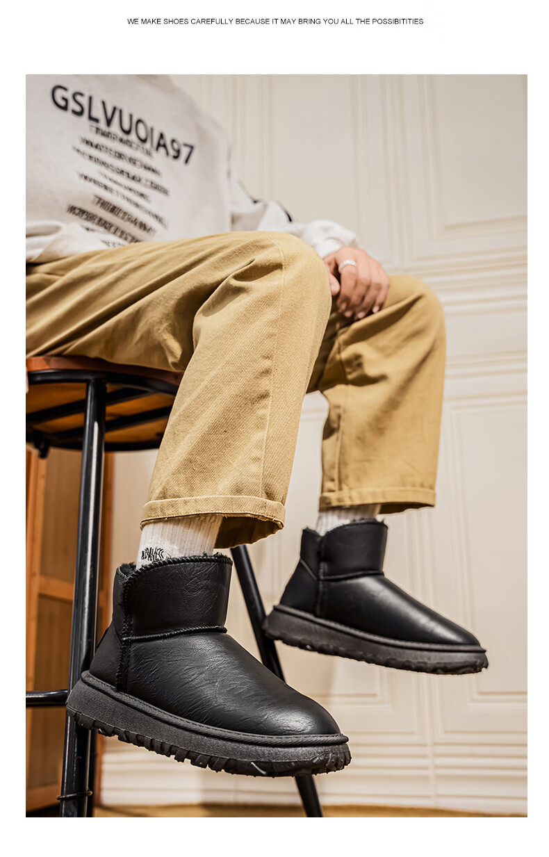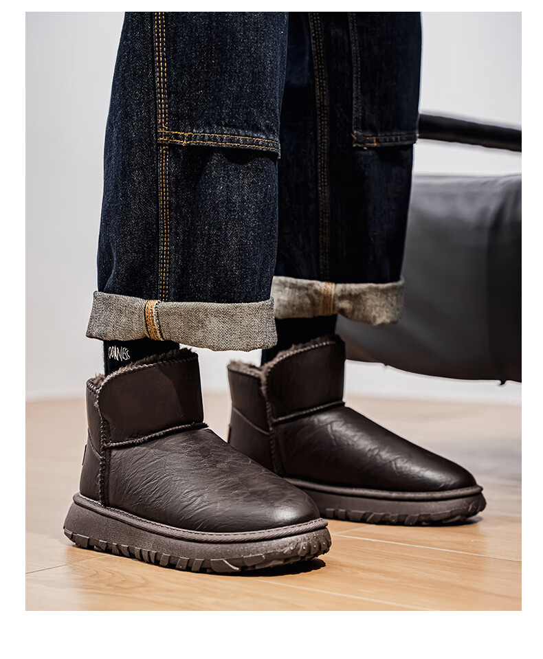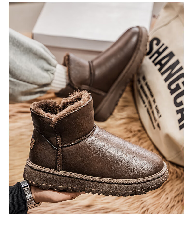 沙驰(SATCHI)男鞋【羊毛皮】防寒保暖雪地靴秋冬棉鞋舒适轻底休闲鞋男靴 卡其(H12A9G0320) 加绒 38 欧码(选小一码)