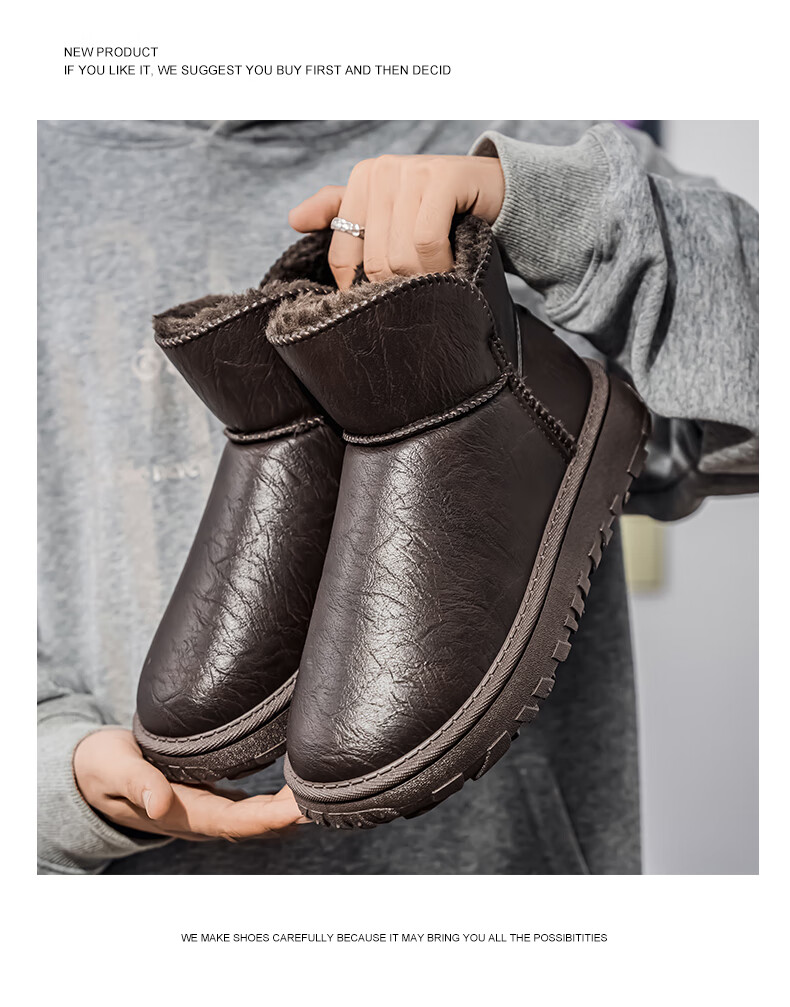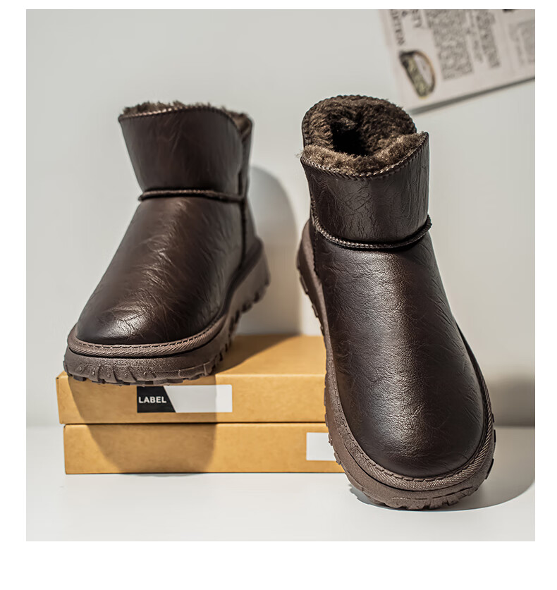 稻草人(MEXICAN)棉鞋男款2026新款冬季东北零下40度防寒面包鞋加绒加厚保暖雪地靴 棕色 39