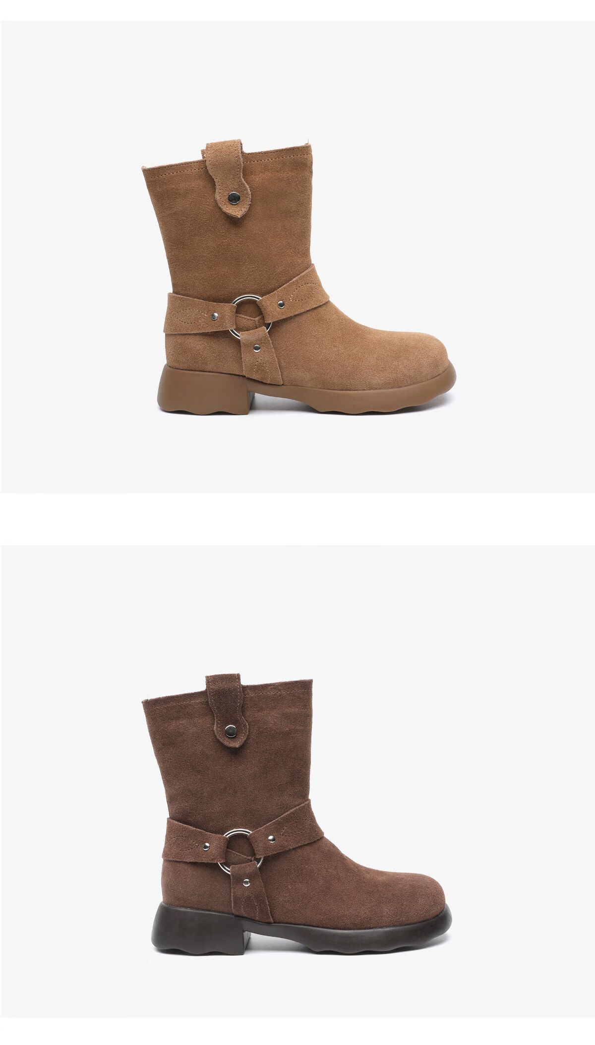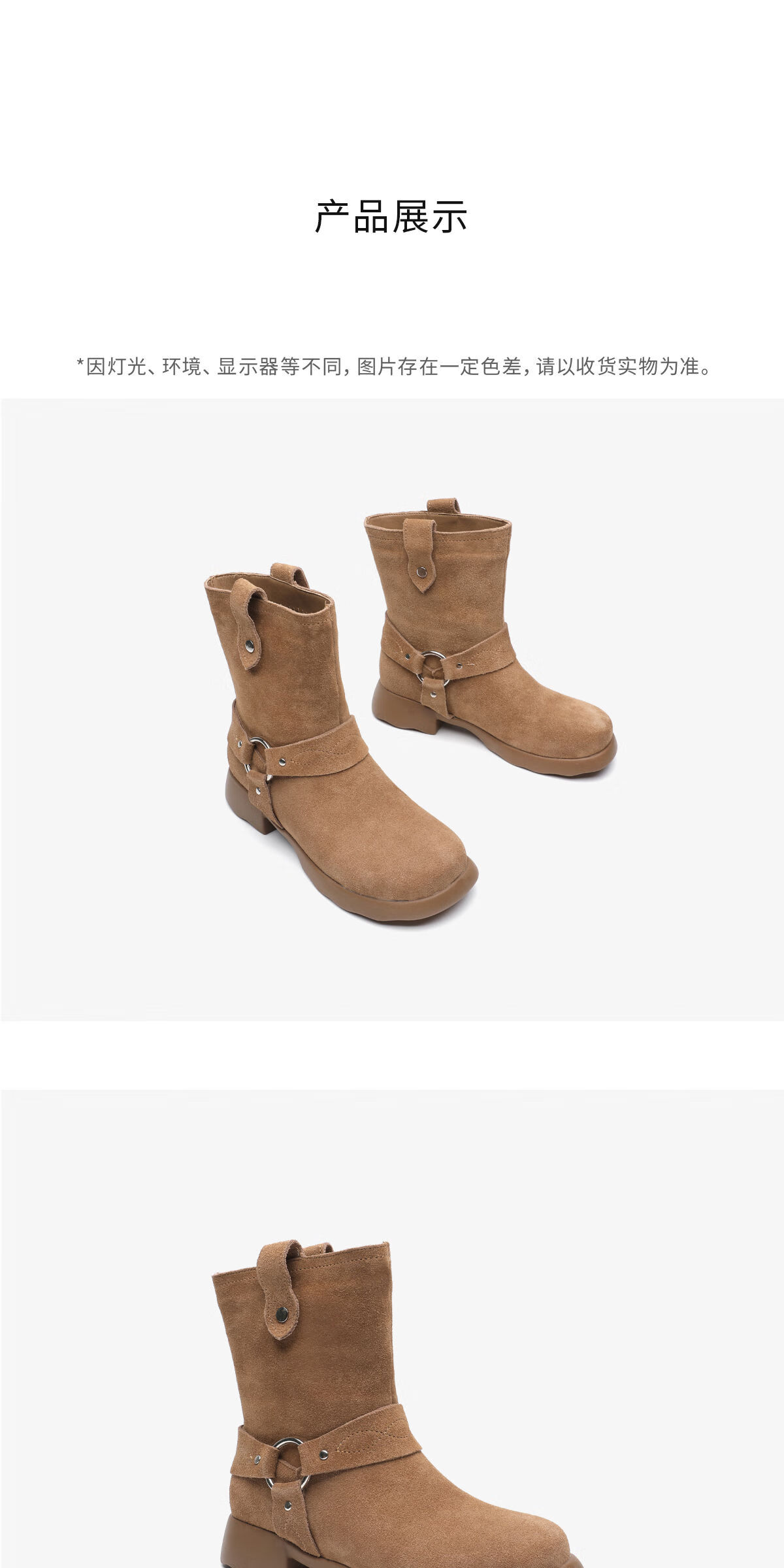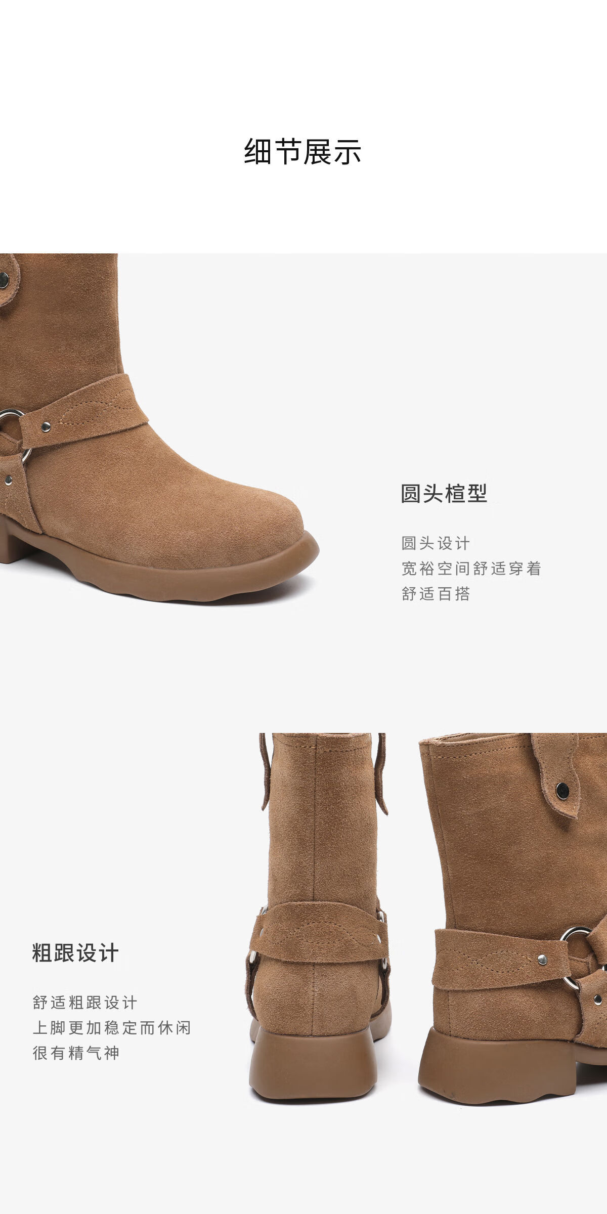 月芽儿短靴女2025新款冬季美拉德短筒堆堆靴百搭西部牛仔骑士靴子 绒里棕色03T 34