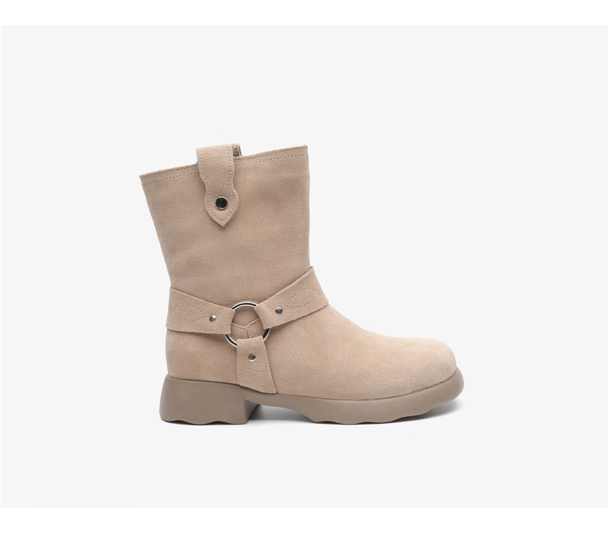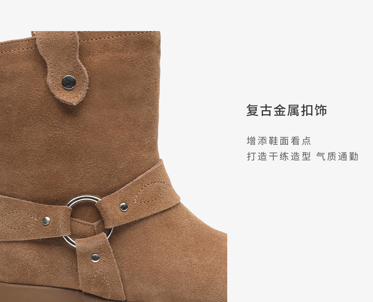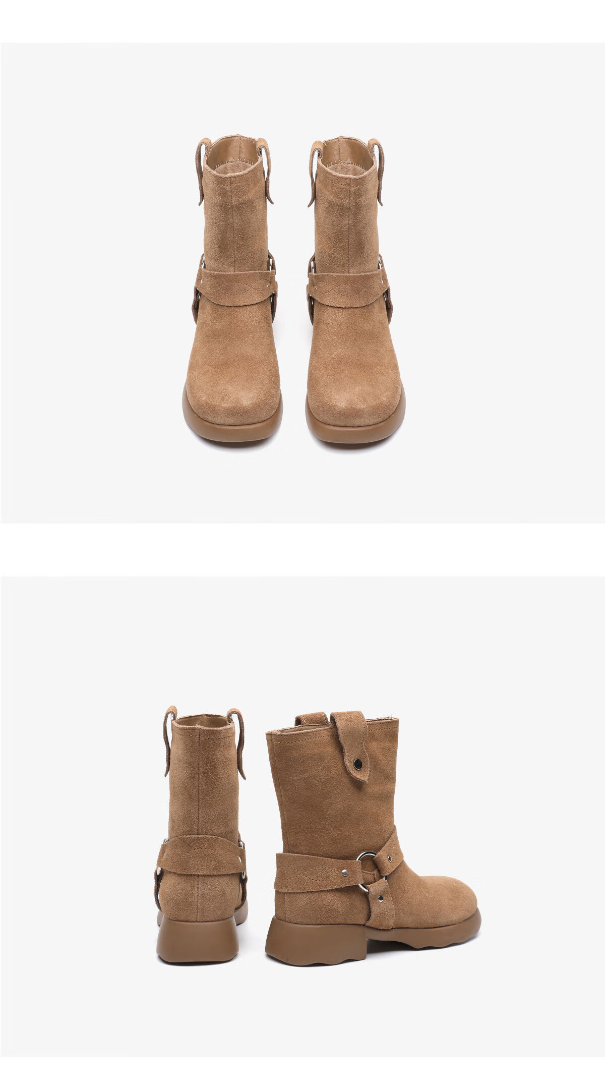 月芽儿短靴女2025新款冬季美拉德短筒堆堆靴百搭西部牛仔骑士靴子 绒里棕色03T 34