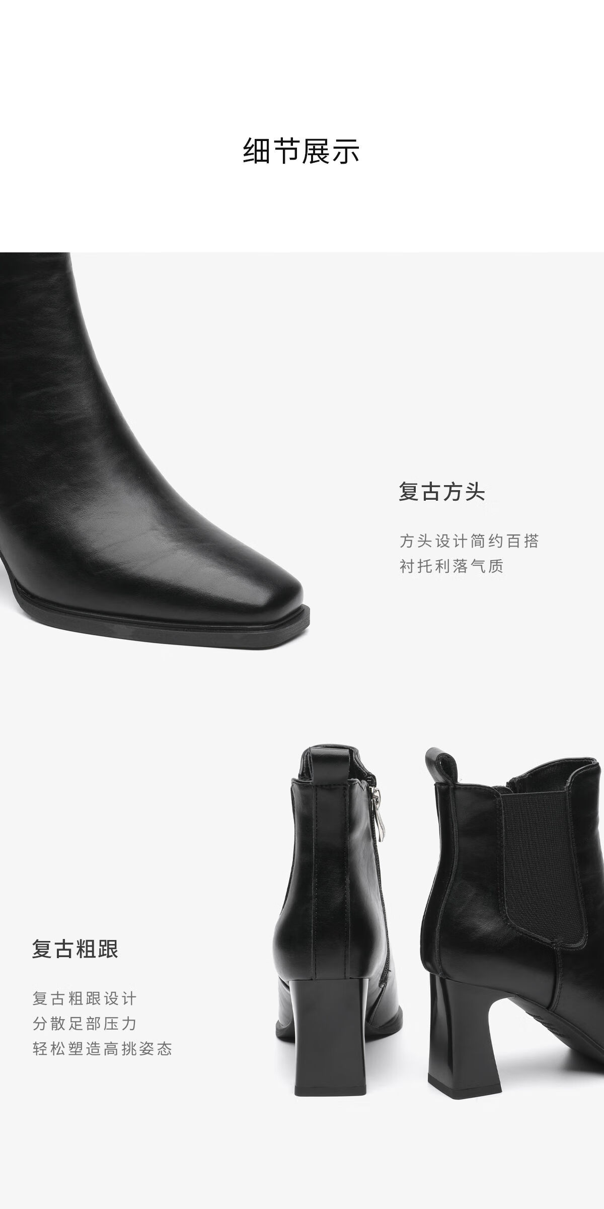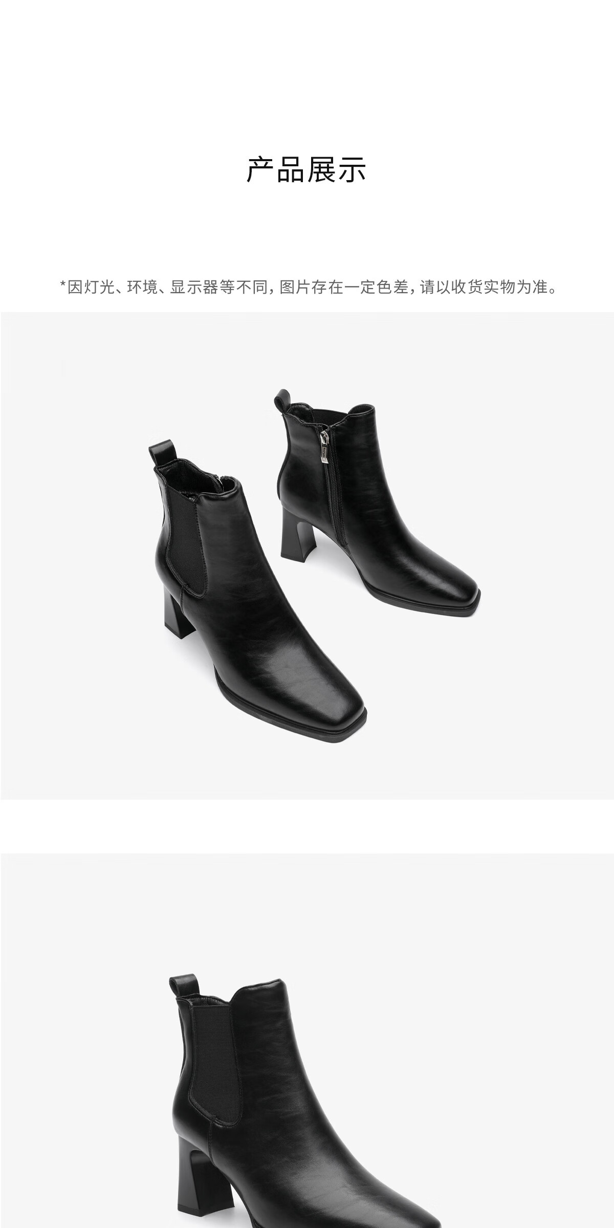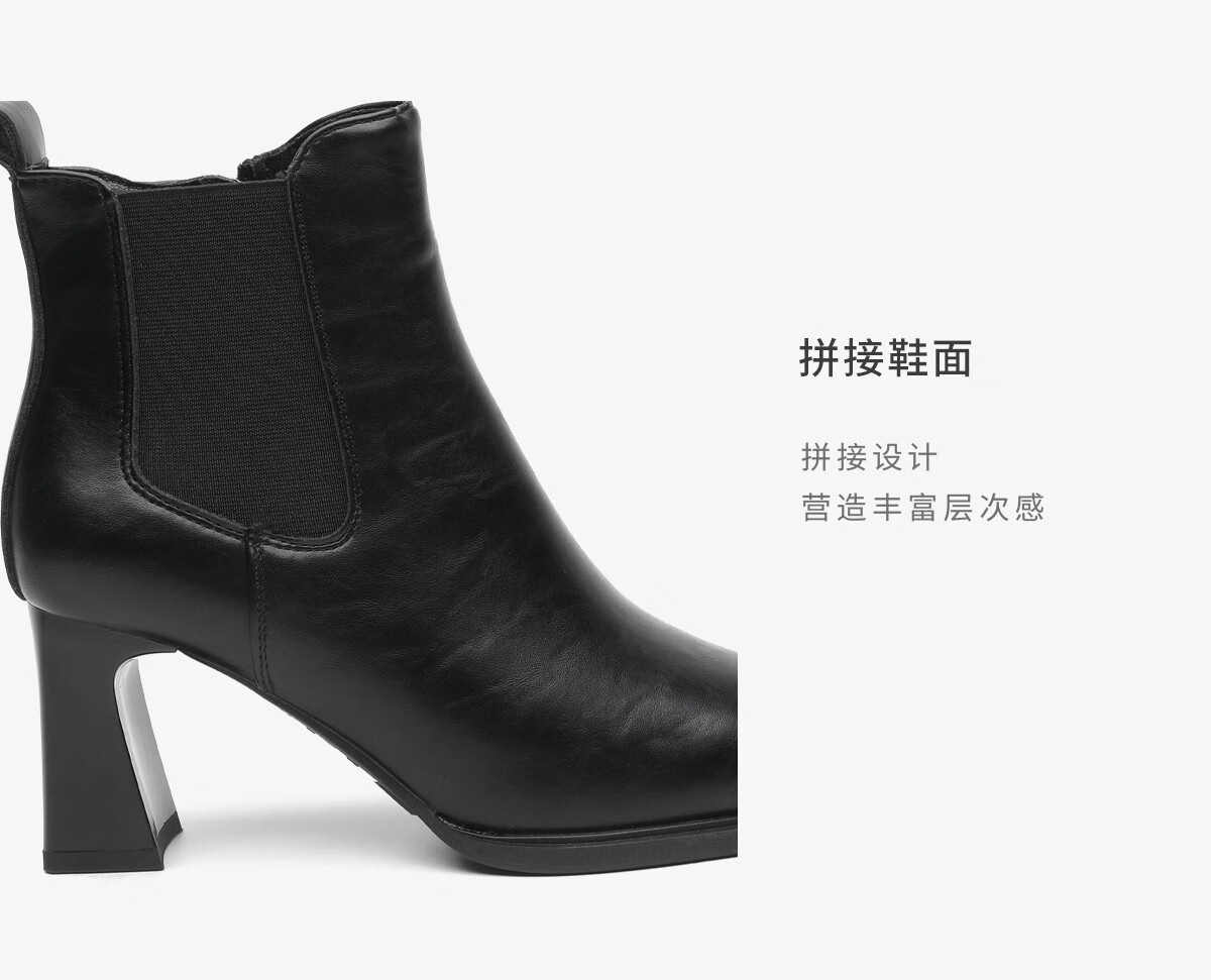 月芽儿短靴女2025新款冬季英伦风切尔西靴百搭方头加绒靴 绒里黑色01T 34