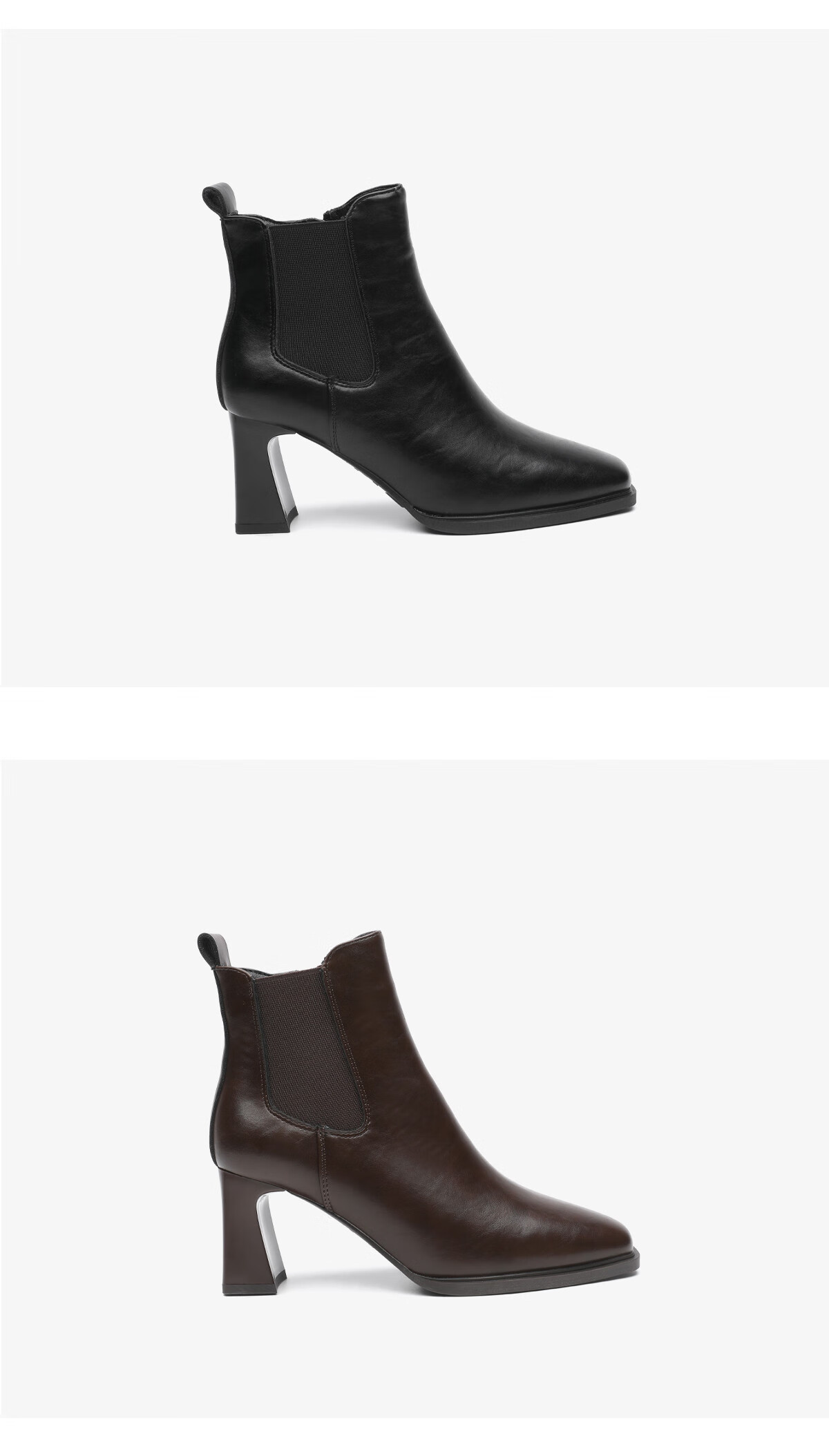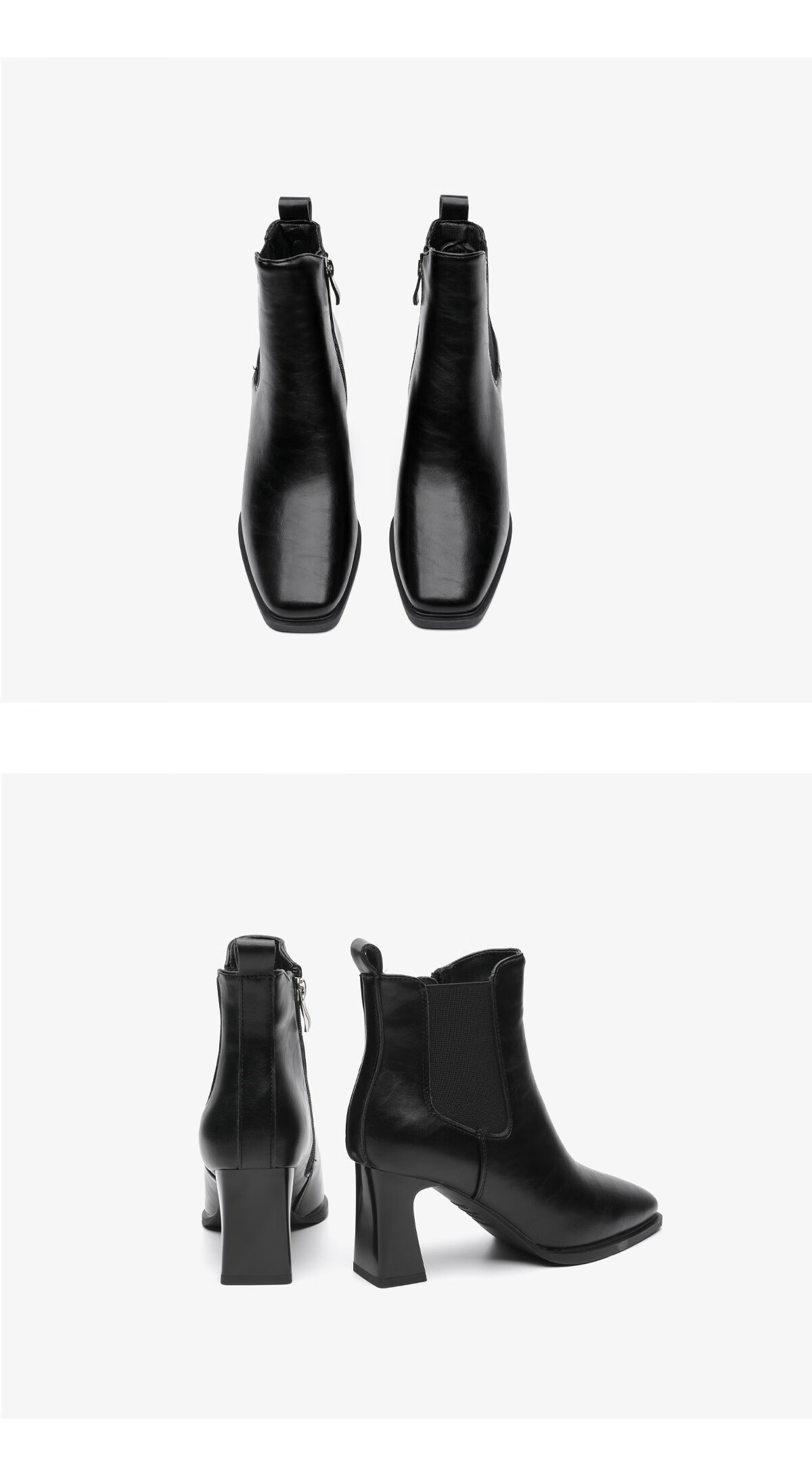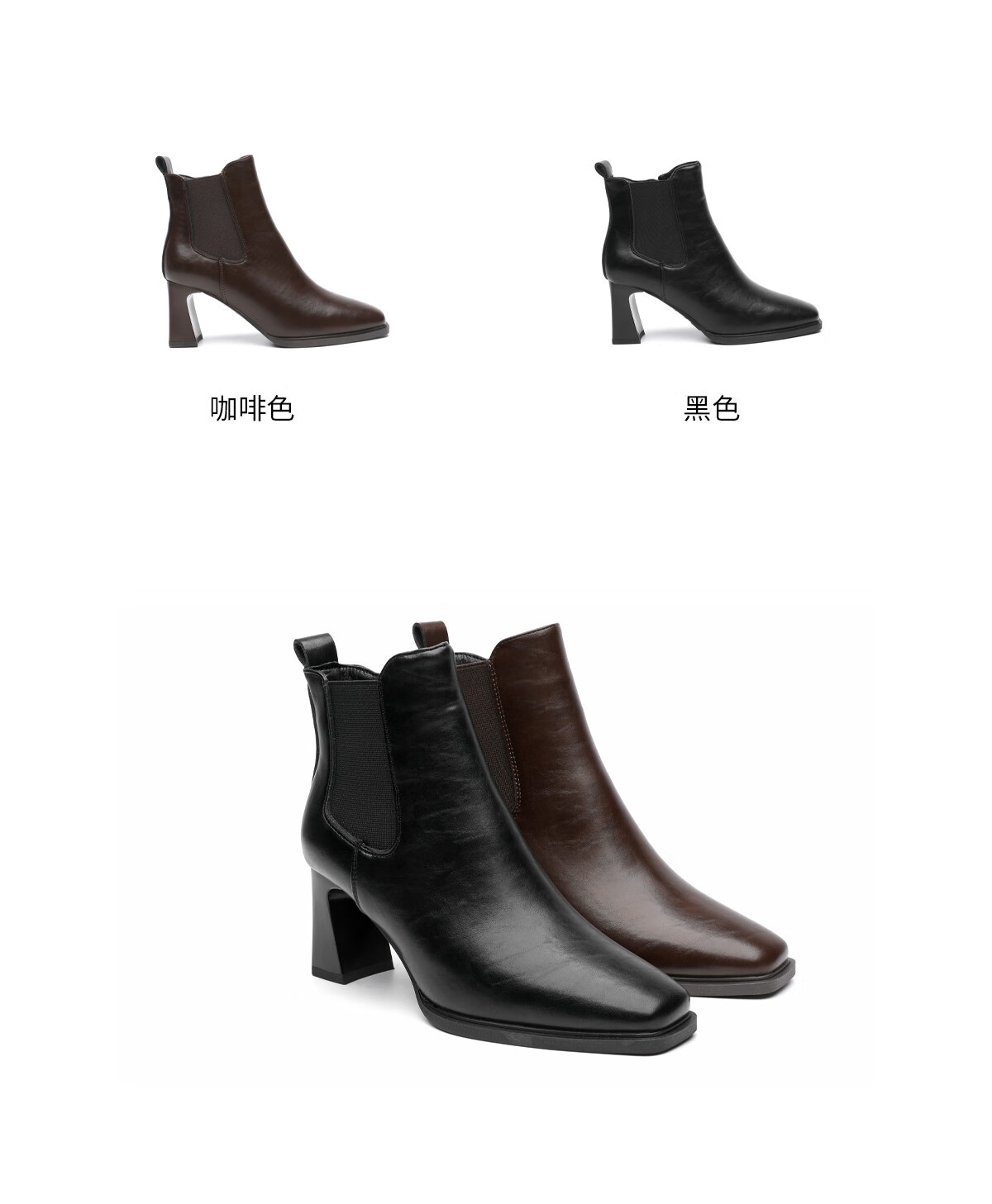 月芽儿短靴女2025新款冬季英伦风切尔西靴百搭方头加绒靴 绒里黑色01T 34