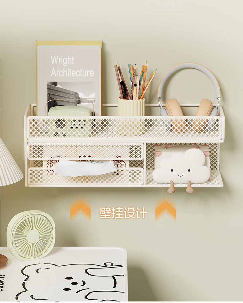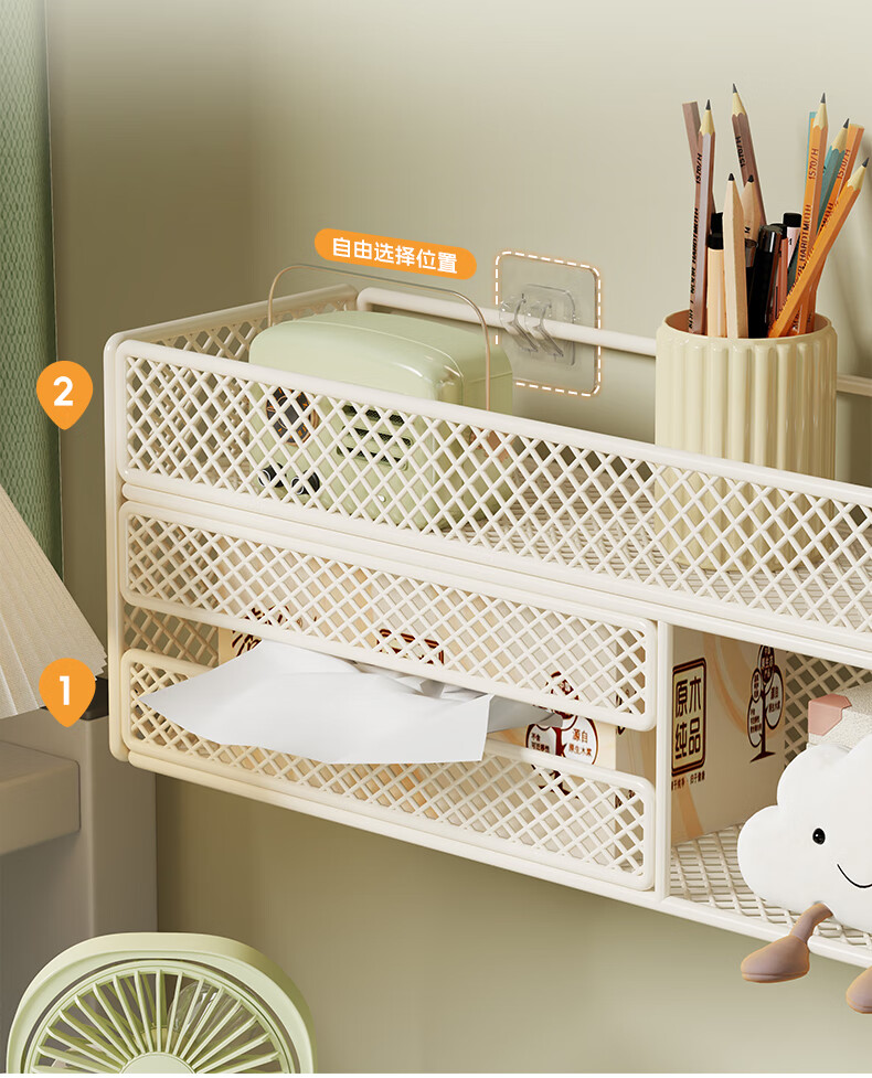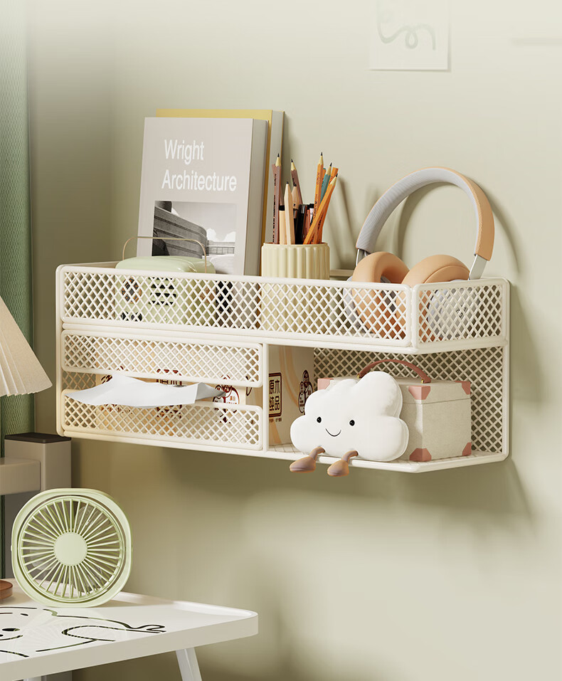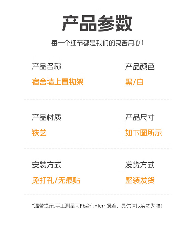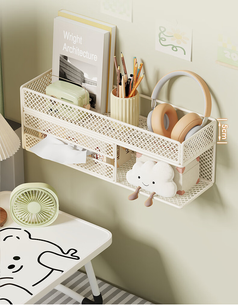 尔思家宿舍置物架墙上免打孔儿童零食收纳架壁挂式杂物储物柜水杯放置架 黑色