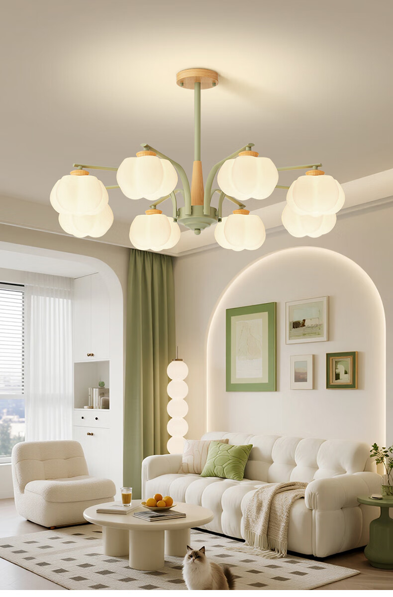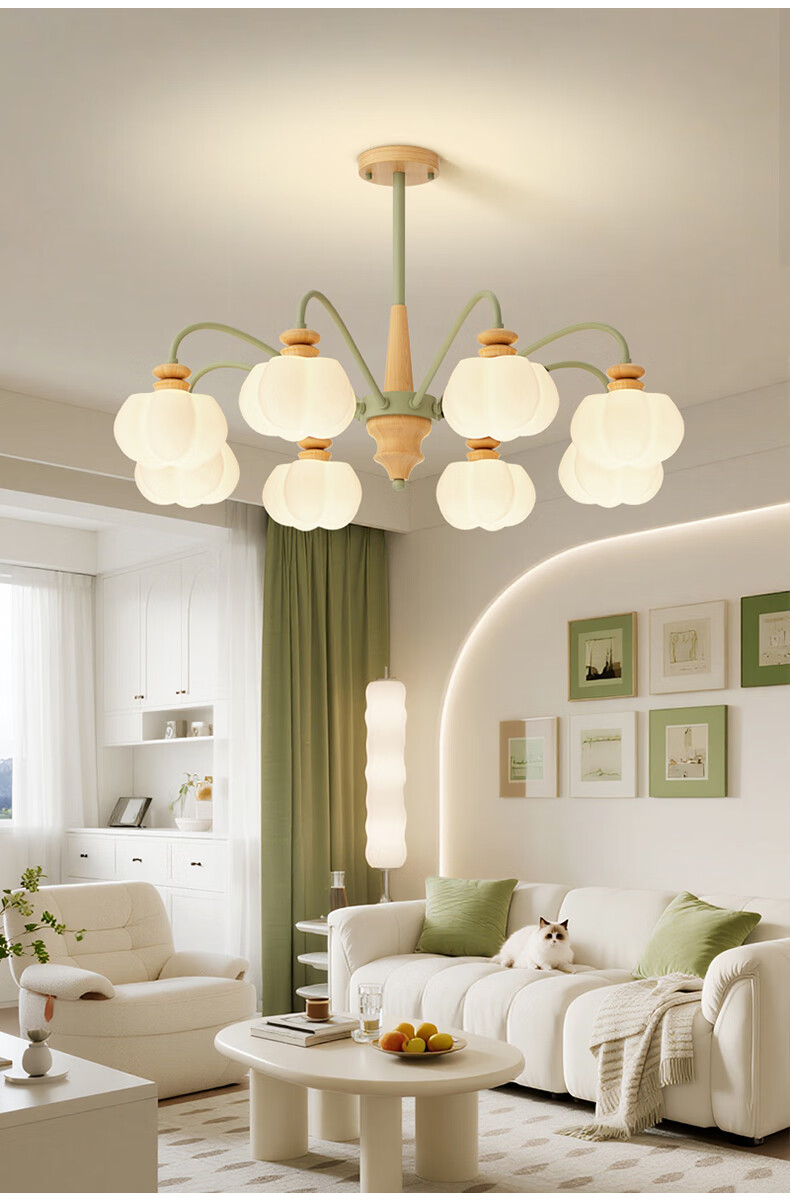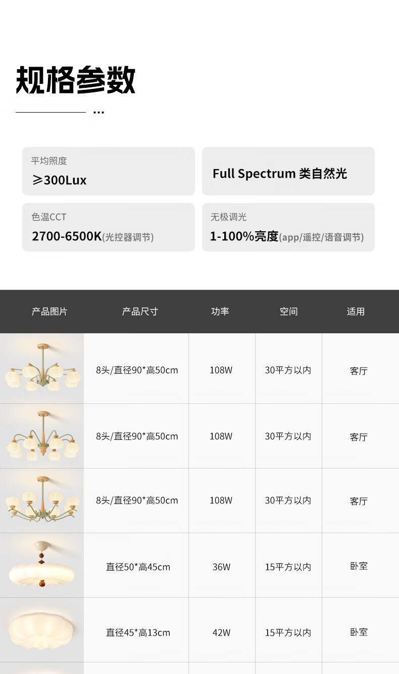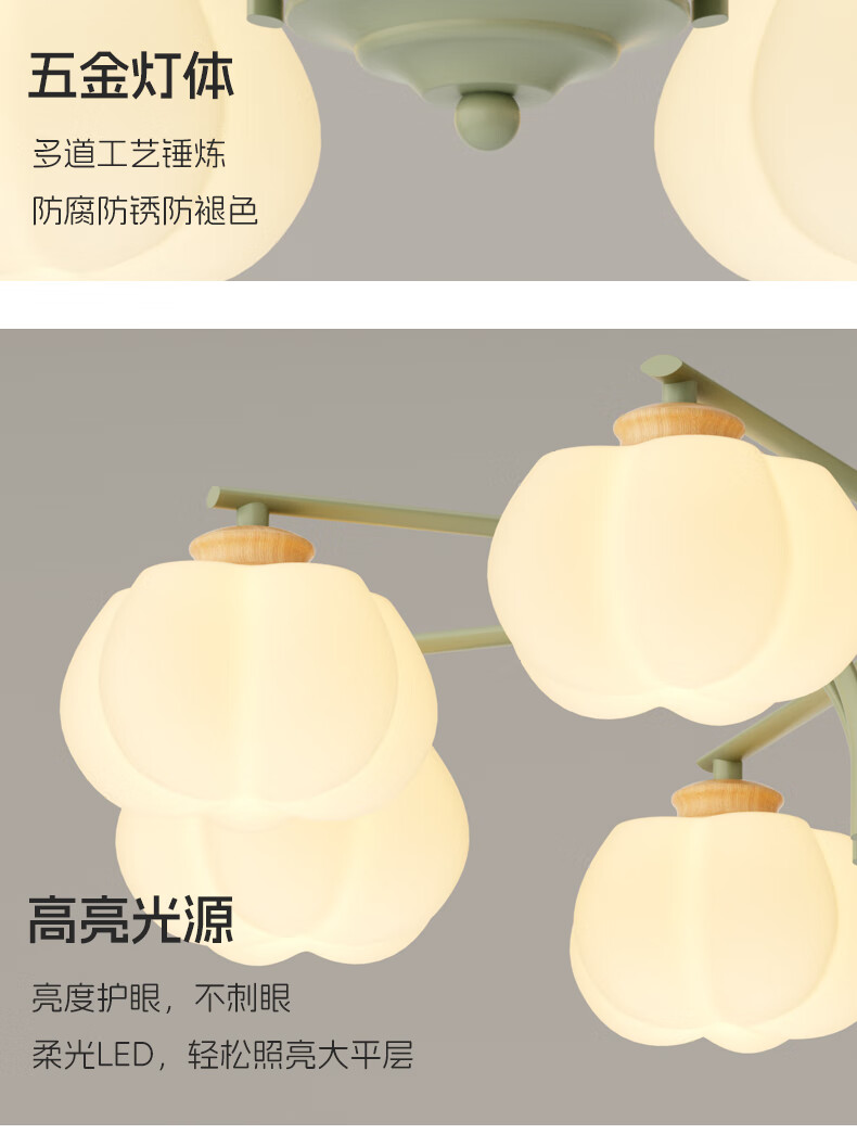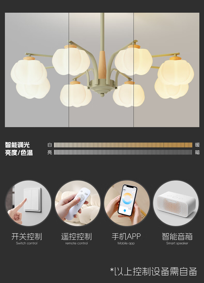 思阳原木风客厅吊灯创意家用全光谱棉花灯2025新款灯具全屋组合套 套餐1-三室两厅 三色变光无遥控(不支持智能语音)