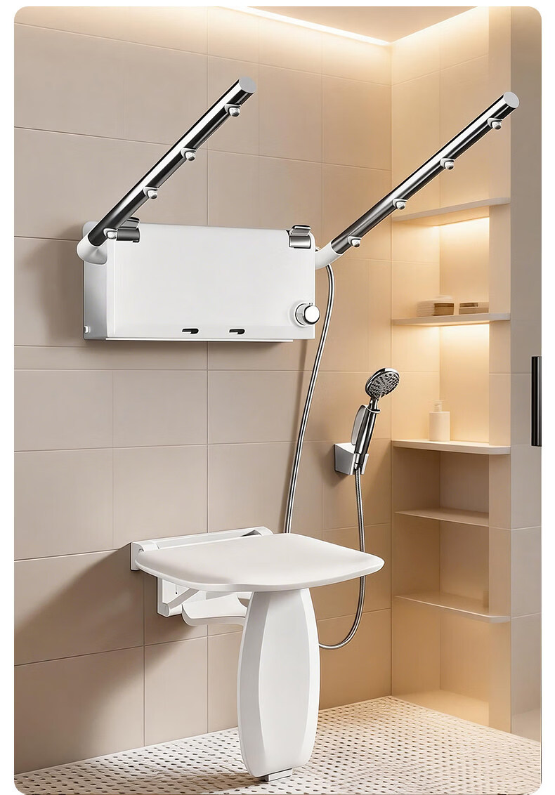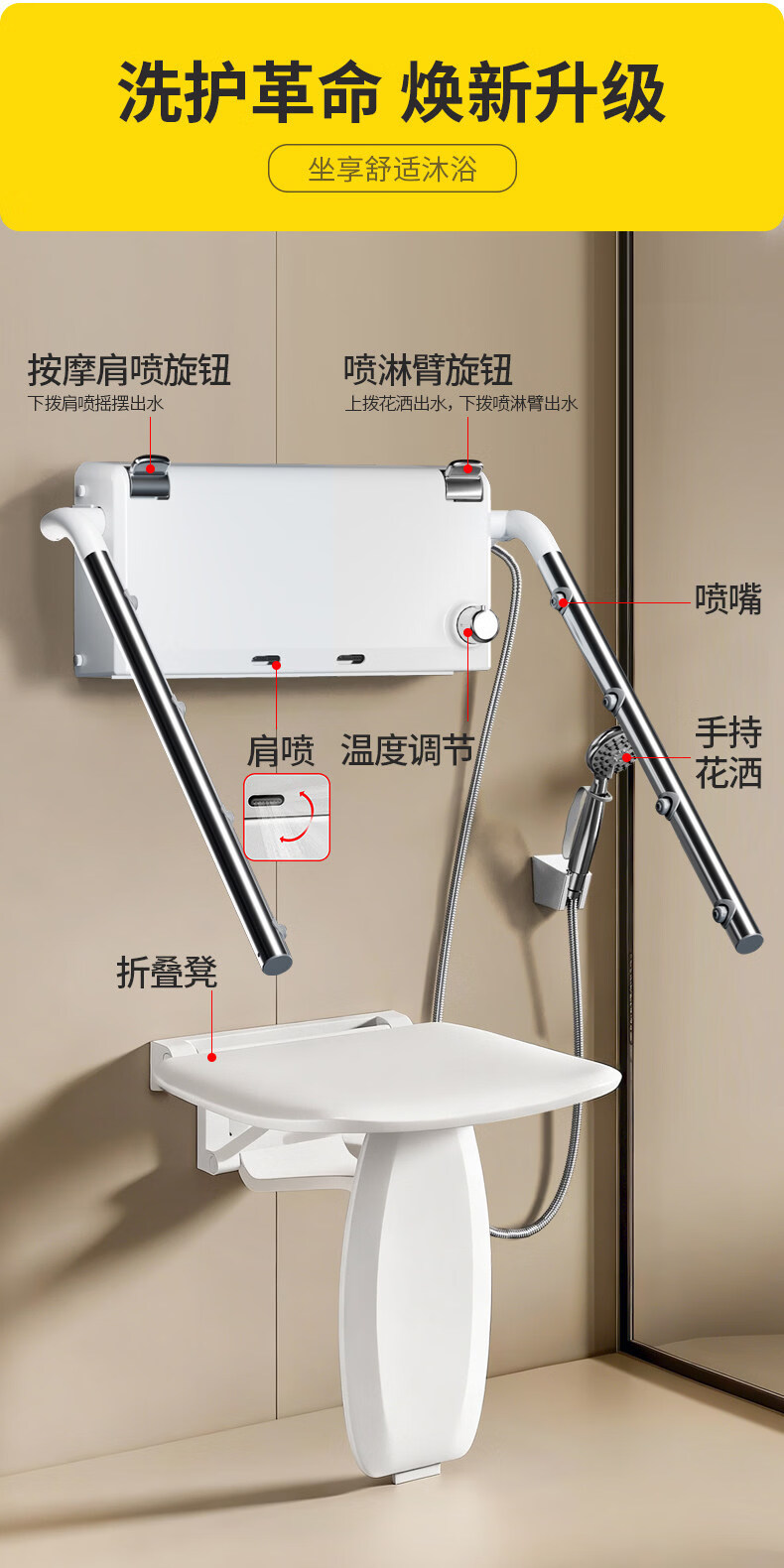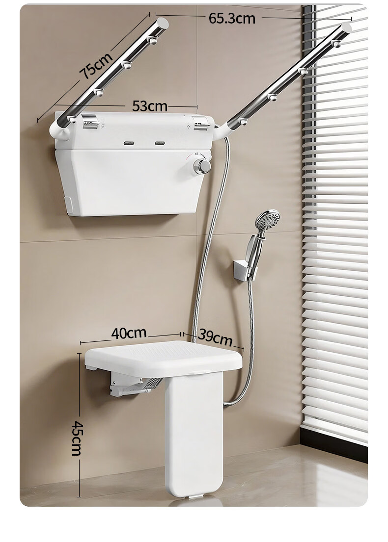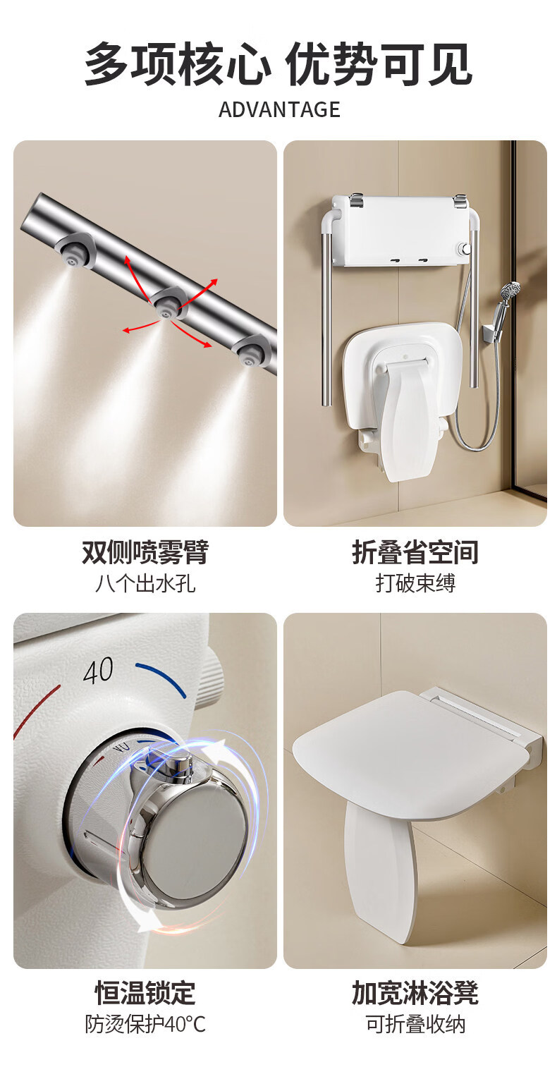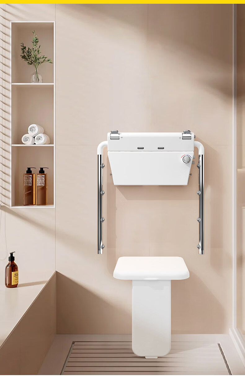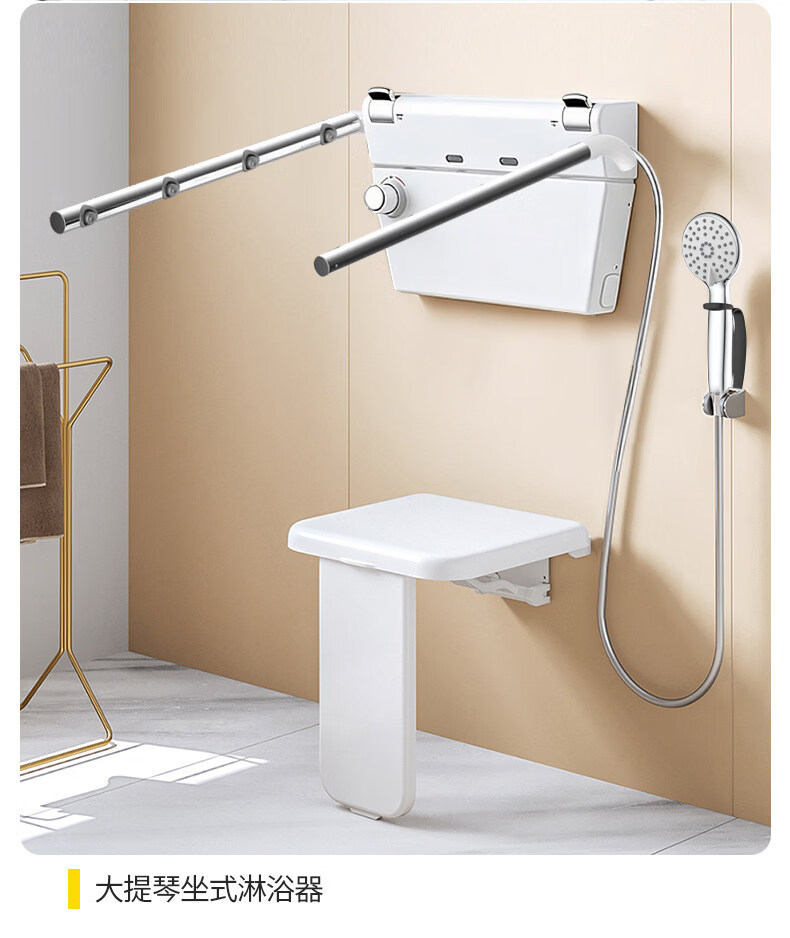 家文化(JIAWENHUA)老人坐式恒温淋浴器卫生间浴室淋浴椅多功能壁挂式淋浴凳花洒扶手 等腰梯形淋浴器月光白(分体双淋浴臂+手持)
