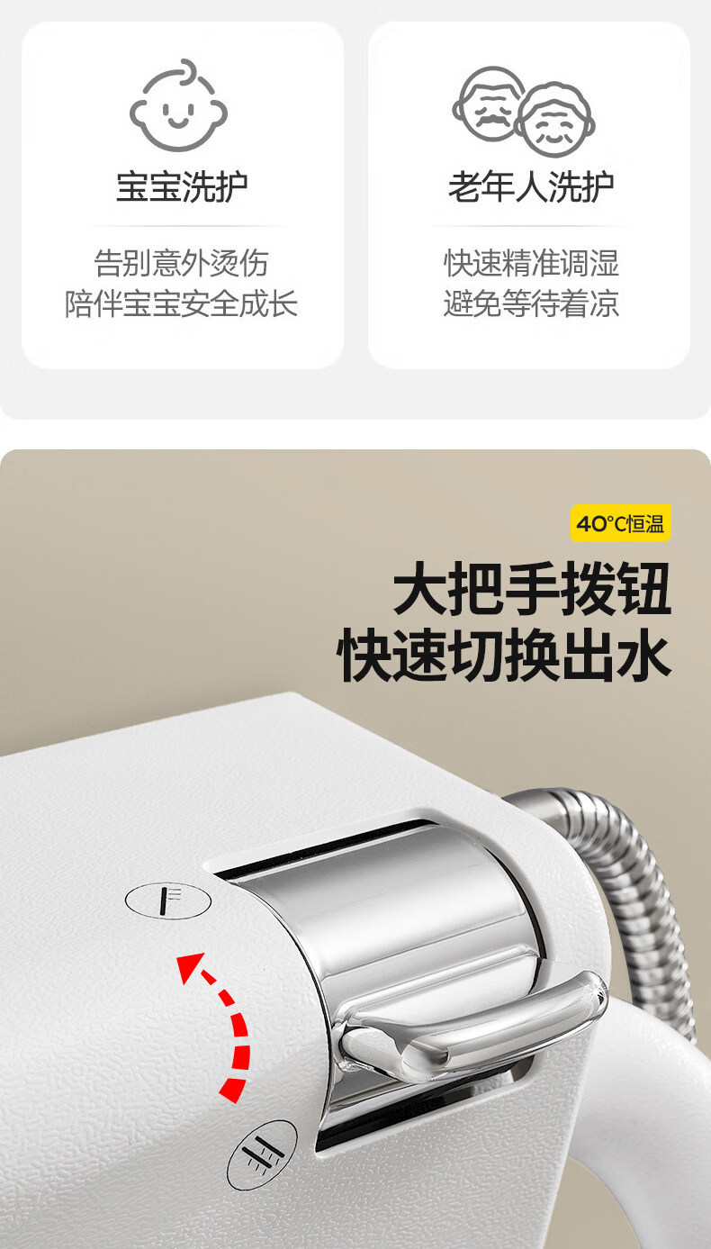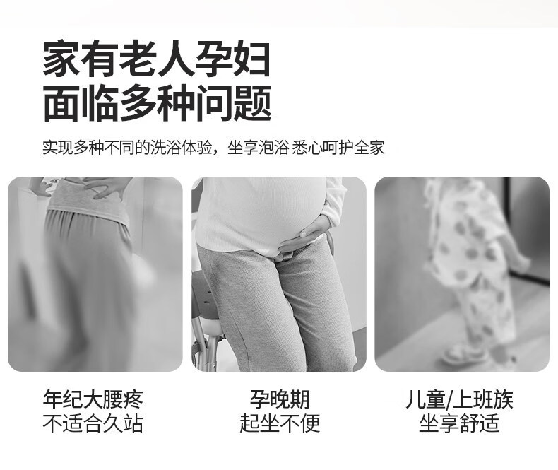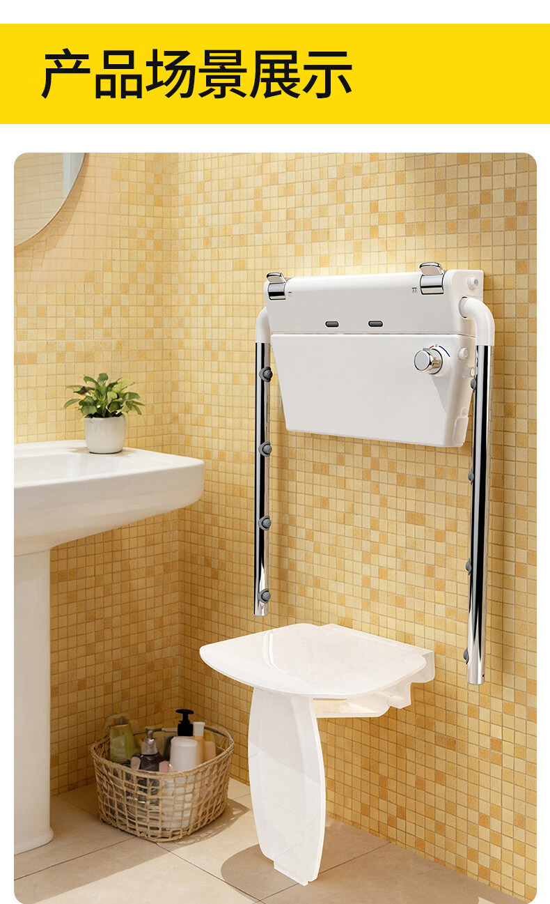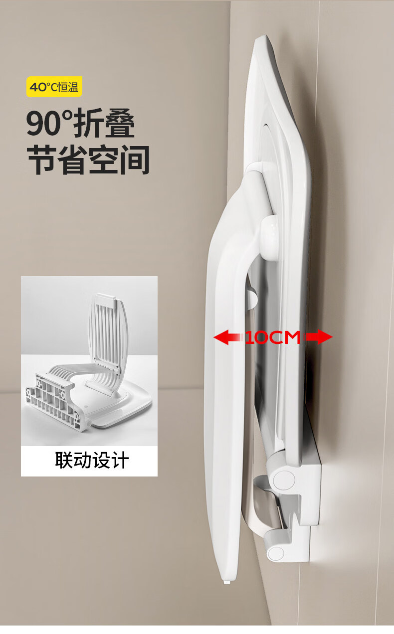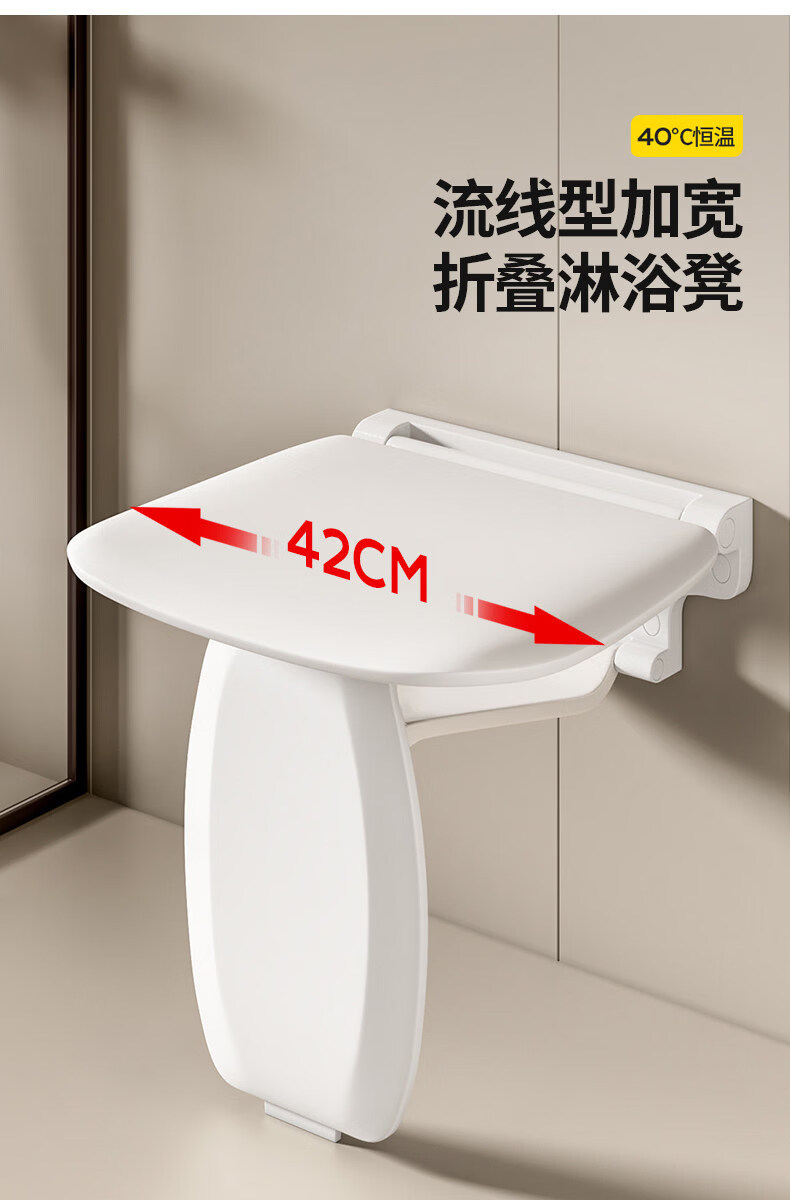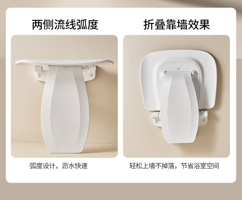 家文化(JIAWENHUA)老人坐式恒温淋浴器卫生间浴室淋浴椅多功能壁挂式淋浴凳花洒扶手 等腰梯形淋浴器月光白(分体双淋浴臂+手持)