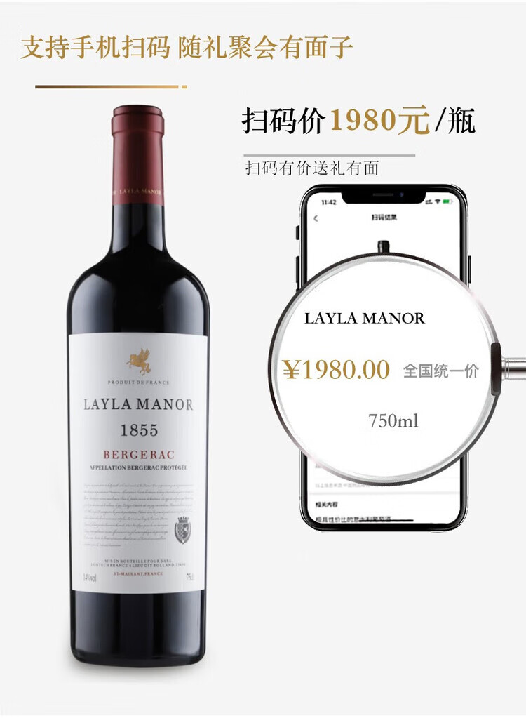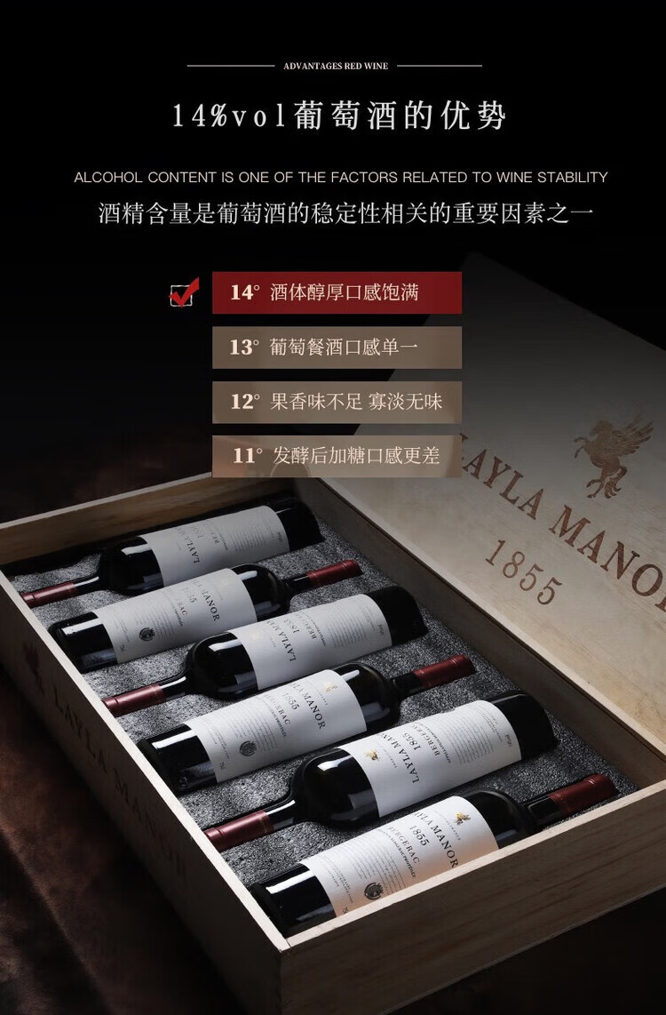 LAYLA【法国蕾拉】进口红酒14度AOP级老藤干红葡萄酒750mlX6支礼盒装