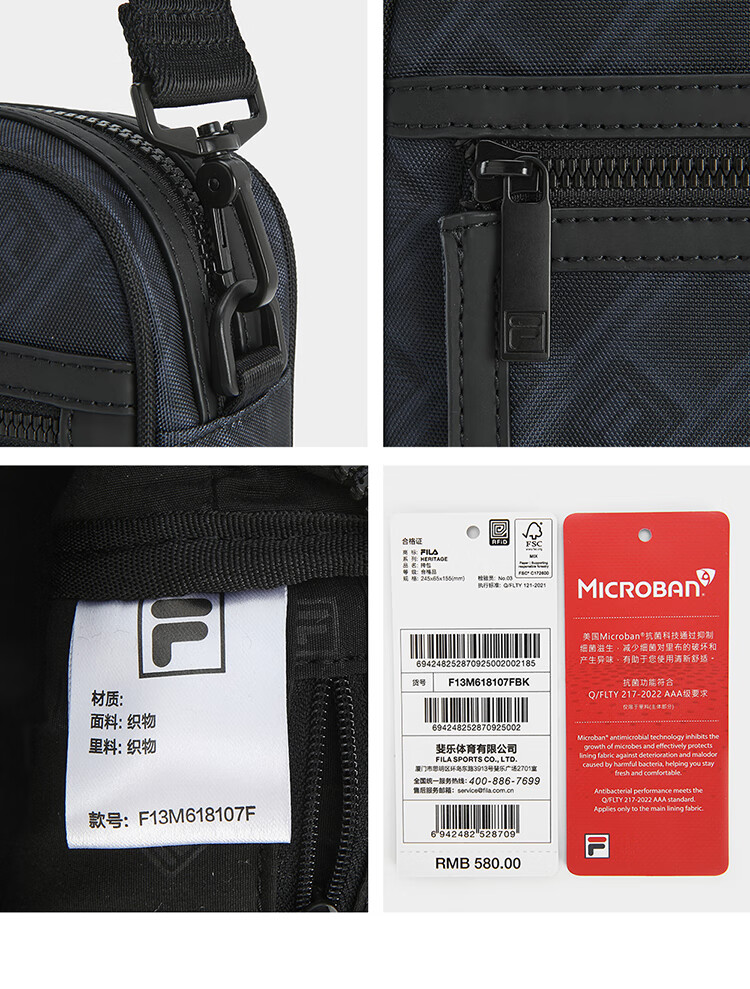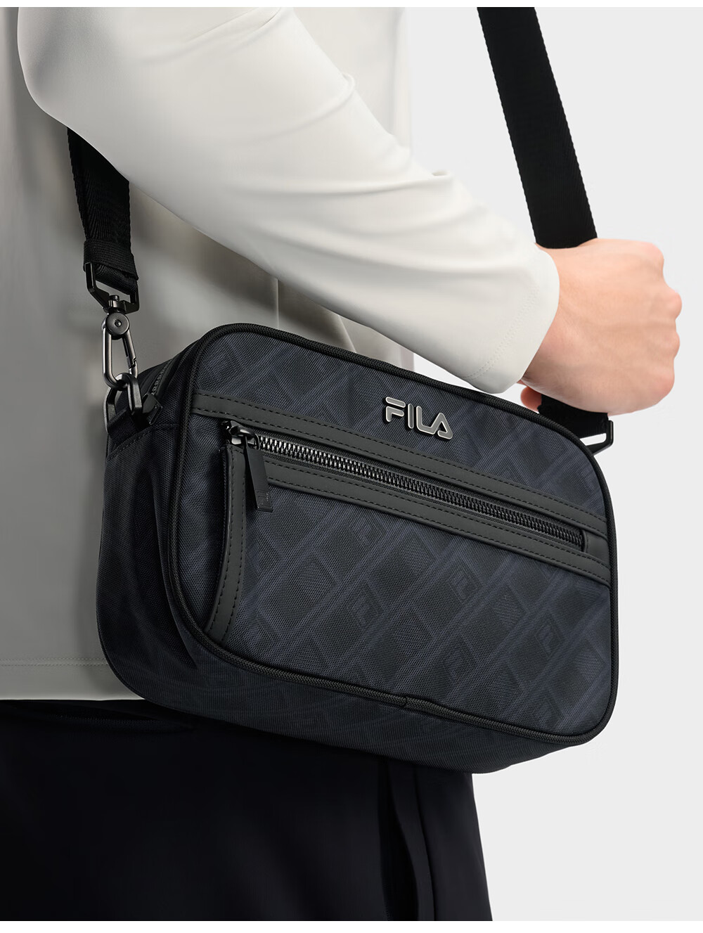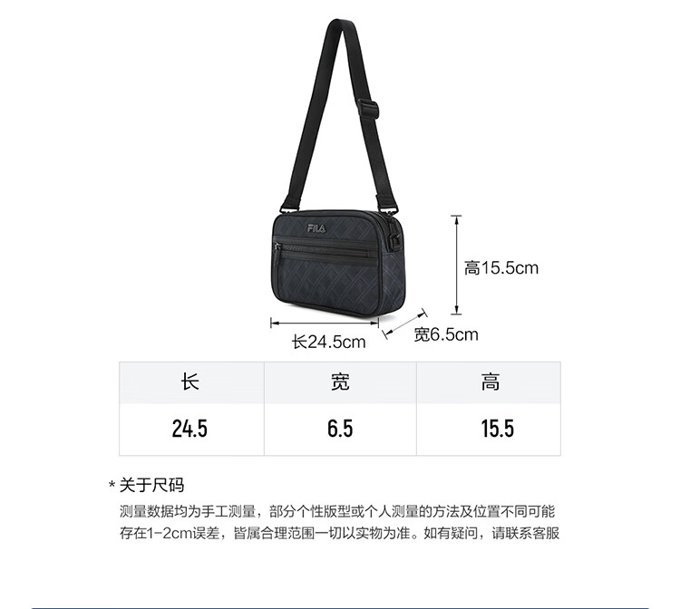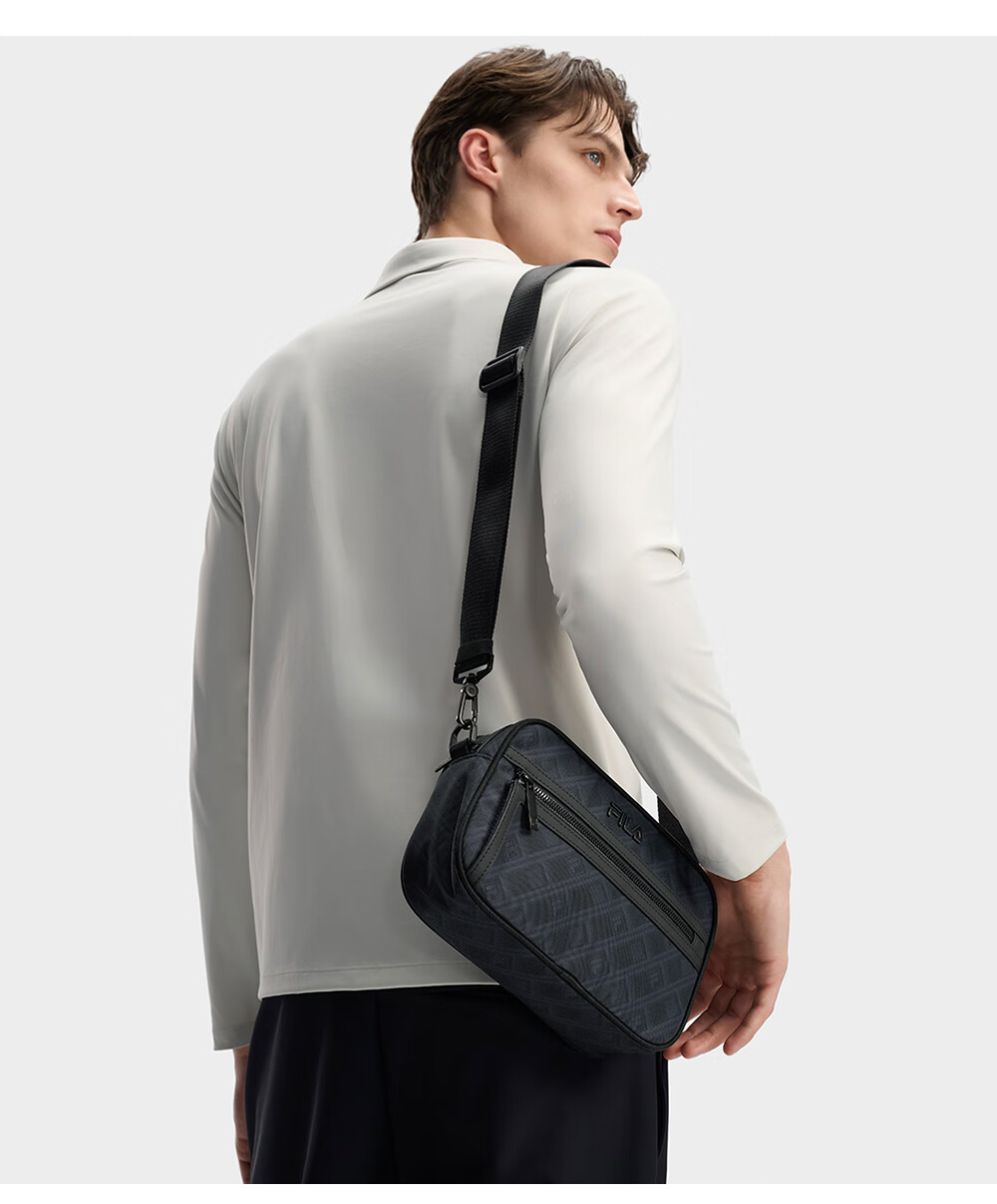 FILA 斐乐官方男包挎包2026春季新款时尚休闲单肩包斜挎包随身包 正黑色-BK XS