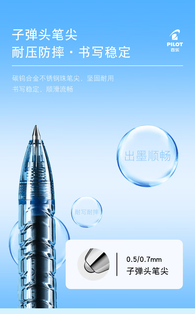 百乐(PILOT)P500 CP黑色中性笔签字笔0.5mm学生专用文具水性笔黑笔考试专用笔刷题笔直液式走珠笔高颜值 1支