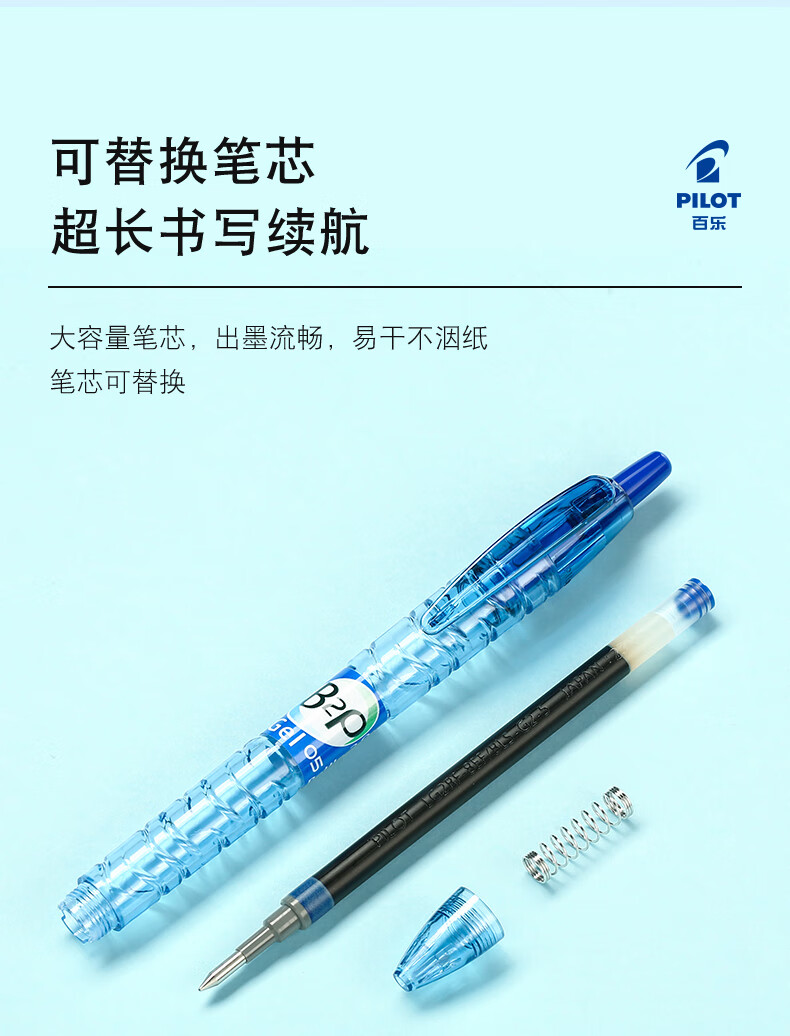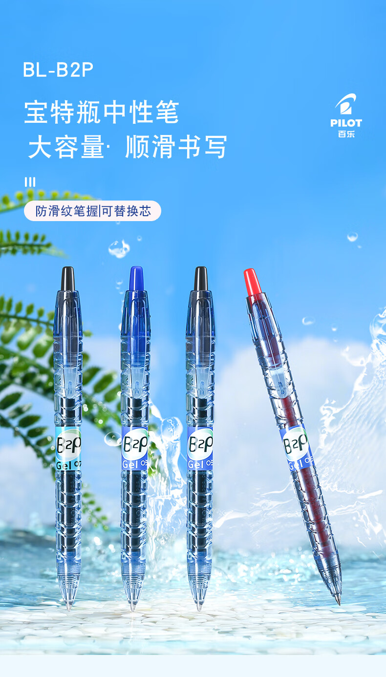 百乐(PILOT)按动黑色中性笔高颜值0.5签字笔黑笔水笔学生考试刷题水性笔B2P宝特瓶制大容量文具套装 5支