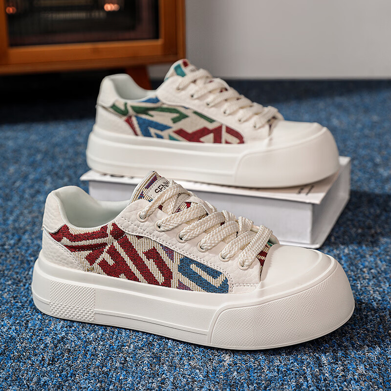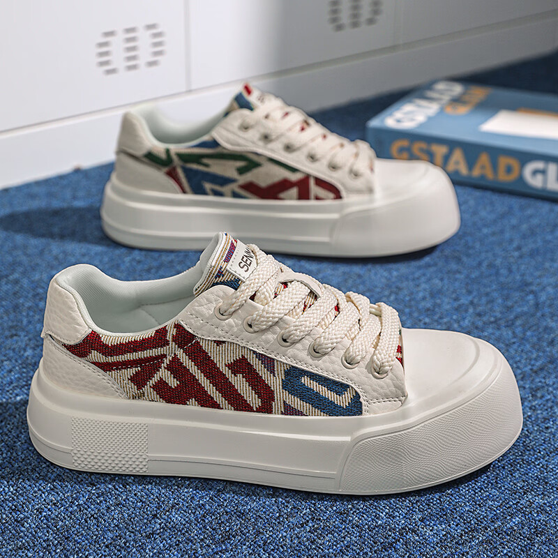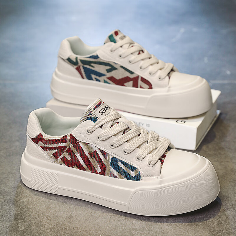 森馬男鞋2026年新款春季百搭休闲低帮板鞋青少年厚底防滑运动小白潮鞋 米色【基础款】 39 标准码数/现货秒发