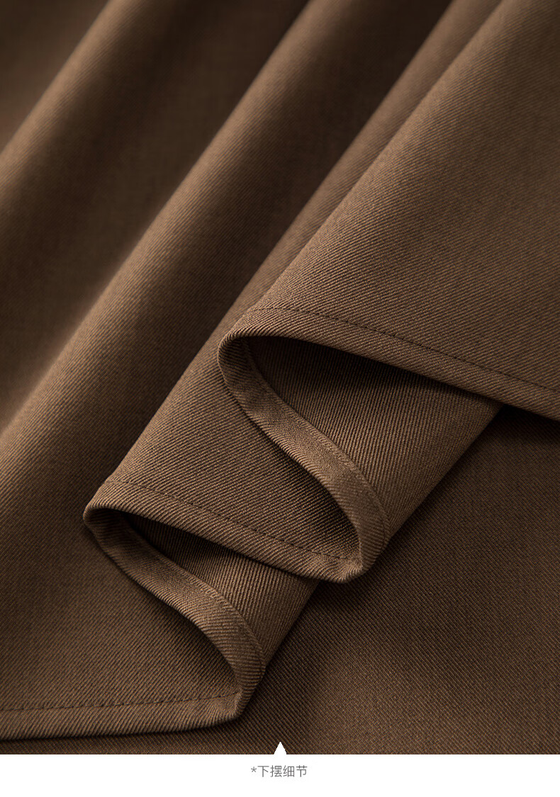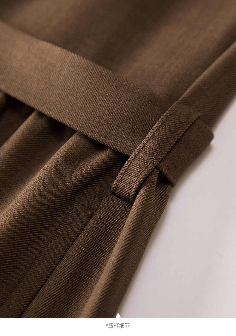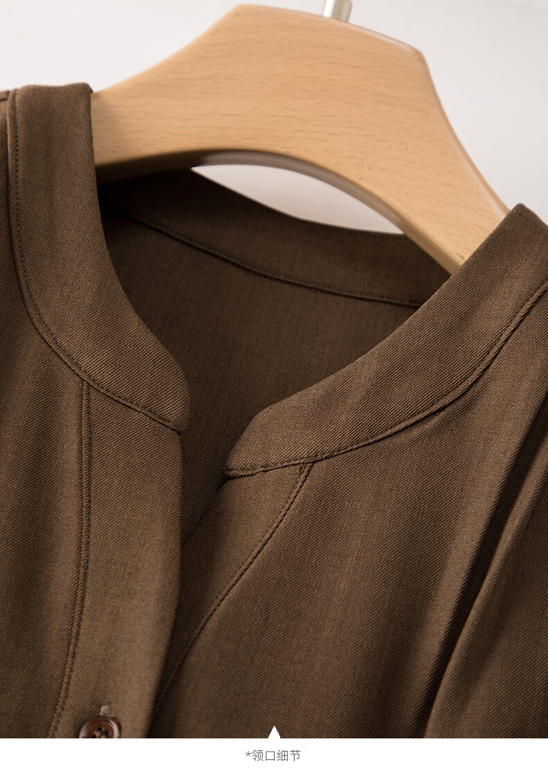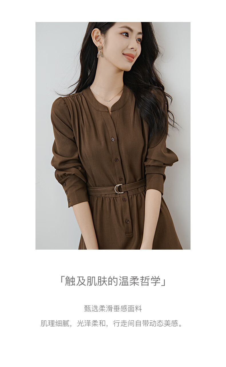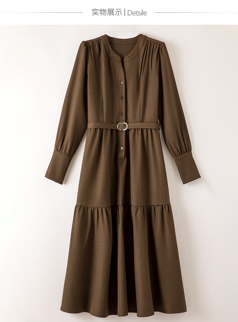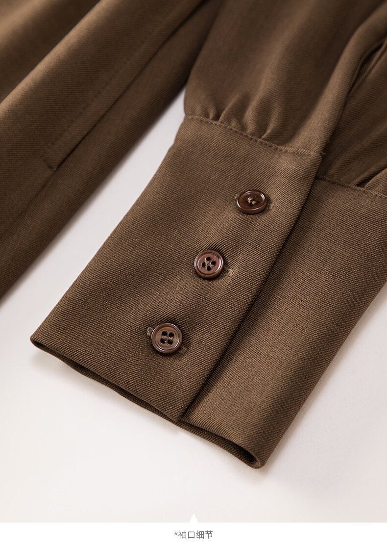 晚白2026春款气质显白摩卡棕小V领裙子系带收腰空气褶裙摆衬衫连衣裙 棕色 XL