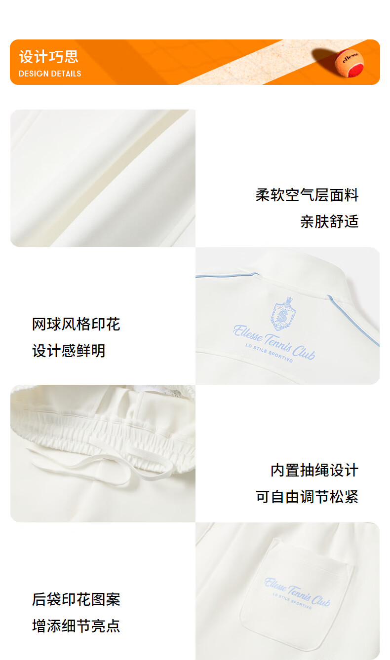 ellesse小贝壳26春新品网球运动套装空气层复古印花卫衣卫裤女 蓝色-卫衣 S