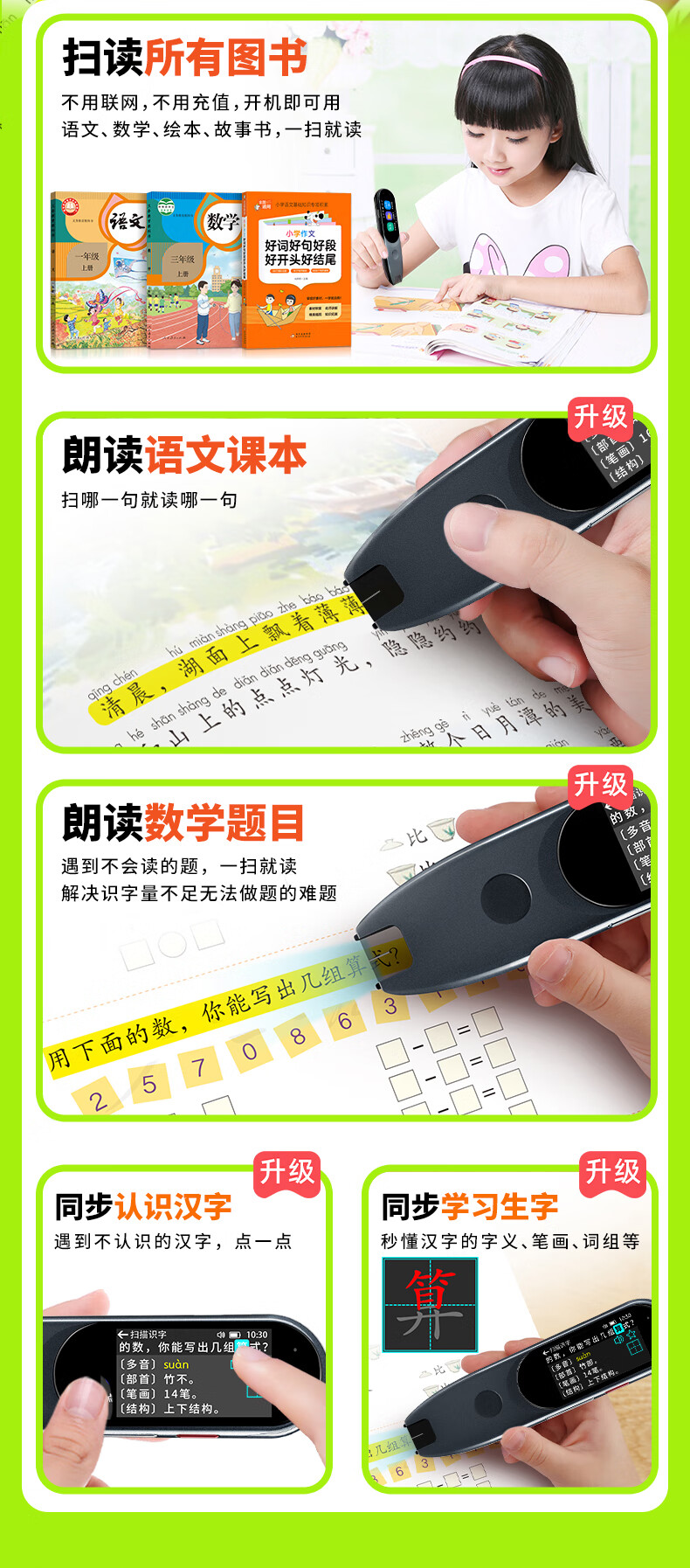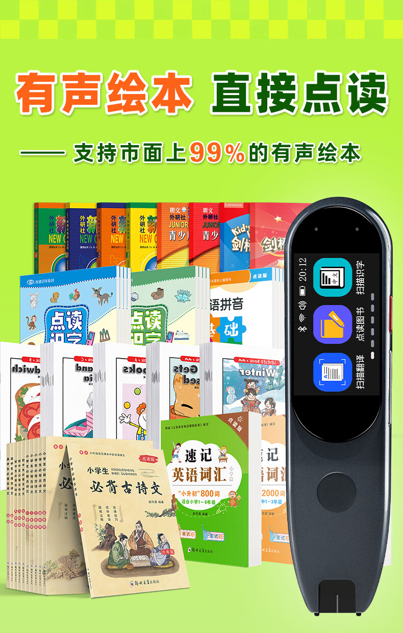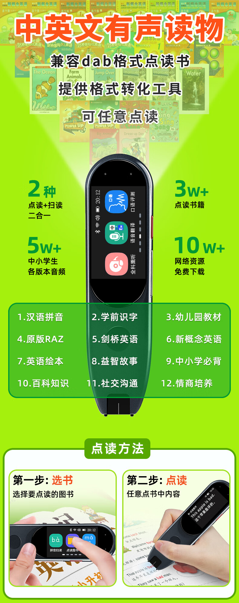 第二课堂英语绘本点读笔汉语拼音扫读笔幼小衔接一年级识字阅读学习神器幼儿启蒙早教学习机男女孩生日礼物 绘本点读笔+2本拼音+2本识字+9本英语启蒙绘本