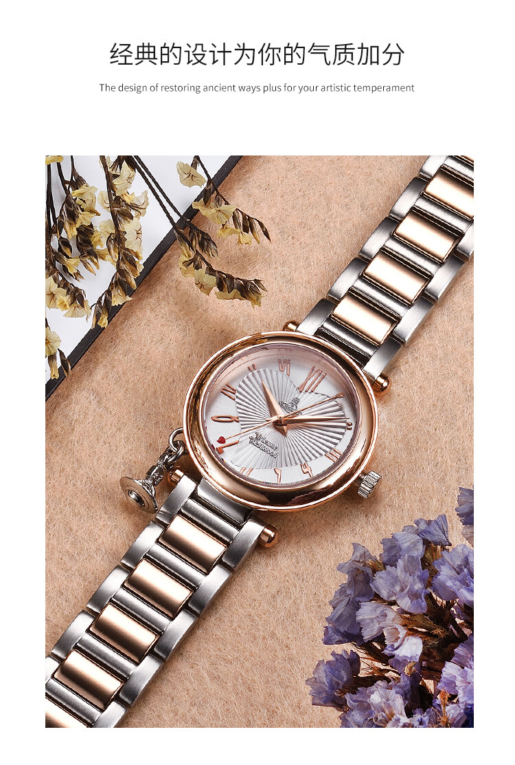 爱沃驰轻奢时尚防水玫瑰金锆石镶嵌石英手表女士表七夕生日礼物送女友 玫金壳白面|间玫钢带