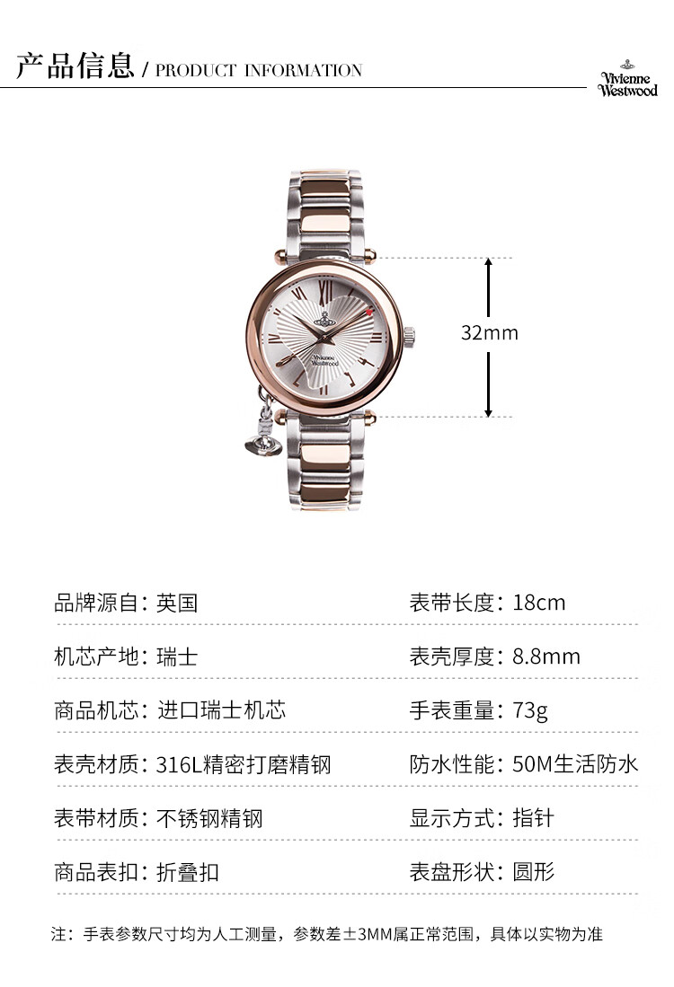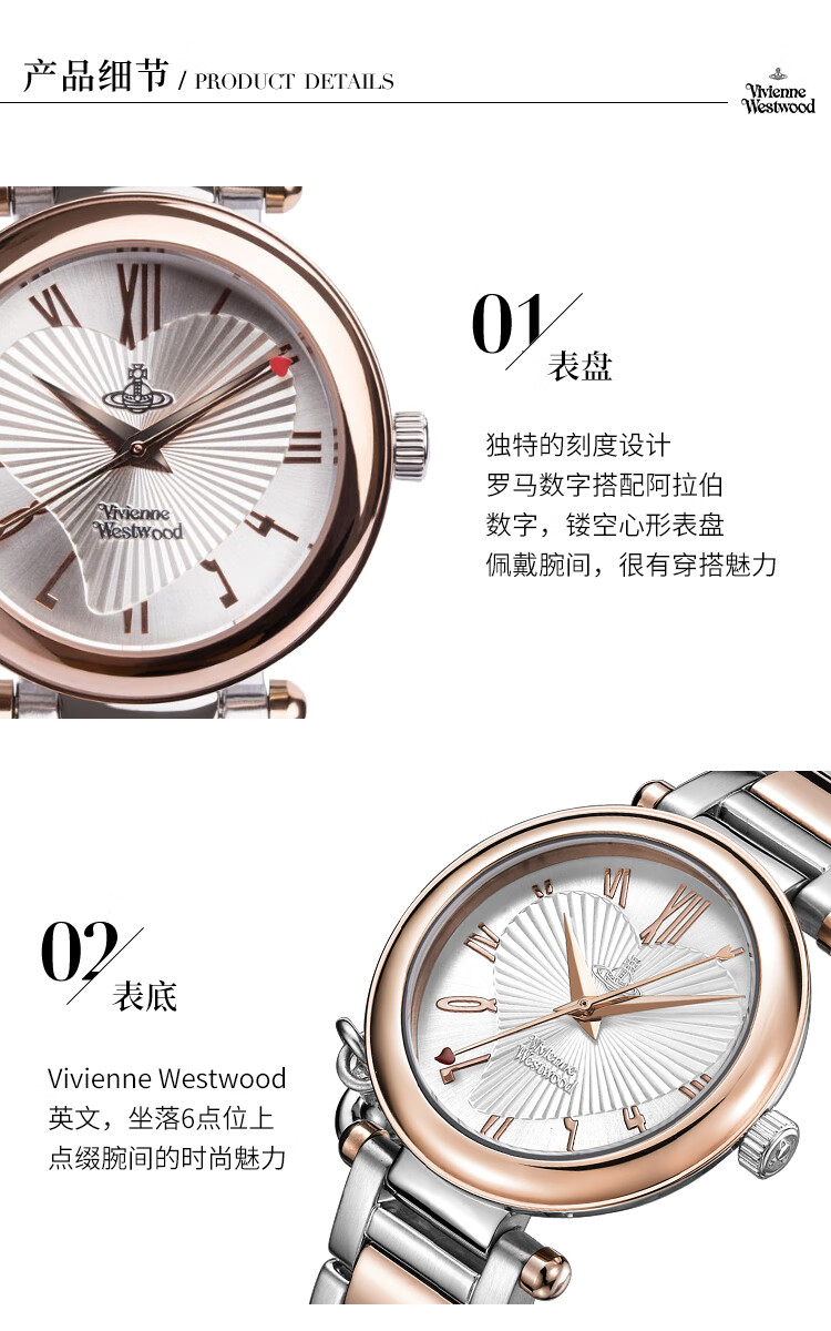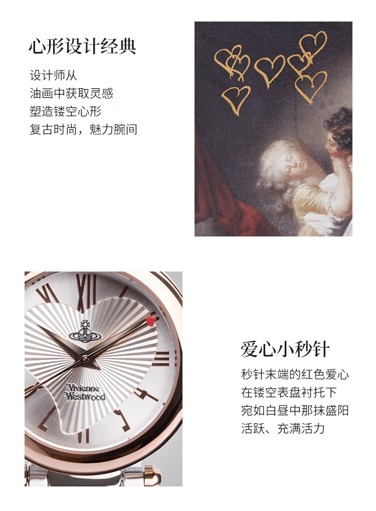 Vivienne Westwood西太后手表女士爱心欧美石英表送女生日送女友圣诞礼物新年跨年 玫瑰金爱心钢带 VV006RSSL 32mm