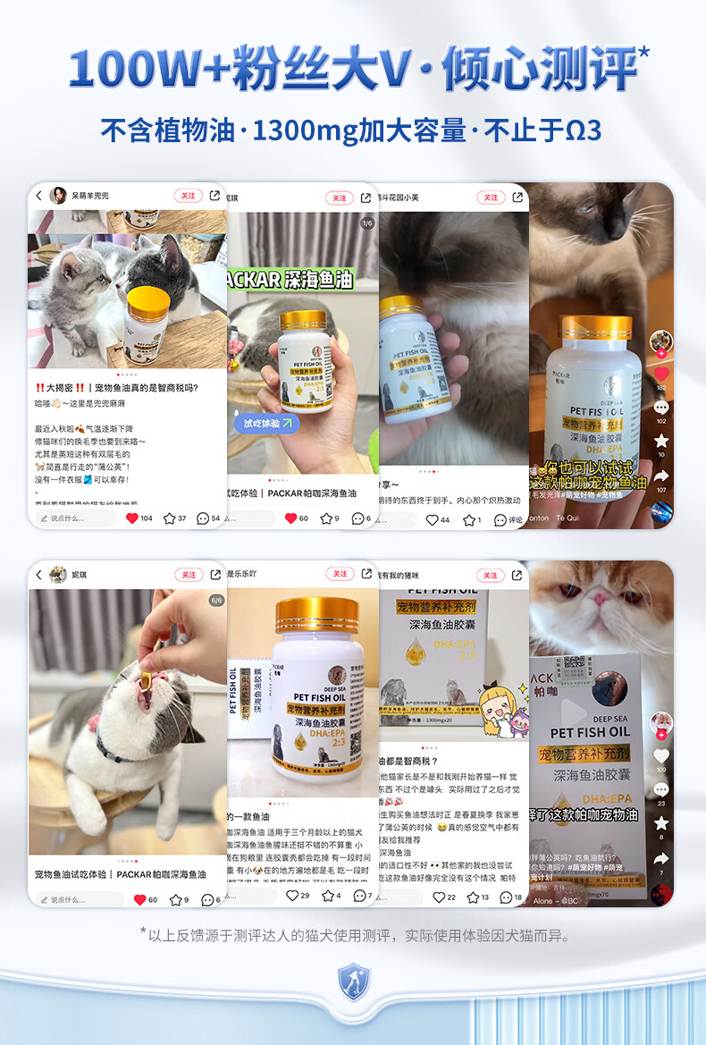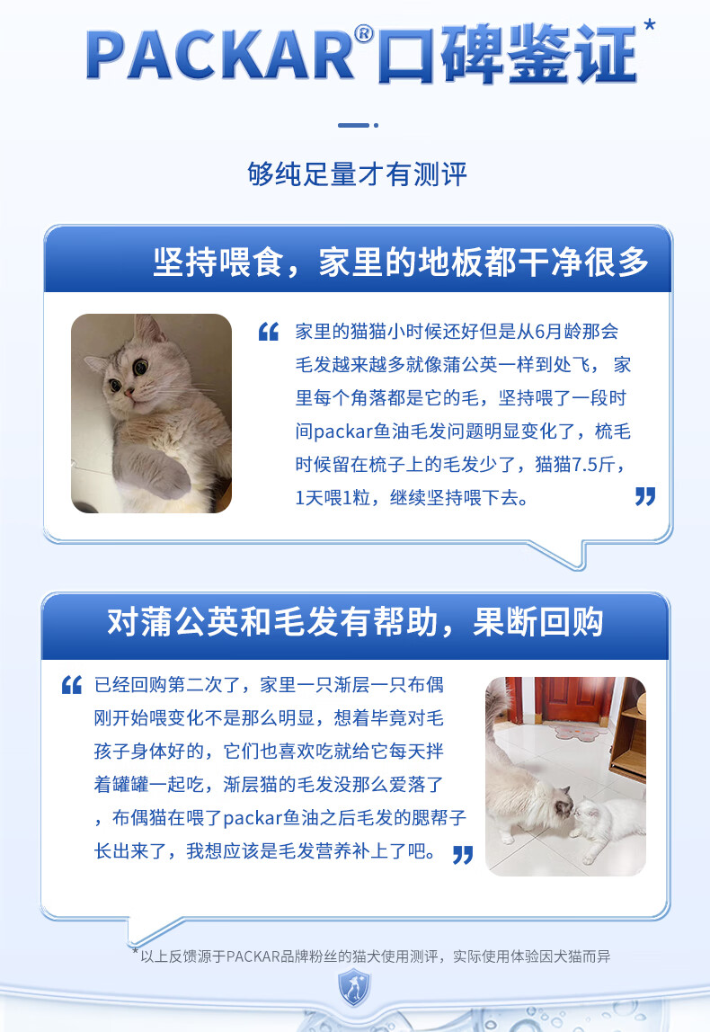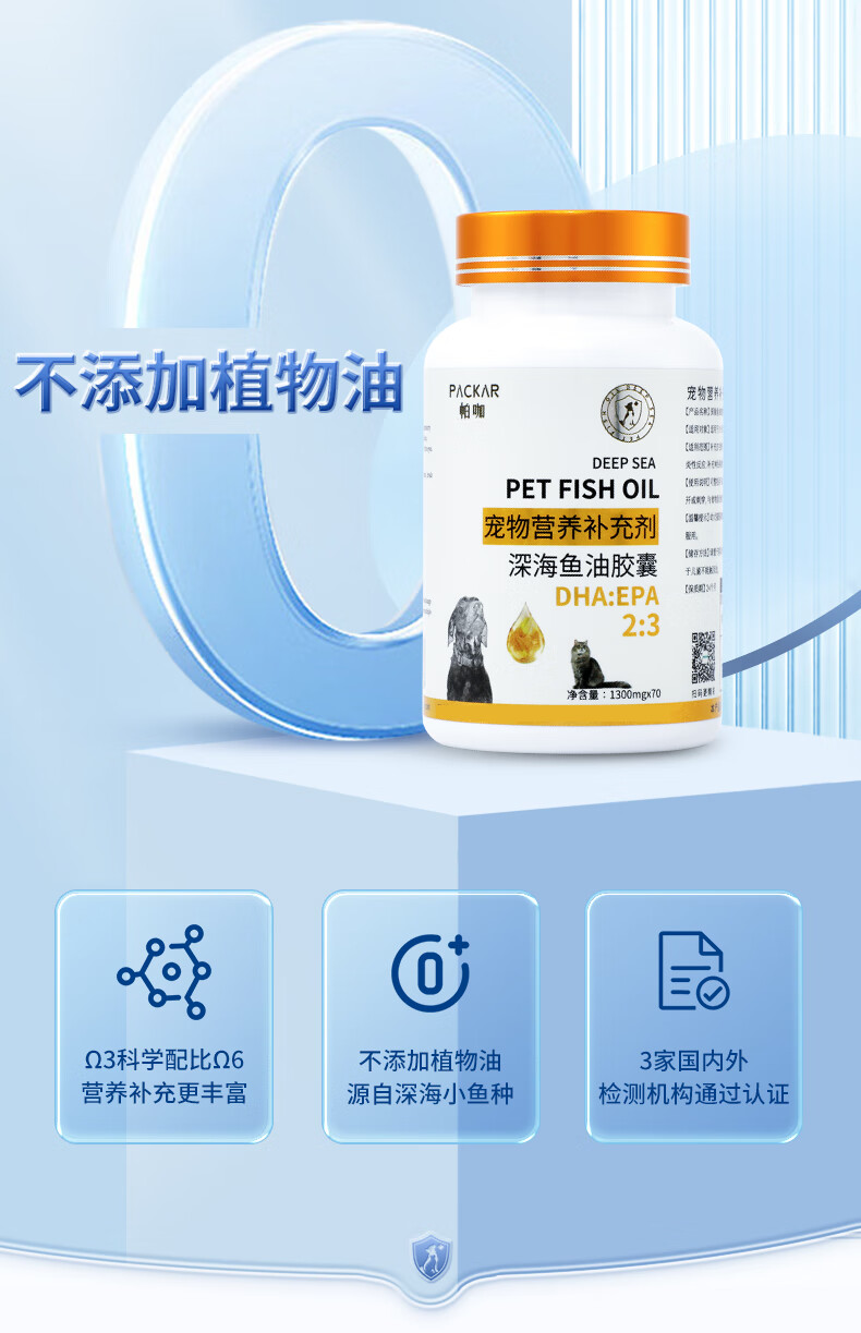 PACKAR猫咪鱼油狗狗猫用深海鱼油胶囊宠物用布偶鱼肝美短金毛帕咖营养幼 80粒 【20粒*4 1300g容量】