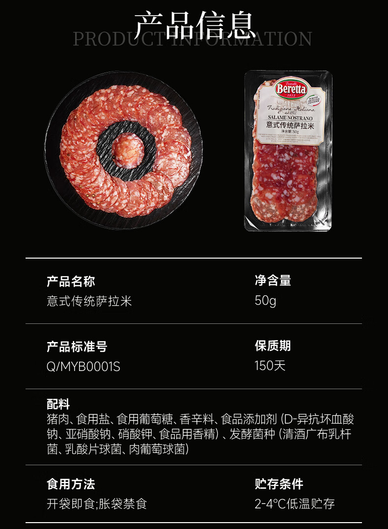 FRATELLI BERETTA 意式传统萨拉米香肠 意大利风味 风干腊肠切片沙拉配料 开袋即食 意式传统萨拉米50g