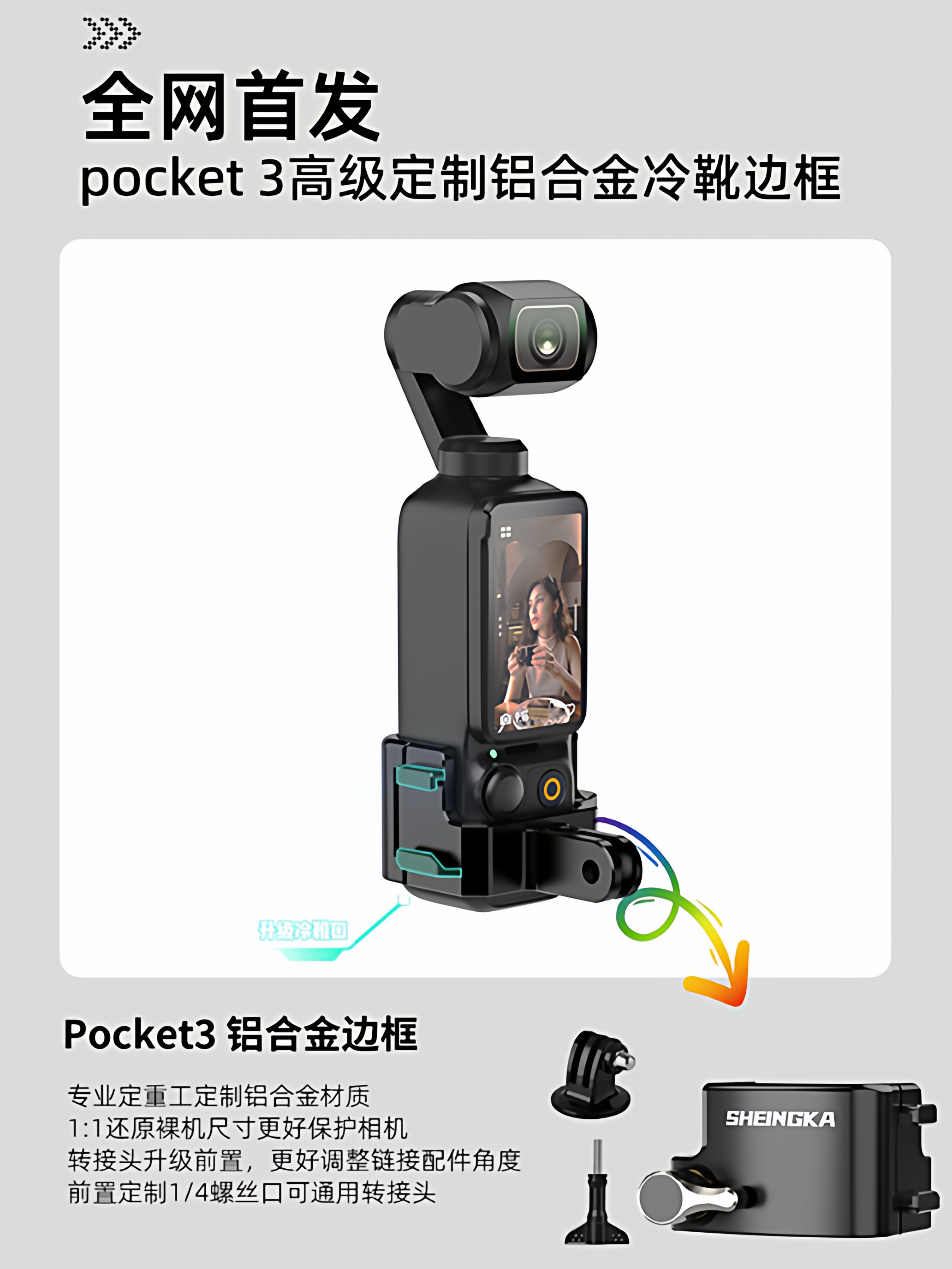 sheingka 【可接所有配件】大疆Pocket3 拓展转接件铝合金边框扩展框 带冷靴口拓展配件 【可接所有配件】Pocket3铝合金边框