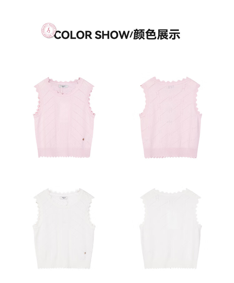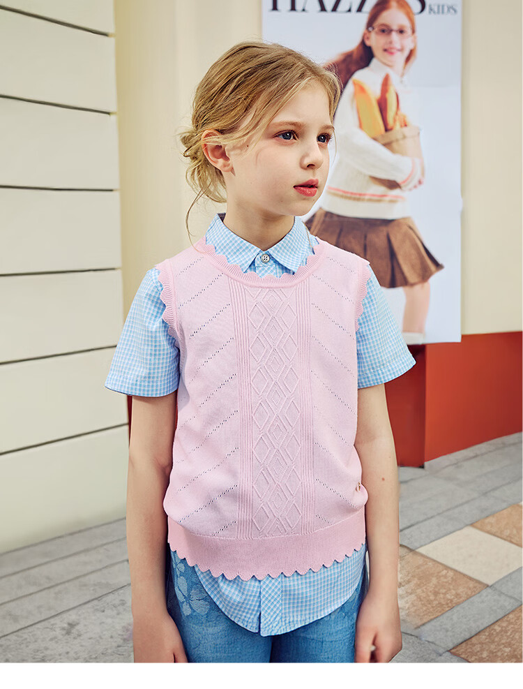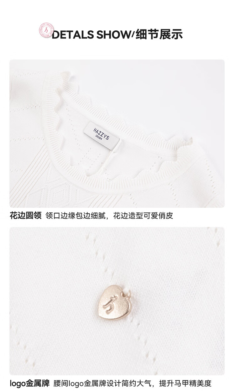 哈吉斯(HAZZYS)童装女童马甲2026夏新学院系列线织背心 本白 165