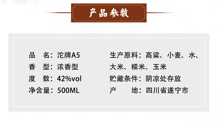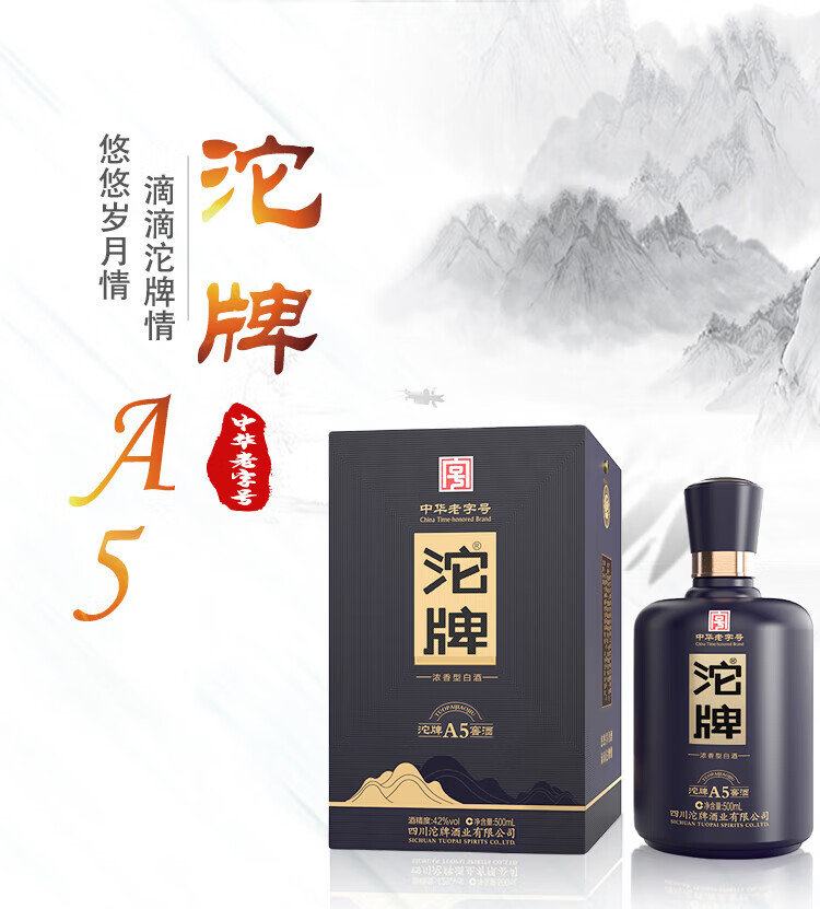 沱牌A5【正品保障】浓香型52度 纯粮口粮酒 礼赠商务宴请白酒 52度 500mL 6瓶 【整箱装】