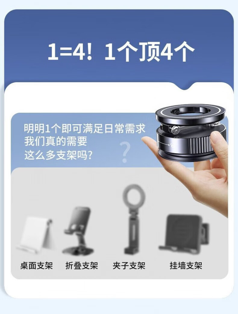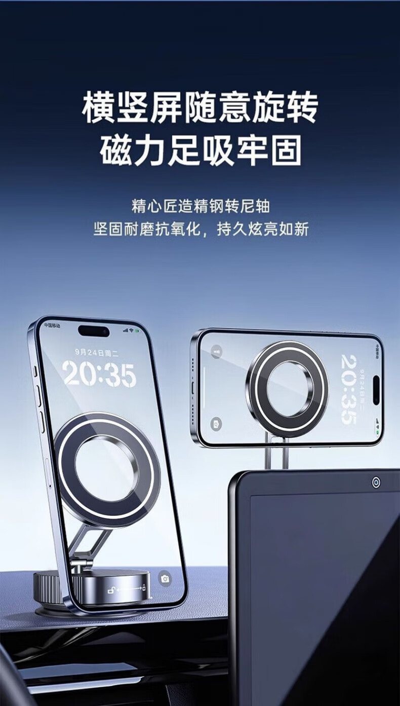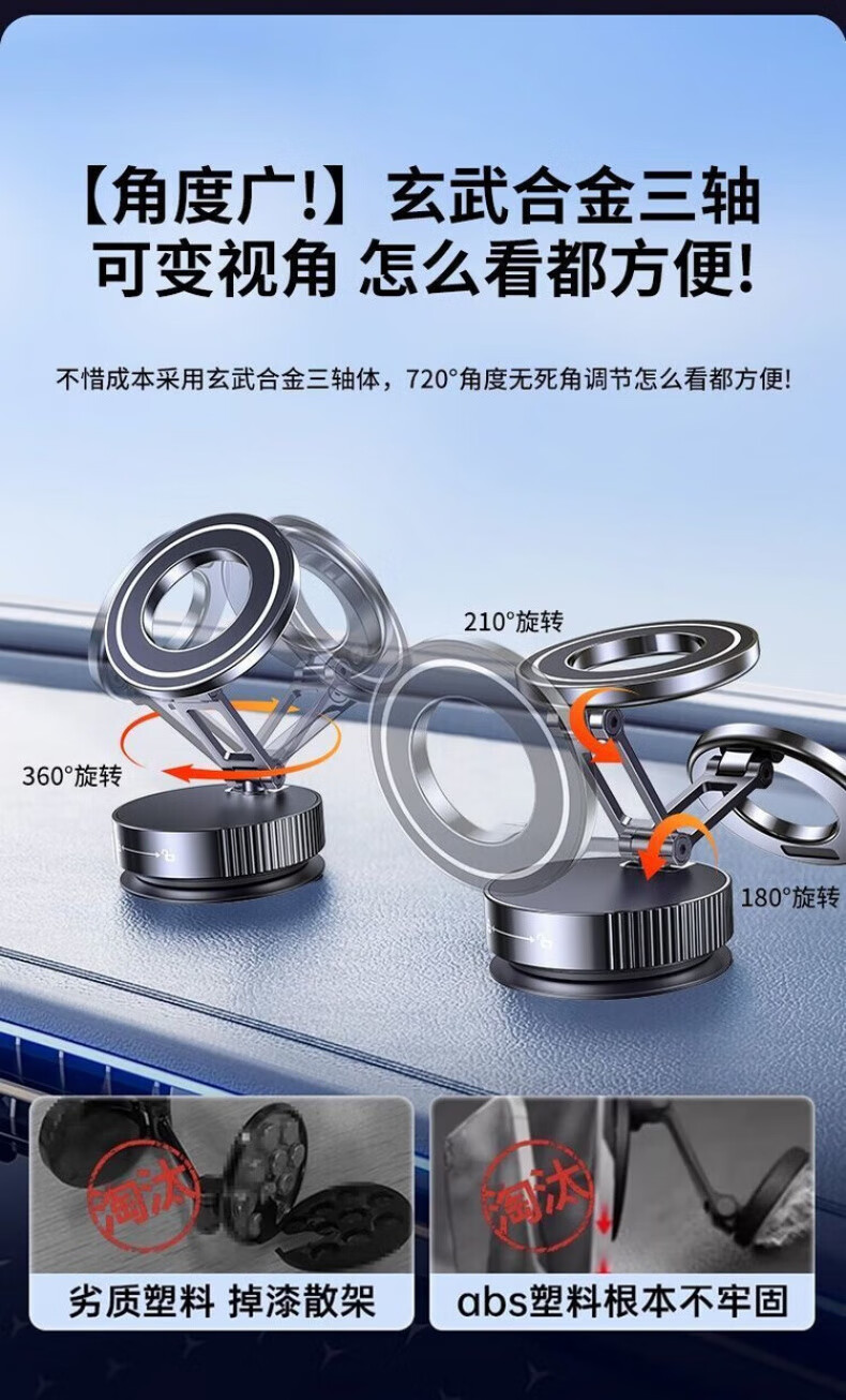 第三感全自动真空吸附金属磁吸旋转车载手机支架汽车桌面直播电动支架 全自动真空吸附金属磁吸旋转支架【玄锖黑】